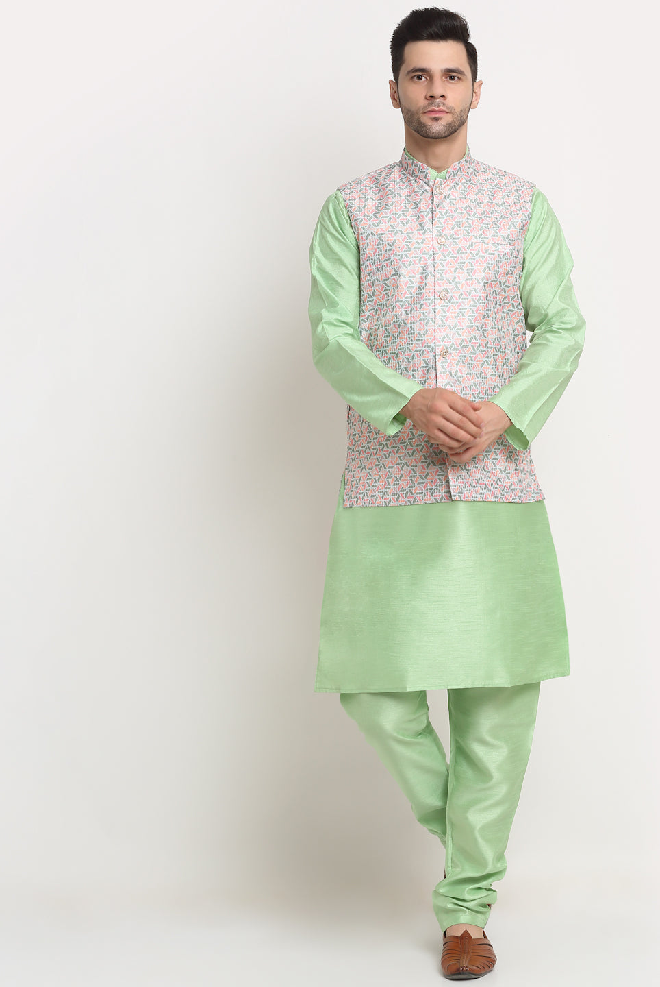 KRAFT INDIA Men Jacquard Knee Length Kurta With White Elastic Waistband Pyjama Set