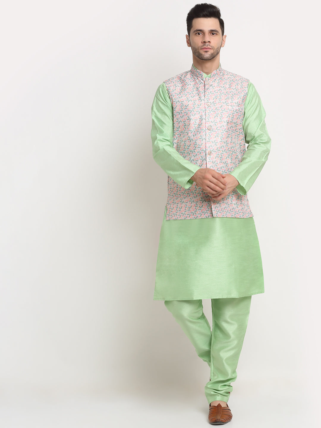 KRAFT INDIA Men Jacquard Knee Length Kurta With White Elastic Waistband Pyjama Set