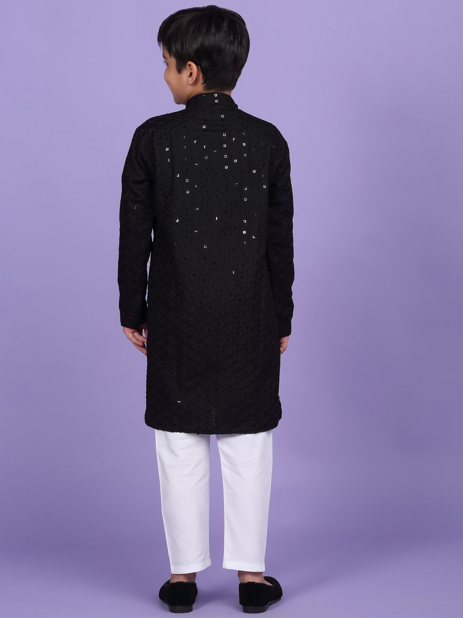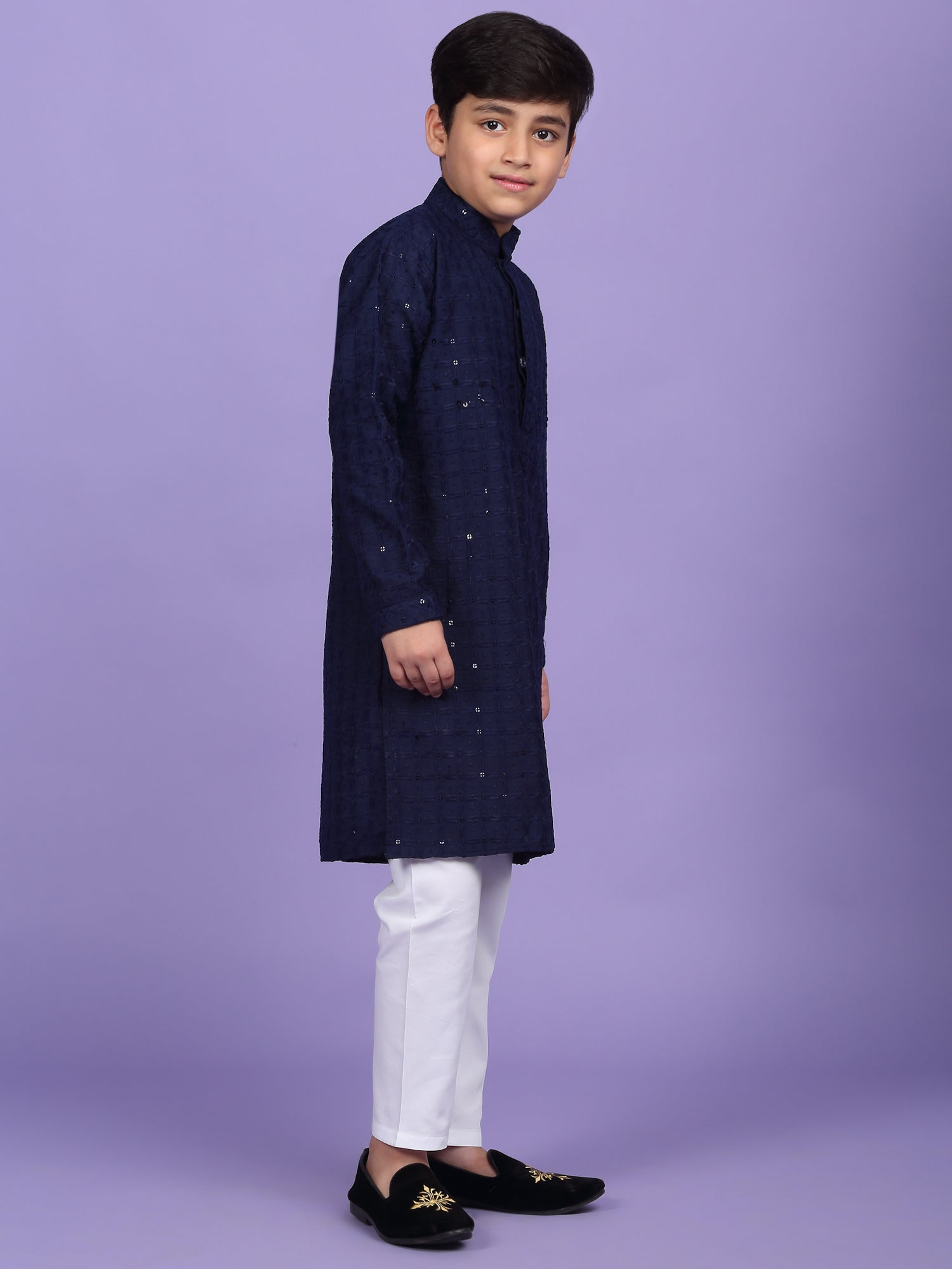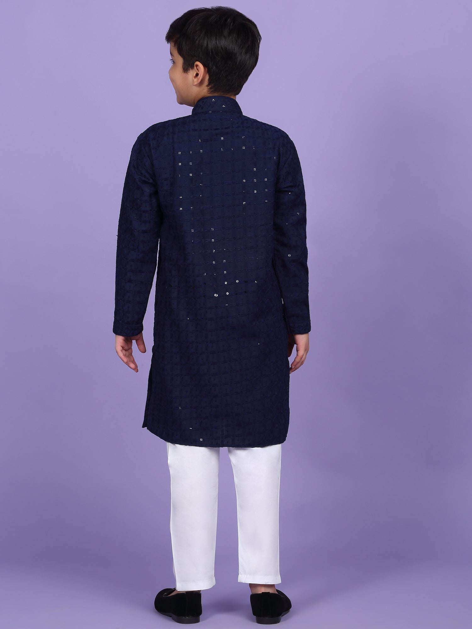 Cotton Blend Chikan Embroidered Sequinced Kurta