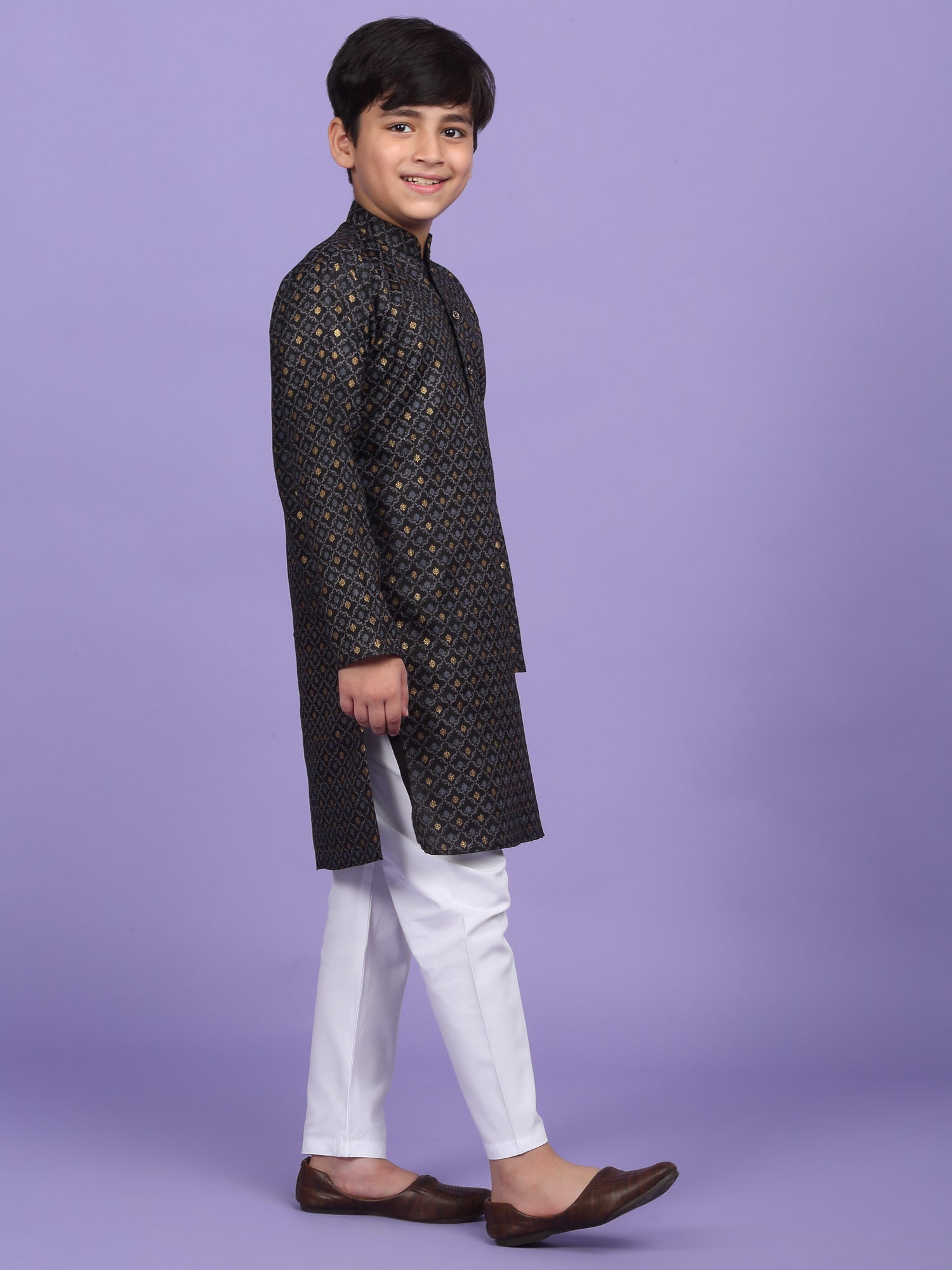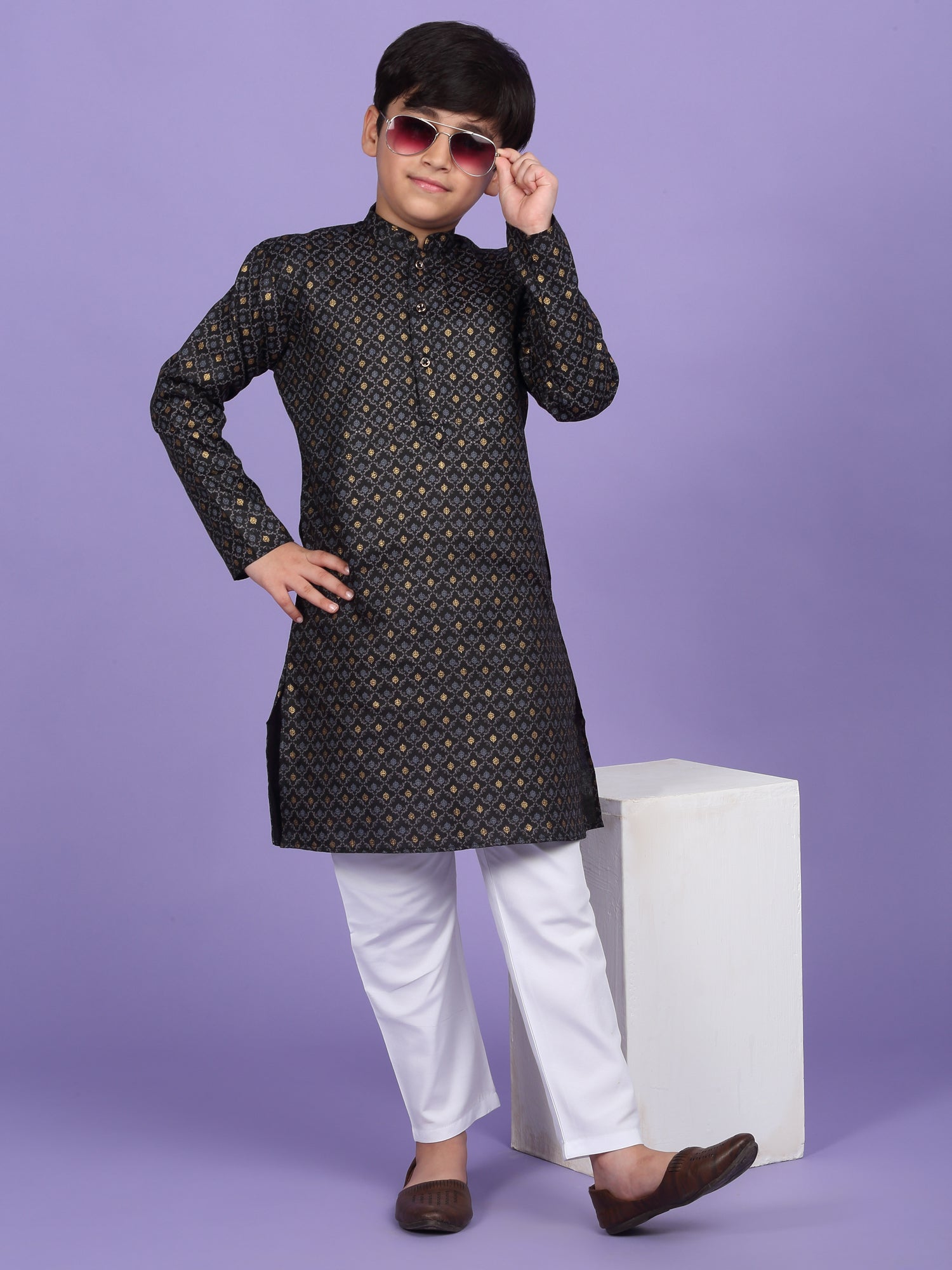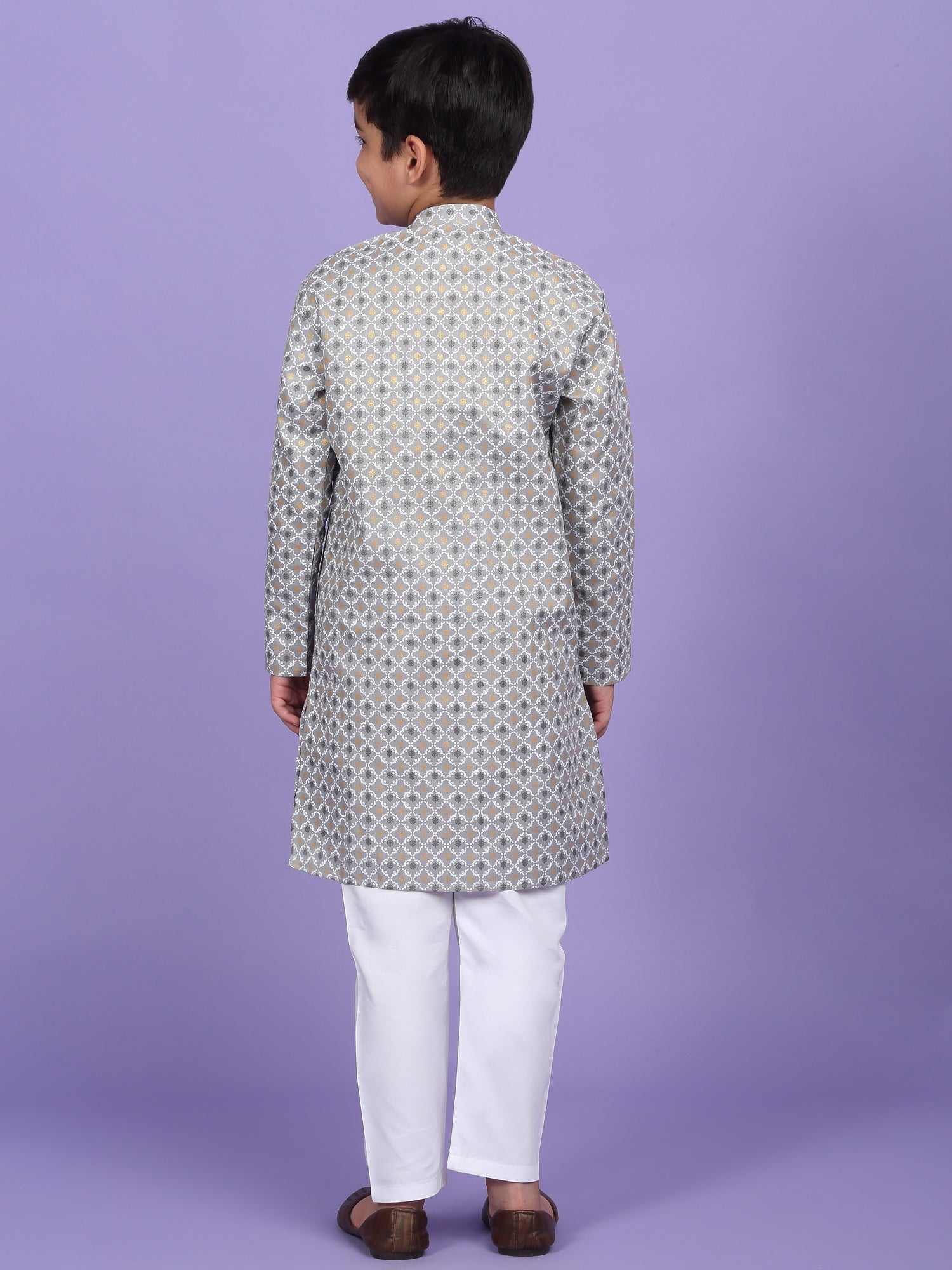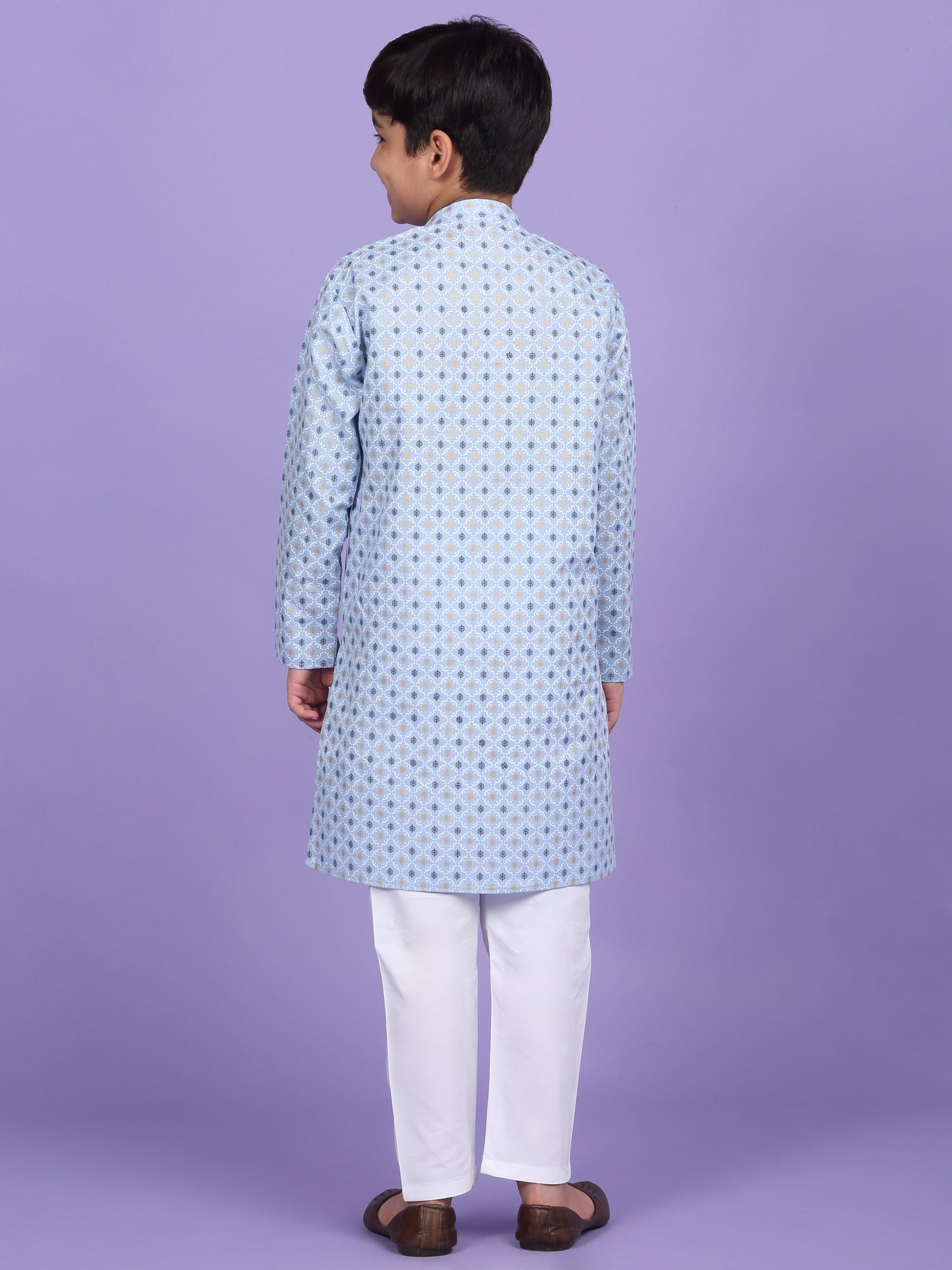 Bring vibrant charm to your child’s festive attire with this stylish Kids Cotton Blend Floral Printed Kurta. Made from soft and breathable cotton blend fabric, this kurta features a beautiful all-over floral print that adds a cheerful, ethnic vibe. Designed with a Mandarin collar, long sleeves, and a straight hem, it offers both comfort and cultural flair. Ideal for festivals, school functions, and family gatherings, this kurta can be paired with pyjamas, jeans, or trousers for a complete look.