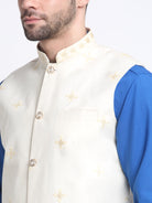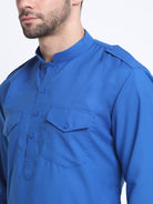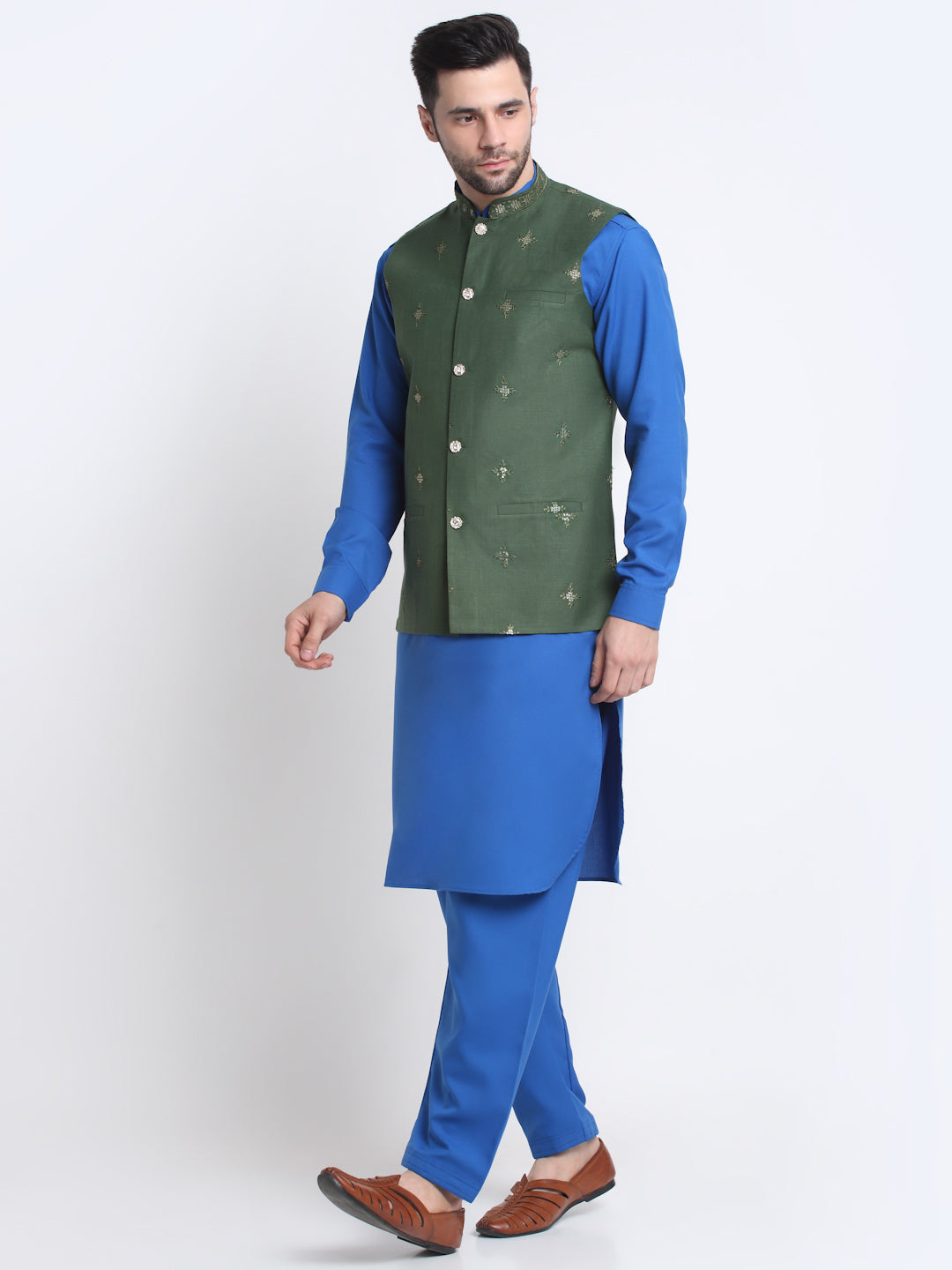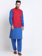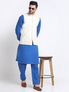 KRAFT INDIA Men Cotton Blue Pathani Kurta & Salwar With Embroided Sequenced Nehru Jacket