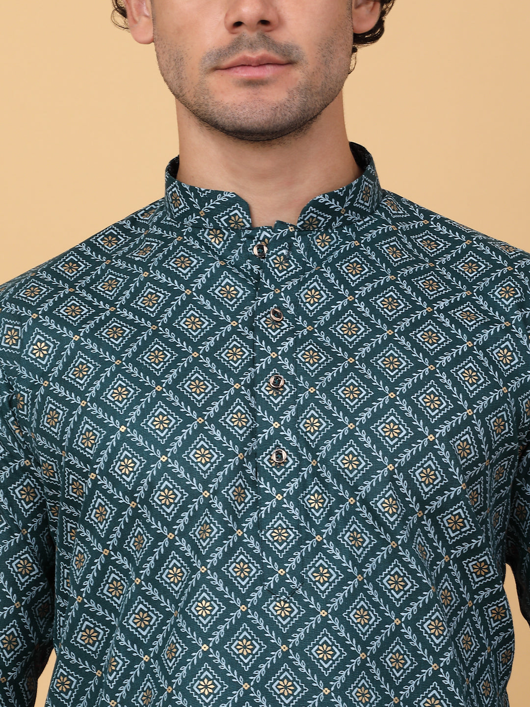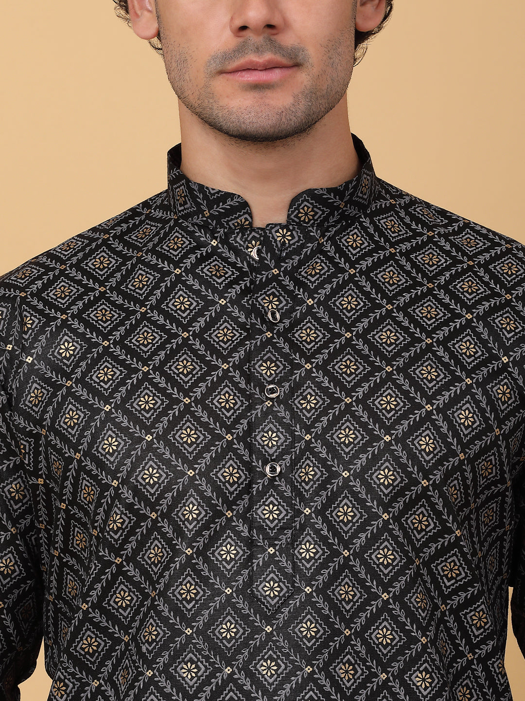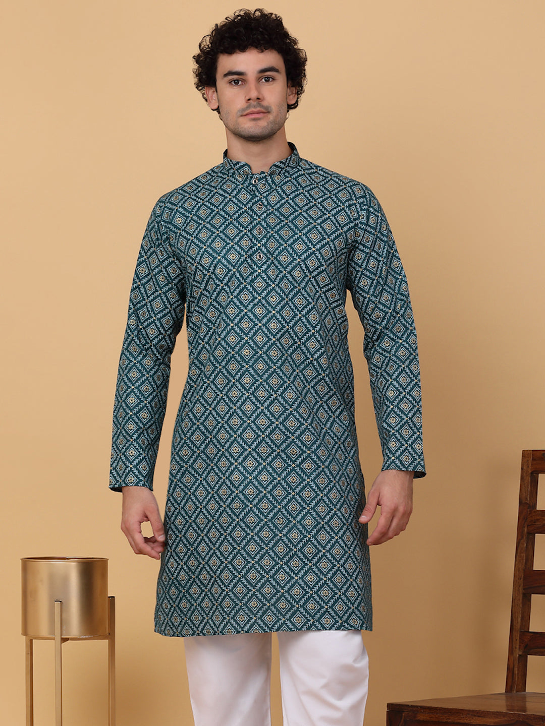 KRAFT INDIA Men Cotton Floral Gold Print Ethnic motif Knee Length Kurta Only