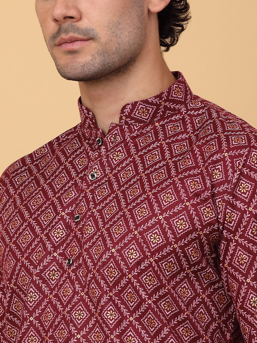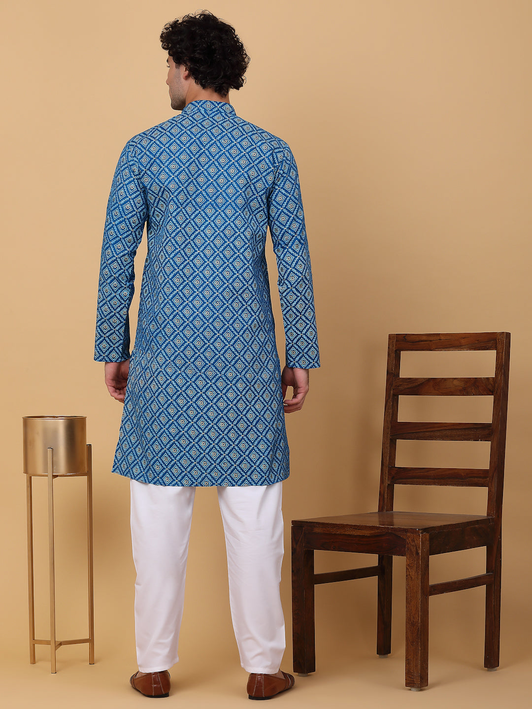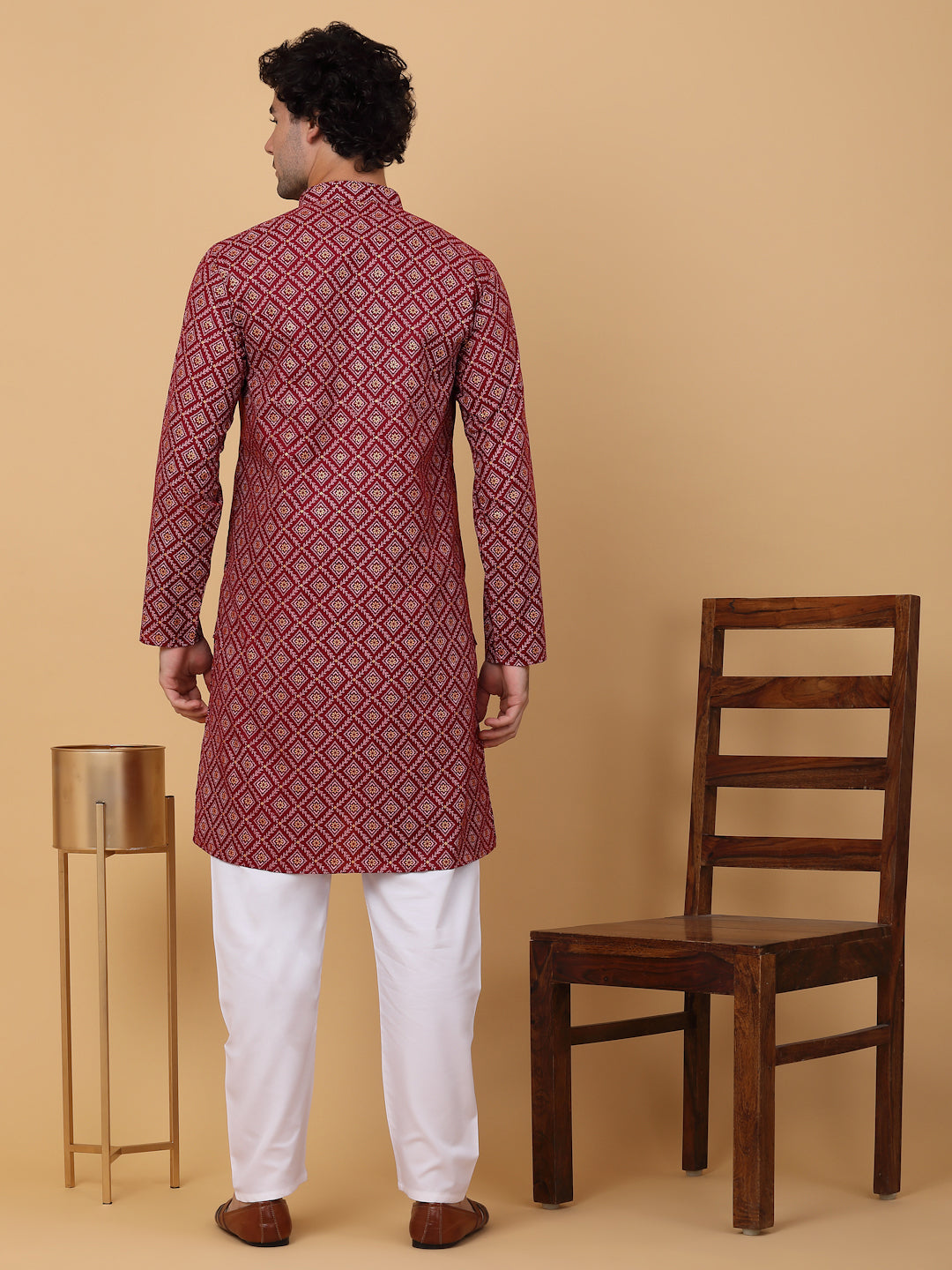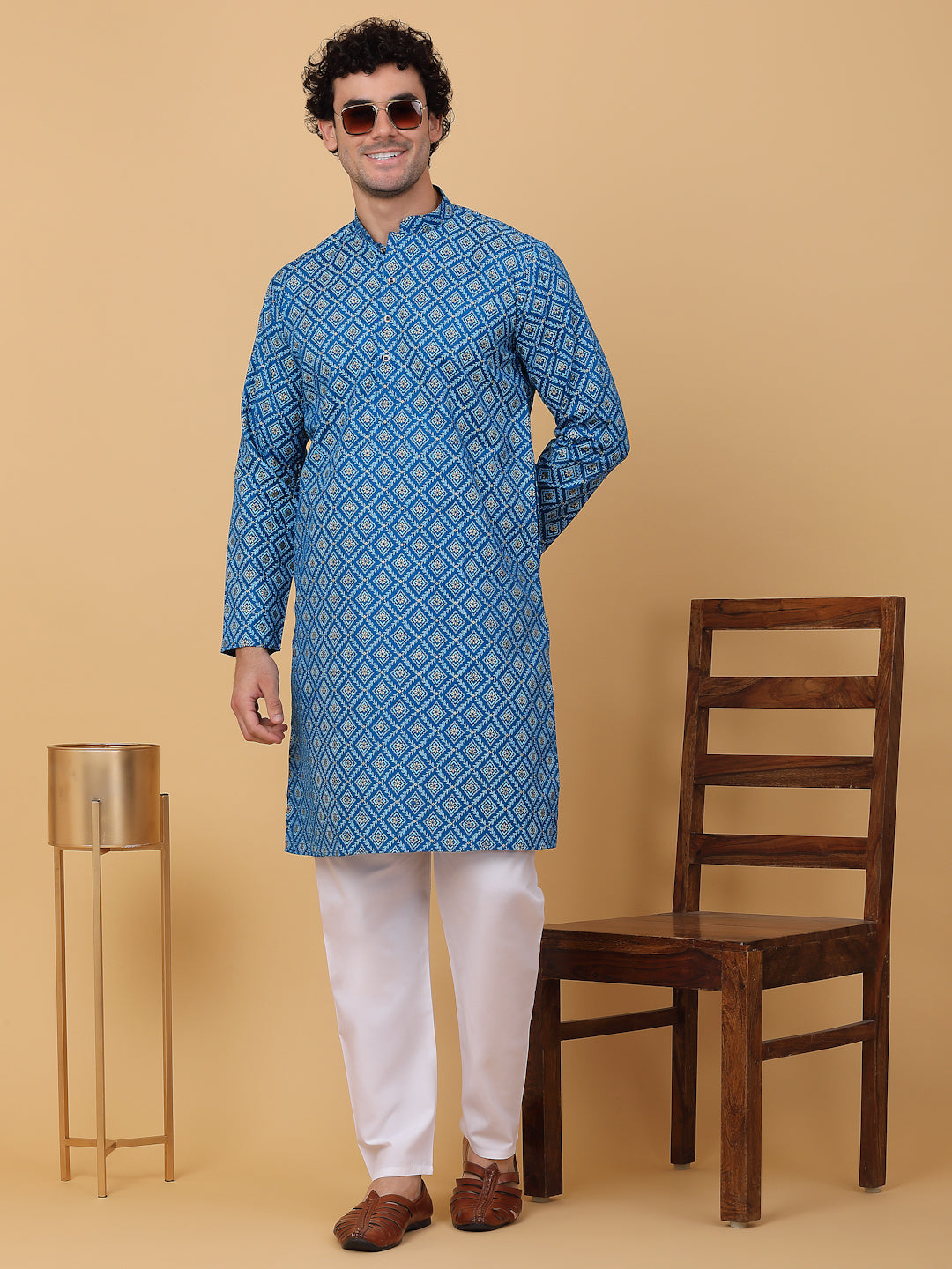 KRAFT INDIA Men Cotton Floral Gold Print Ethnic motif Knee Length Kurta Only