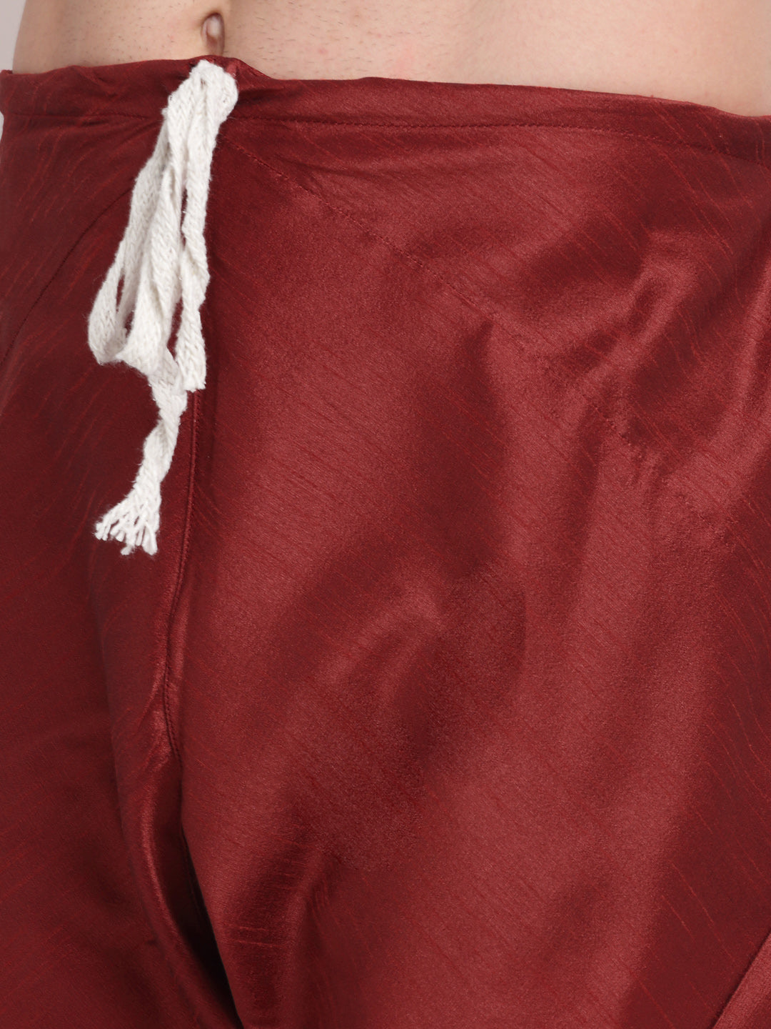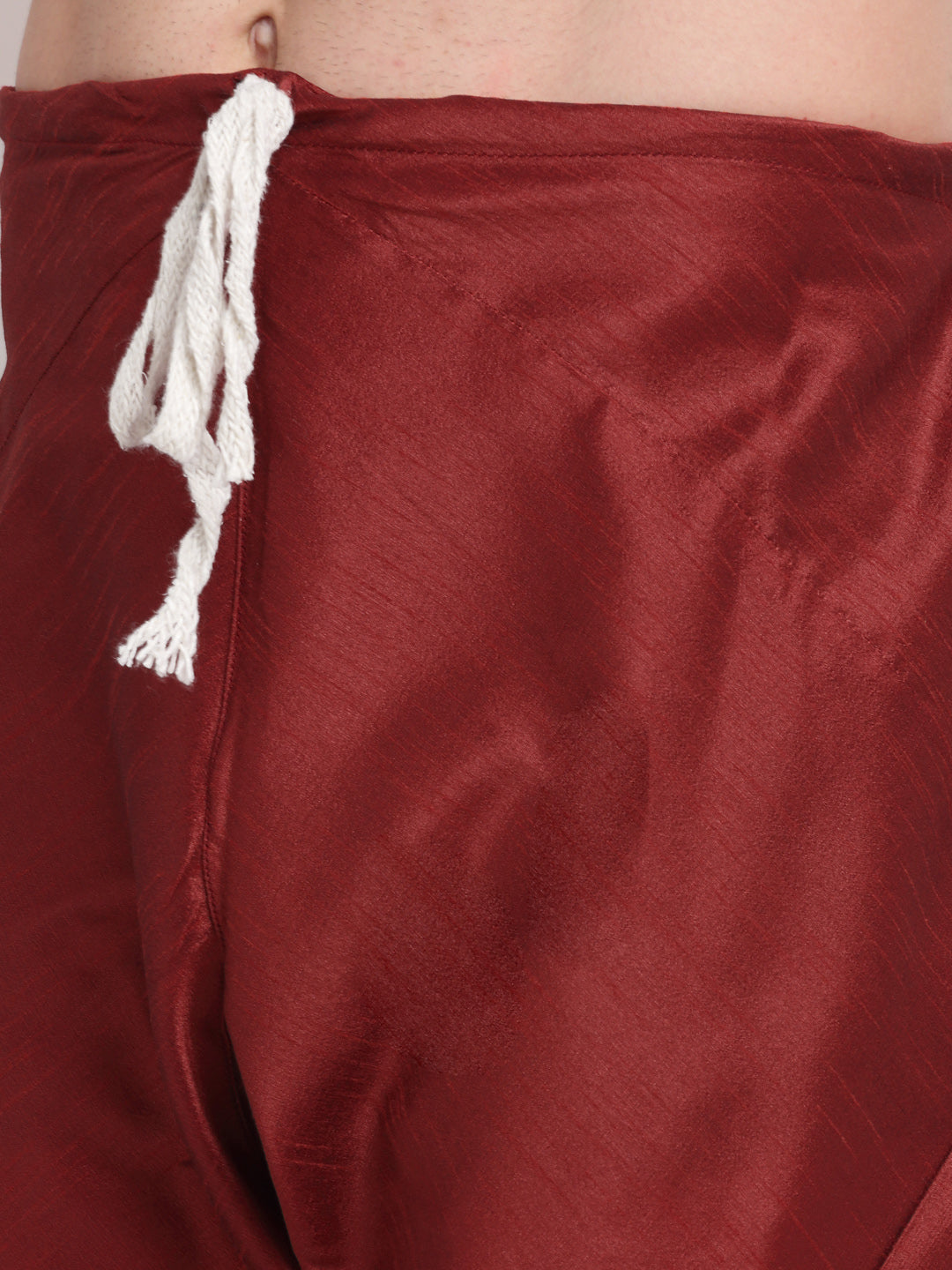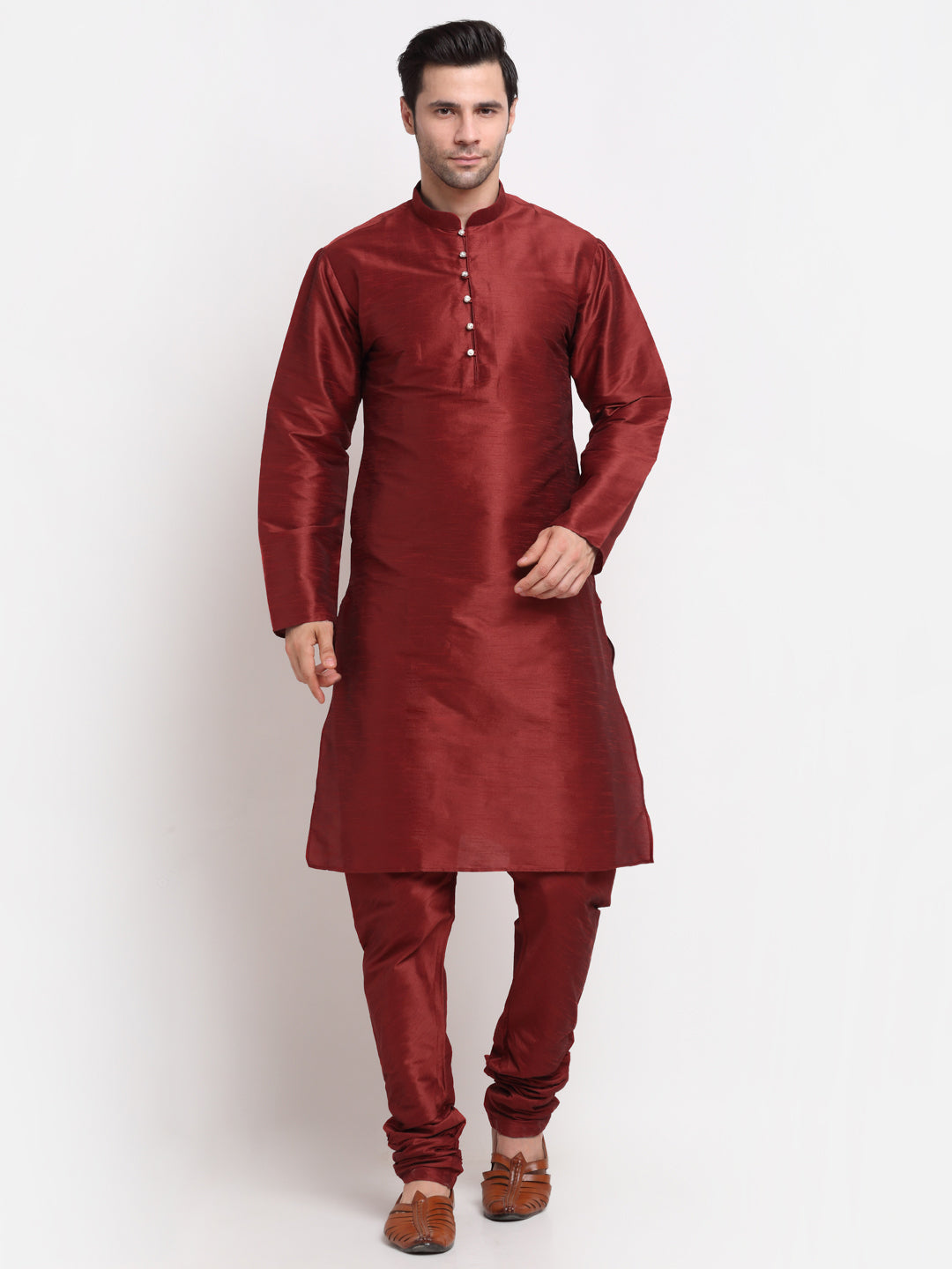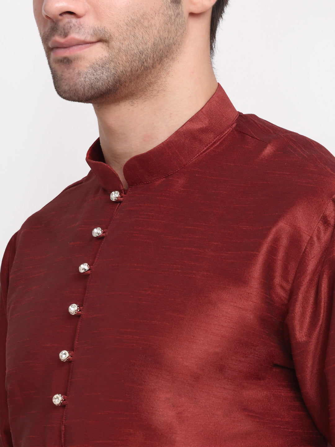KRAFT INDIA Men Maroon Kurta Churidar With Satin Floral Print Nehru Jacket