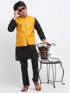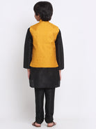 KRAFT INDIA Boy's Black Silk Blend Kurta and Churidar with Jacquard Yellow Nehru Jacket