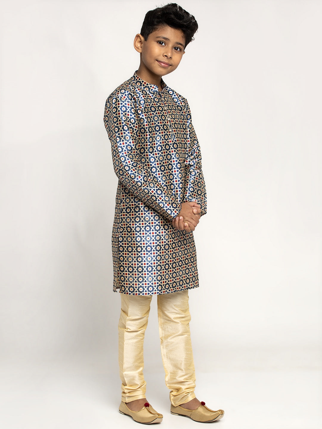 KRAFT INDIA Boy's Silk Blend Printed Kurta and Churidar