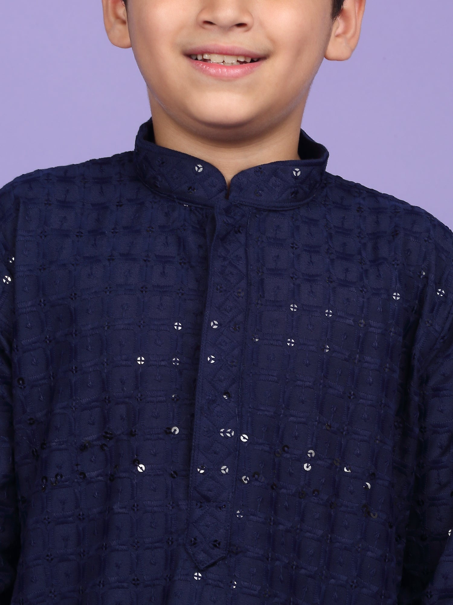 Cotton Blend Chikan Embroidered Sequinced Kurta Set