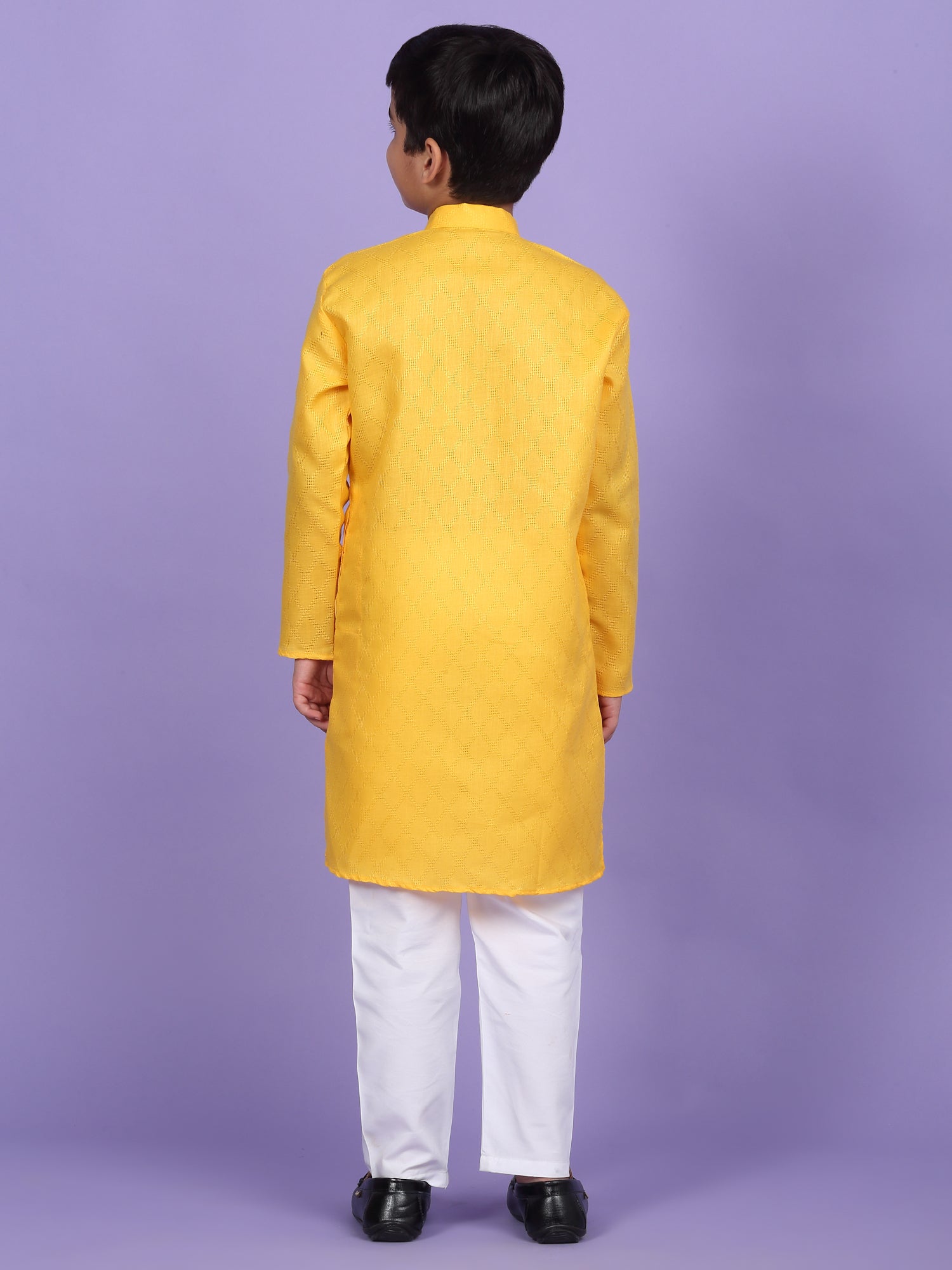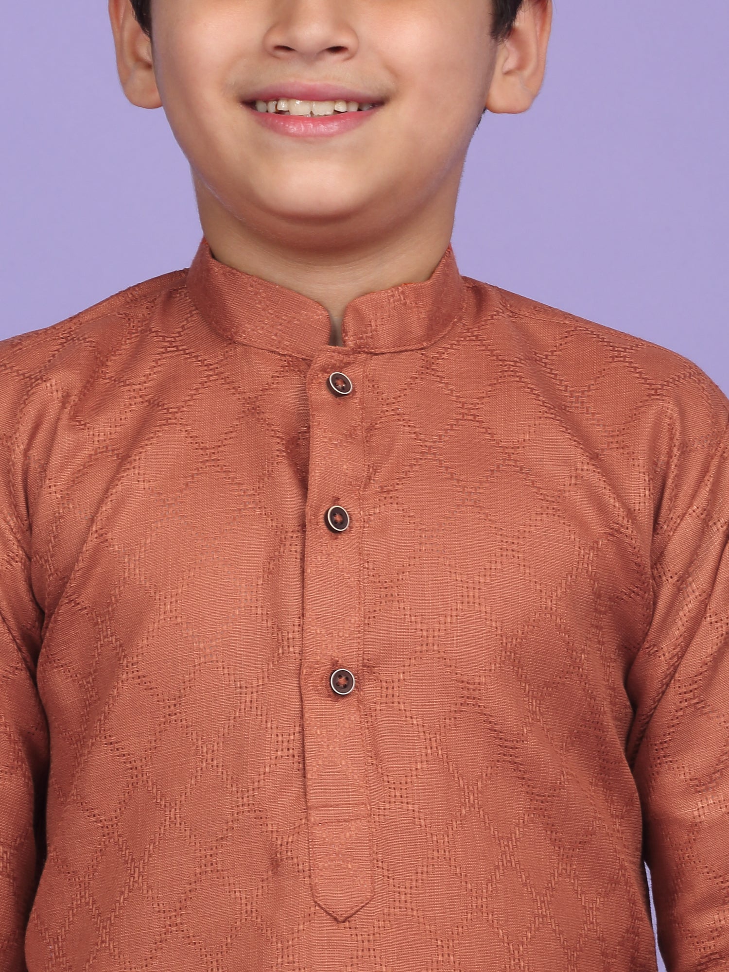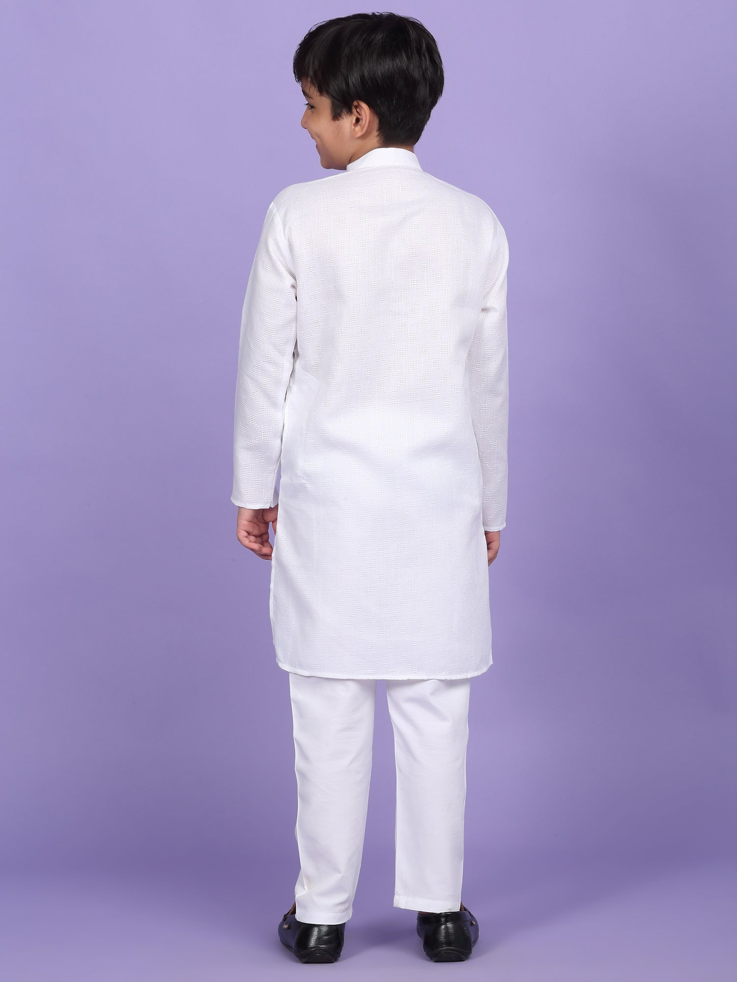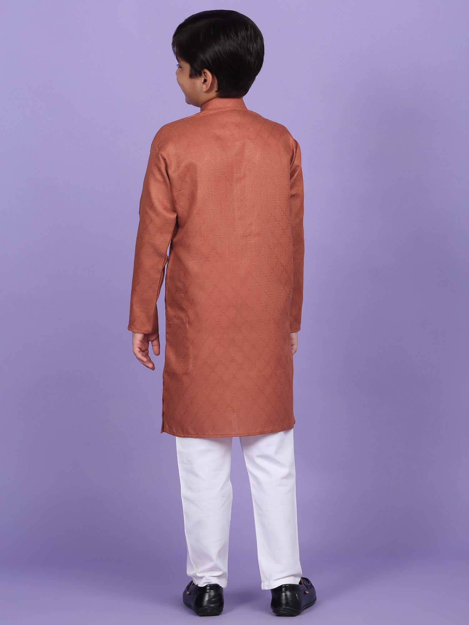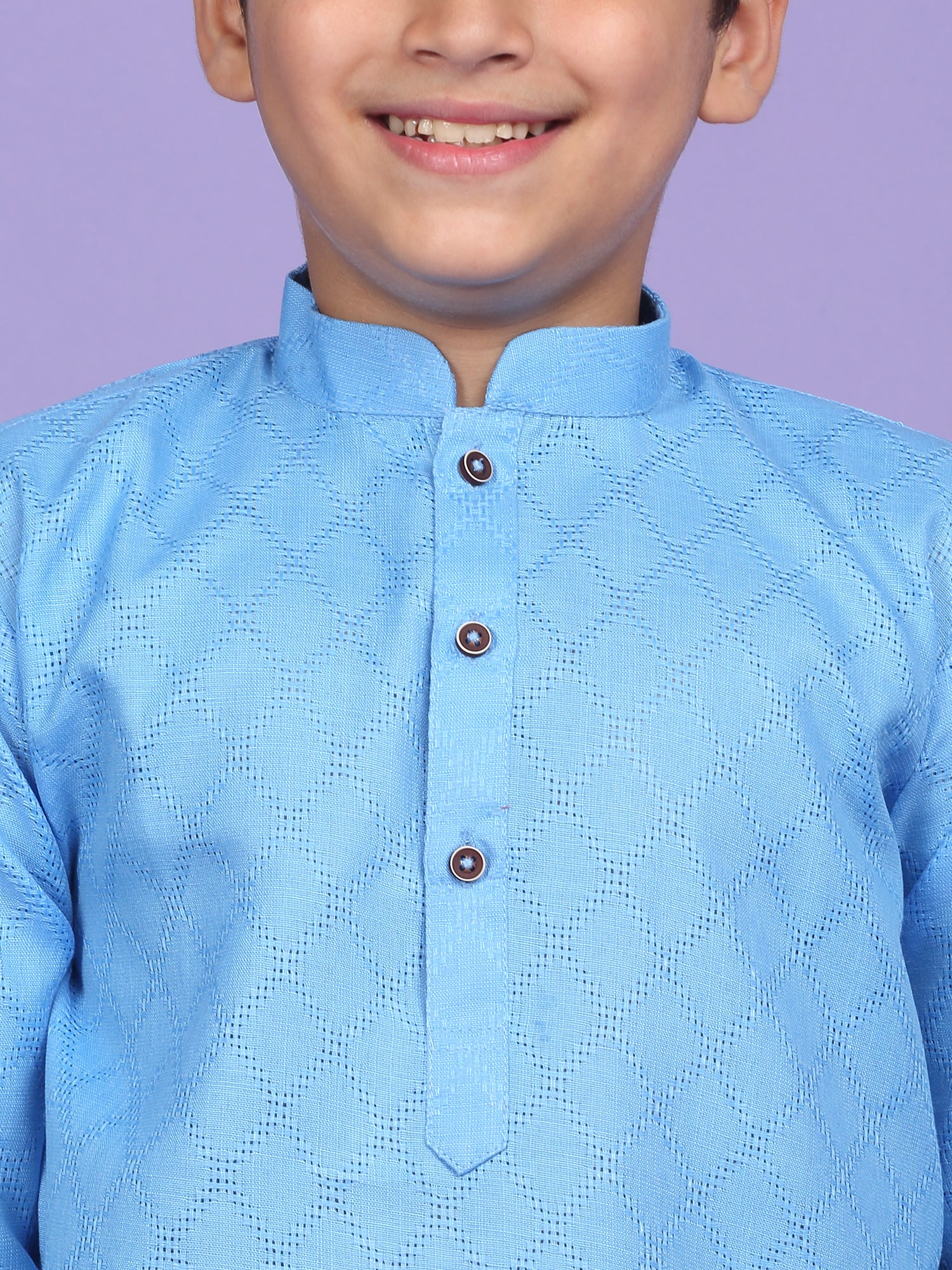 Upgrade your child’s ethnic wardrobe with this stylish and comfortable Kids Woven Design Cotton Kurta and Pyjama Set. Designed for festive wear and traditional occasions, this boys' kurta set is made from soft and breathable cotton fabric. The kurta features an elegant woven self-design, Mandarin collar, long sleeves, Handy side pockets add a practical touch, while the matching white pyjama completes this ethnic outfit. Whether it's a festival, wedding, or school ethnic day, this kurta pyjama set for boys is the perfect blend of tradition, comfort, and style.