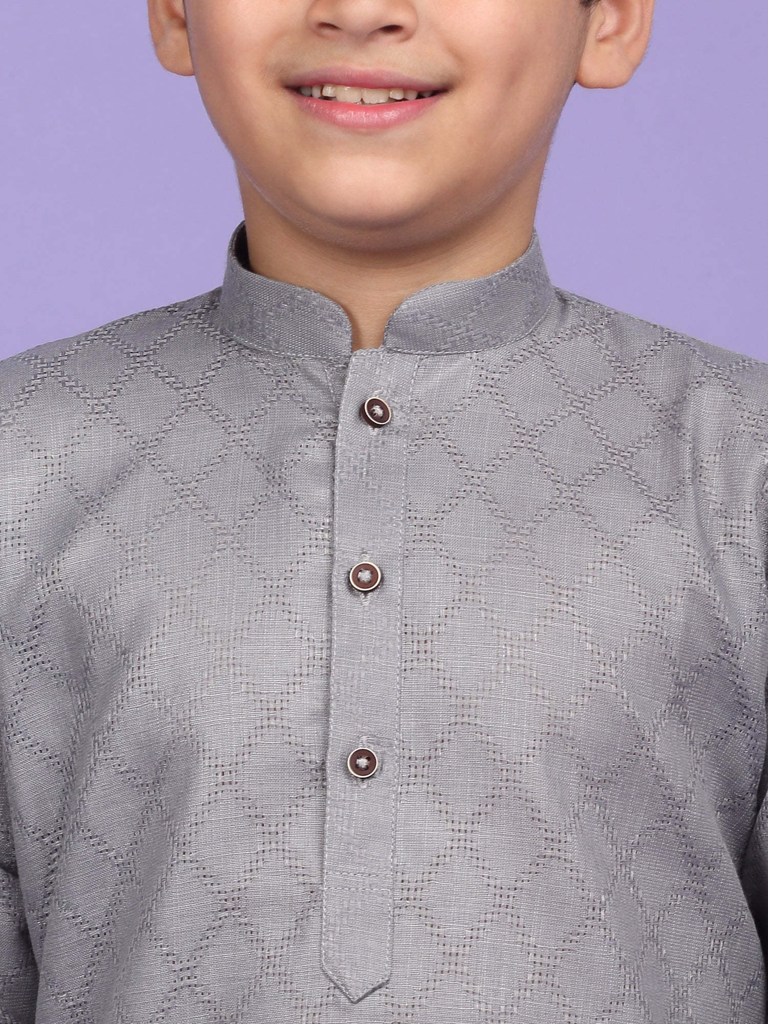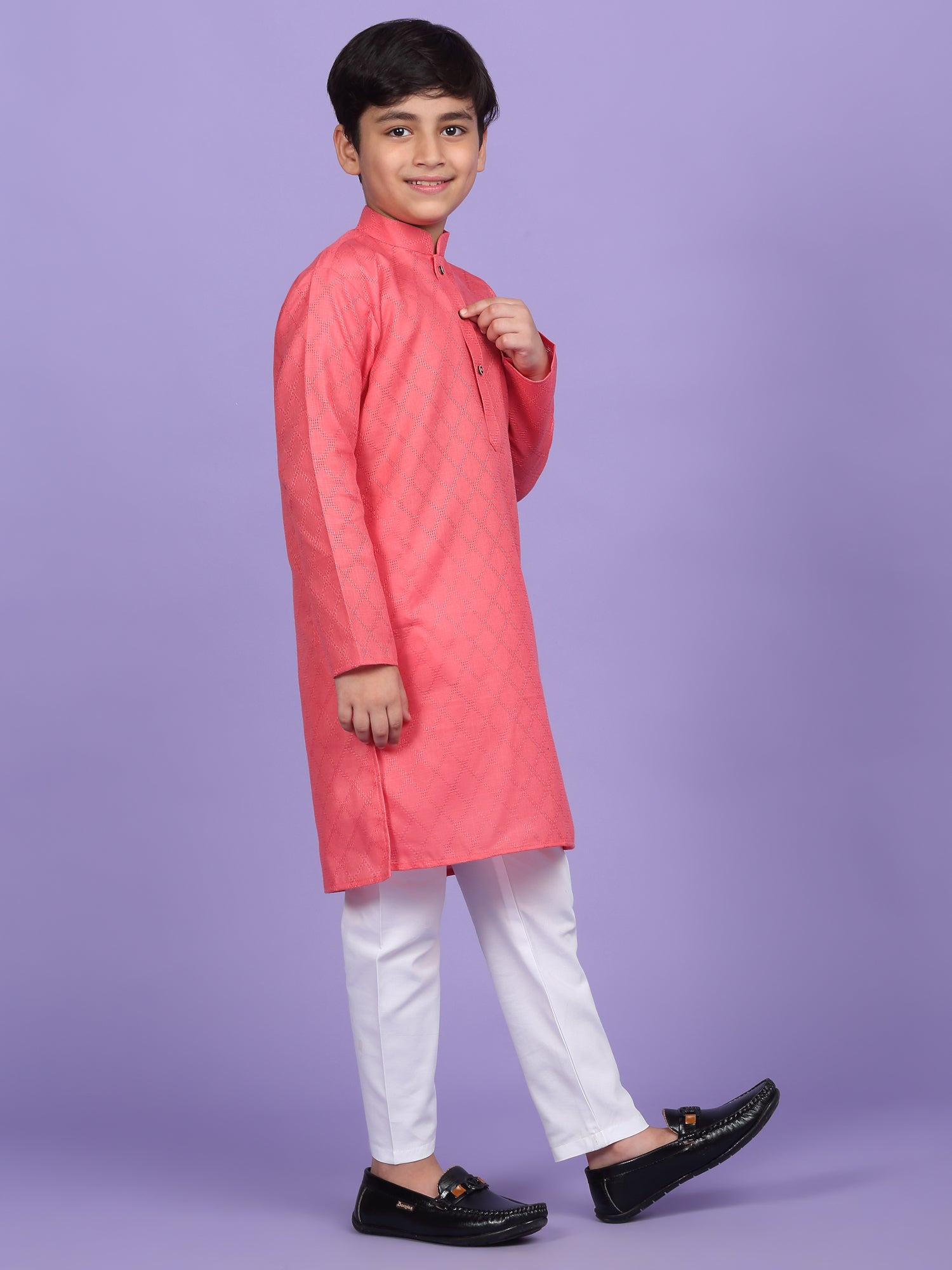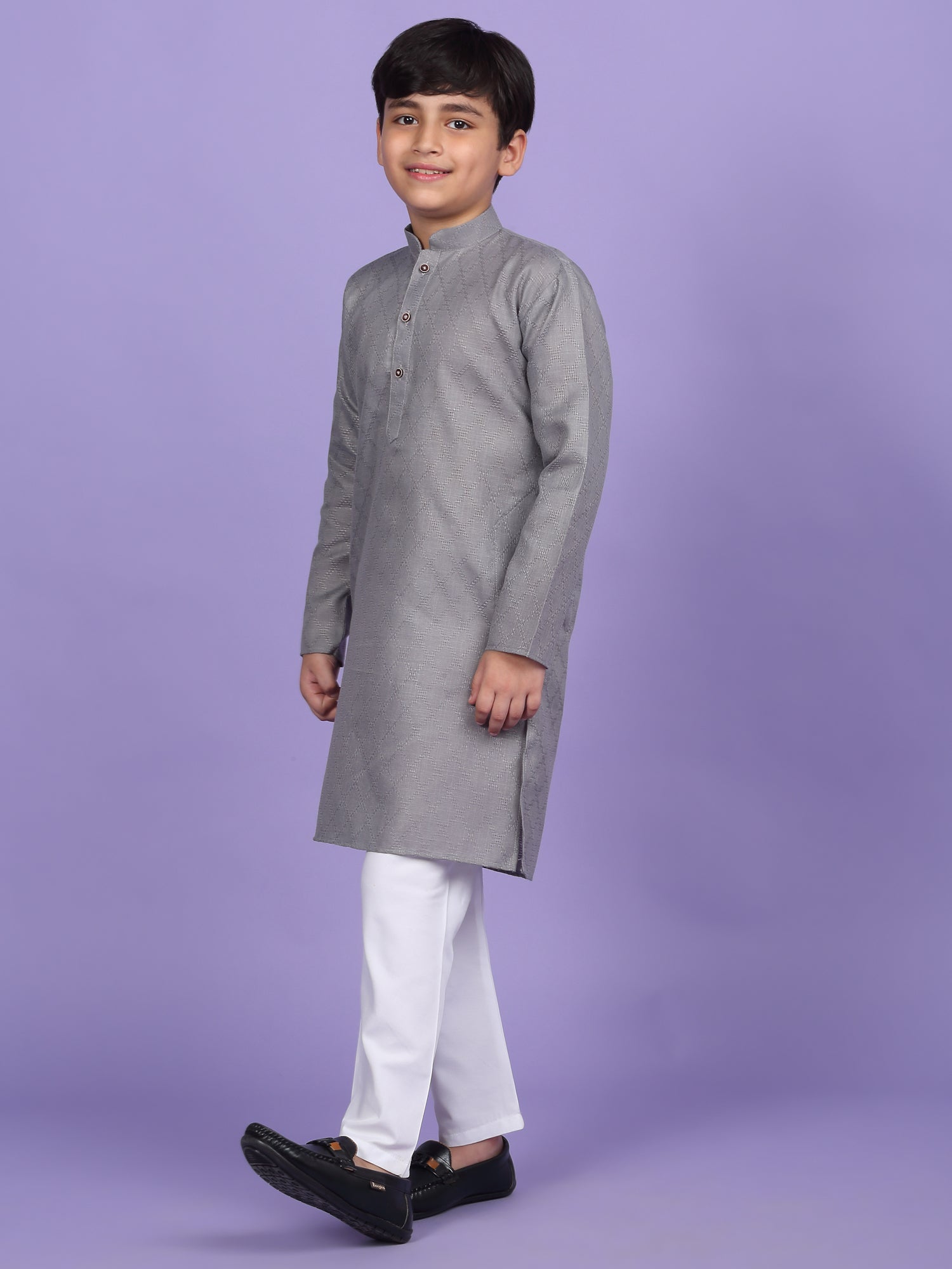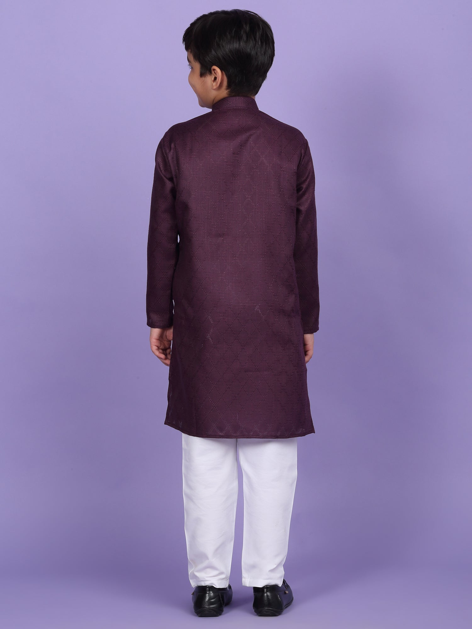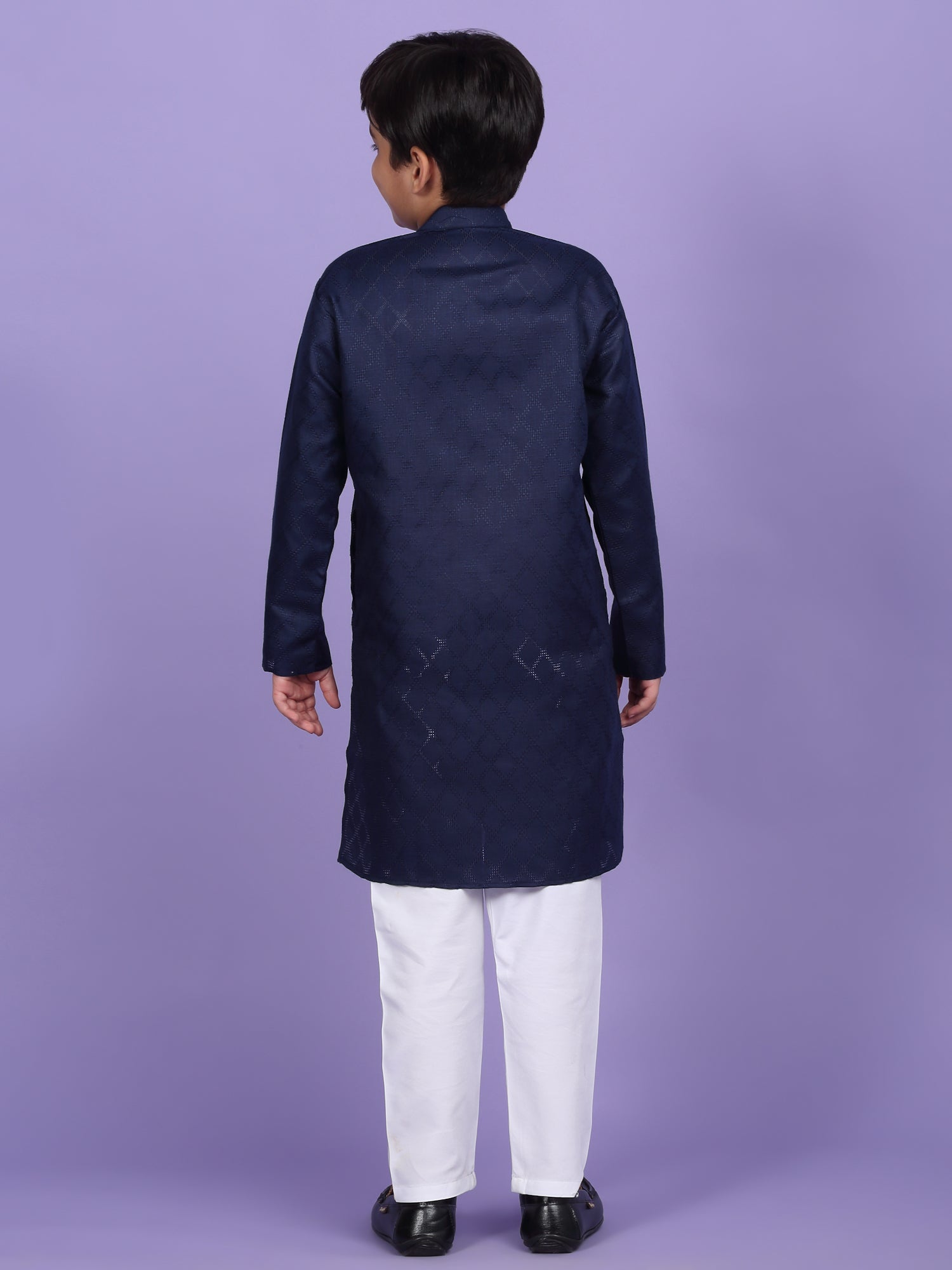 Upgrade your child’s ethnic wardrobe with this stylish and comfortable Kids Woven Design Cotton Kurta and Pyjama Set. Designed for festive wear and traditional occasions, this boys' kurta set is made from soft and breathable cotton fabric. The kurta features an elegant woven self-design, Mandarin collar, long sleeves, Handy side pockets add a practical touch, while the matching white pyjama completes this ethnic outfit. Whether it's a festival, wedding, or school ethnic day, this kurta pyjama set for boys is the perfect blend of tradition, comfort, and style.