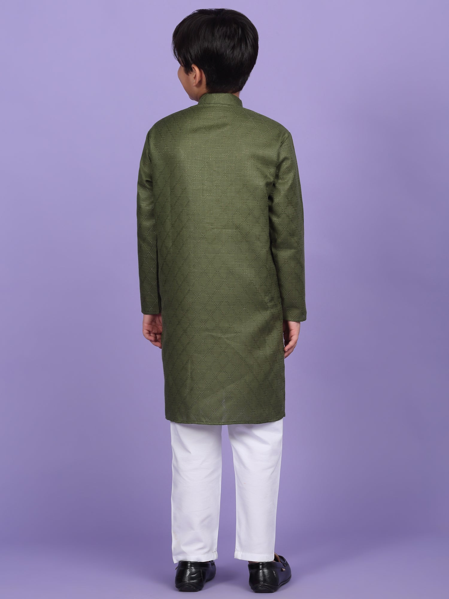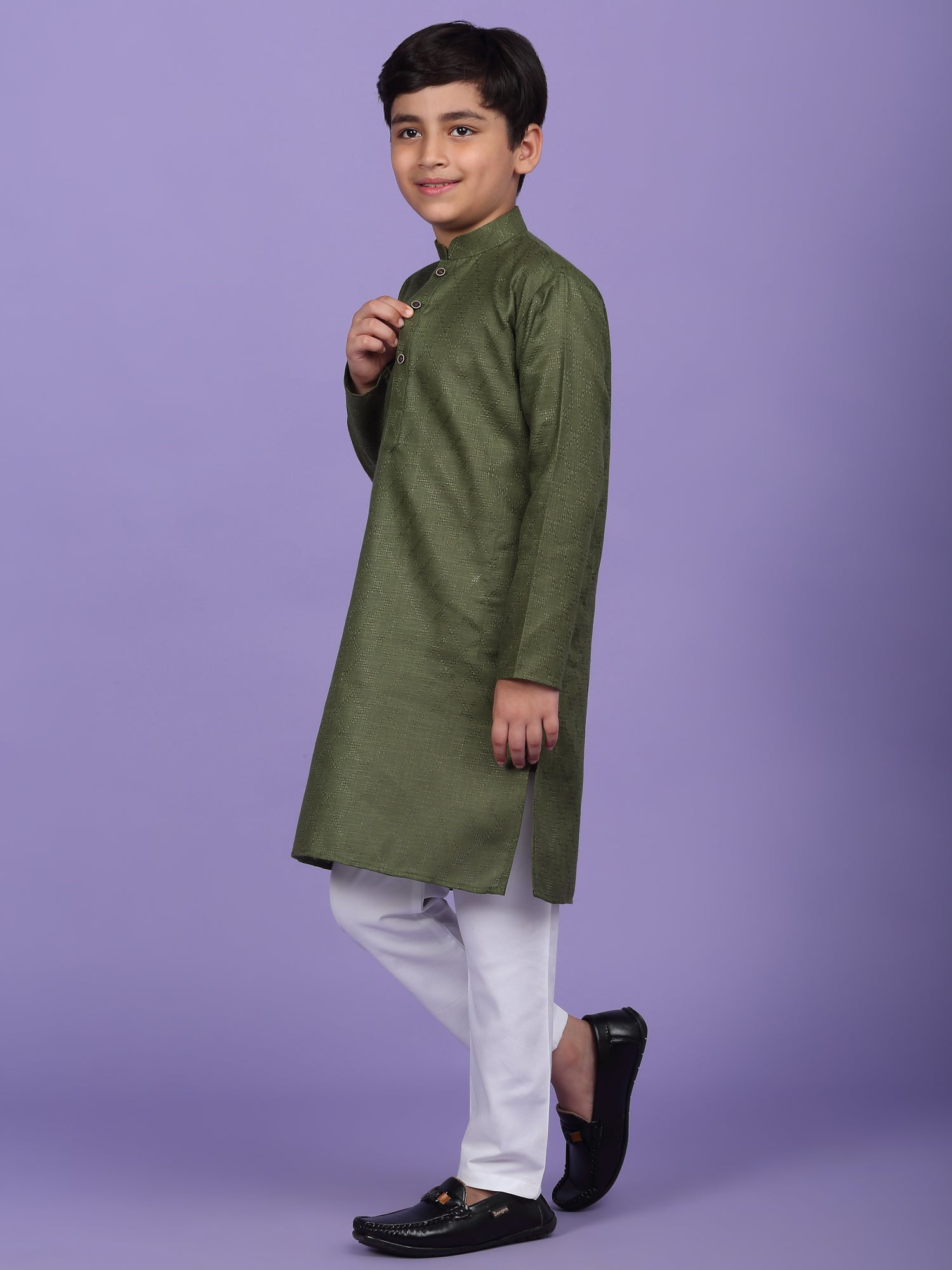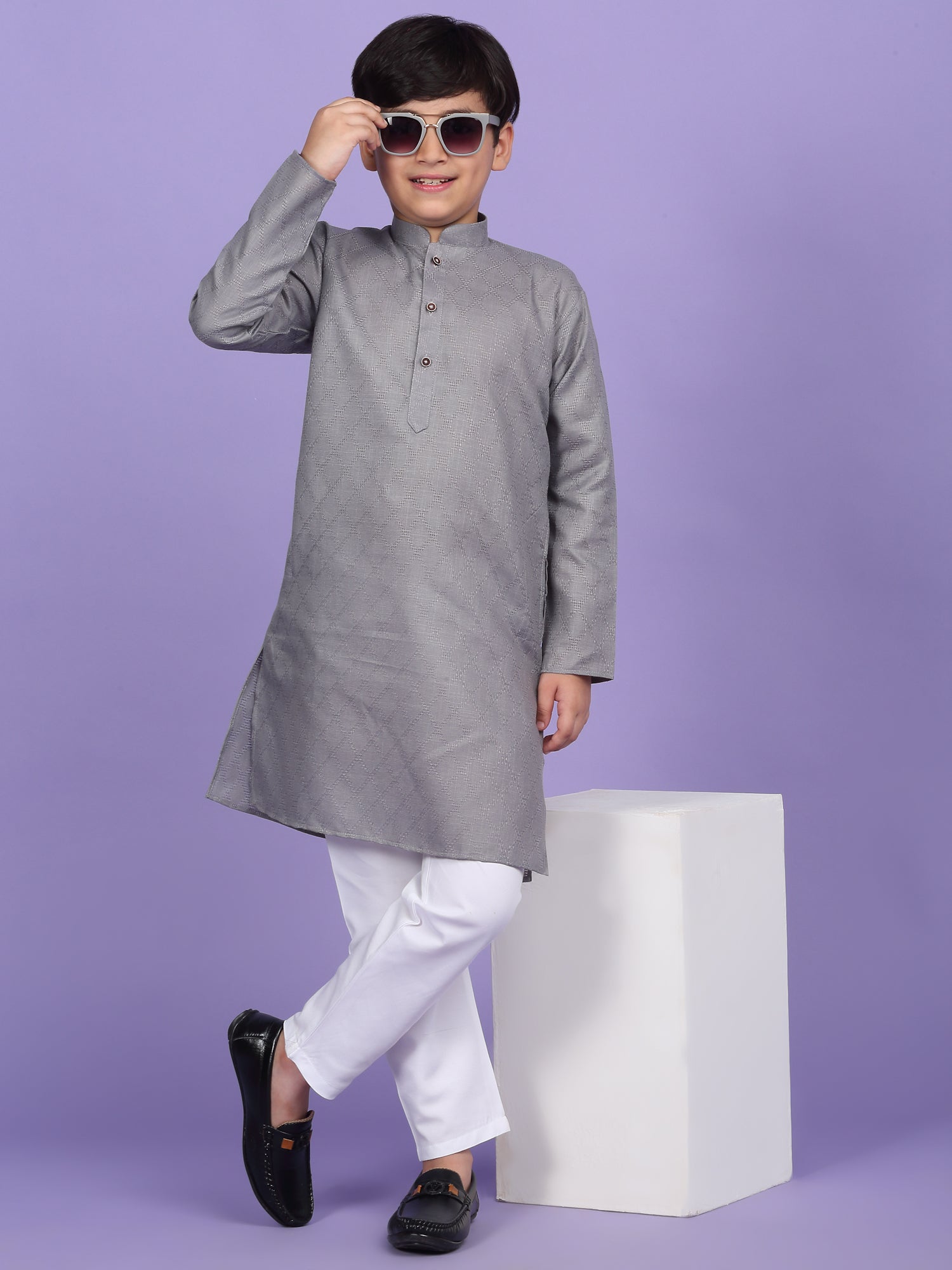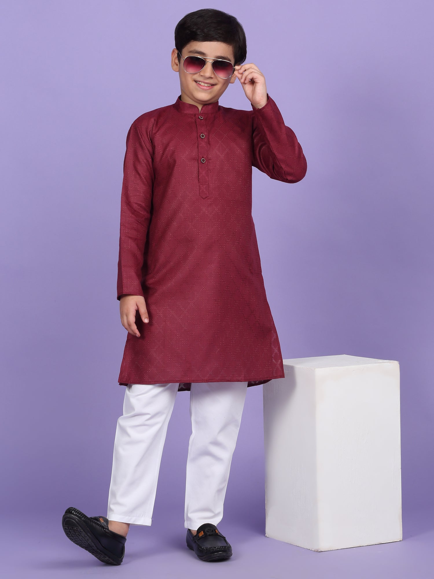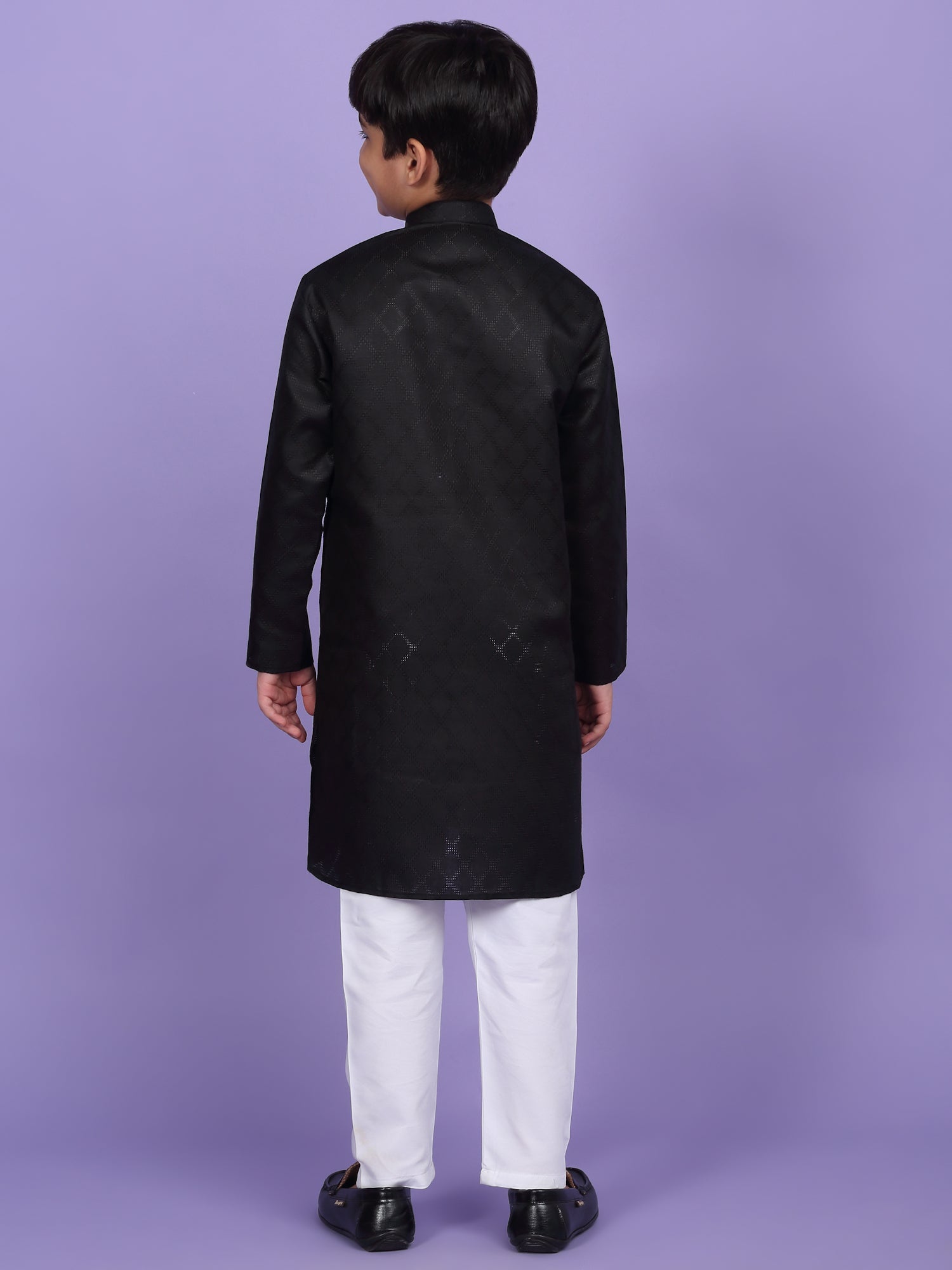 Upgrade your child’s ethnic wardrobe with this stylish and comfortable Kids Woven Design Cotton Kurta and Pyjama Set. Designed for festive wear and traditional occasions, this boys' kurta set is made from soft and breathable cotton fabric. The kurta features an elegant woven self-design, Mandarin collar, long sleeves, Handy side pockets add a practical touch, while the matching white pyjama completes this ethnic outfit. Whether it's a festival, wedding, or school ethnic day, this kurta pyjama set for boys is the perfect blend of tradition, comfort, and style.