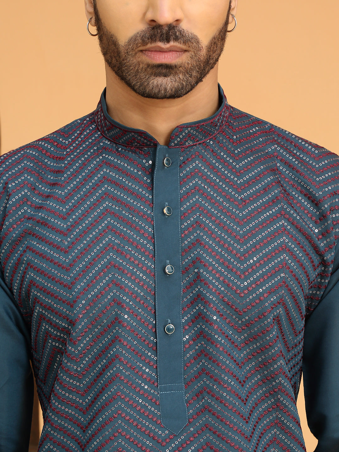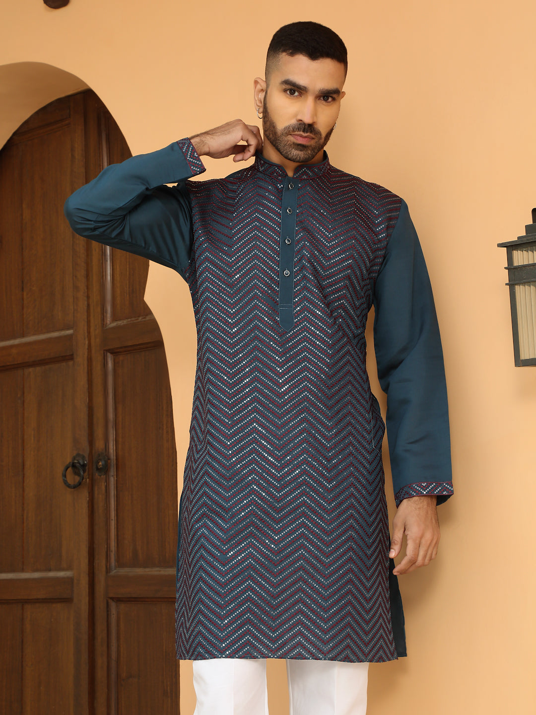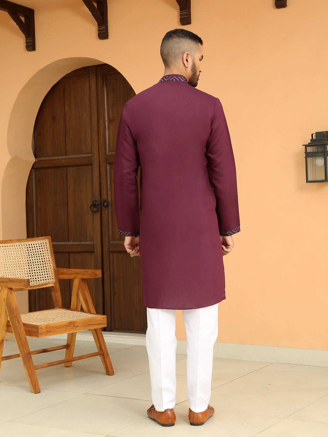 Step into timeless elegance with this Men’s Chevron Embroidered Kurta and White Trouser Pant Set. Designed with precision, the kurta features intricate chevron embroidery across the chest, giving it a refined yet modern appeal. The straight-cut silhouette and knee-length design offer a classic ethnic look that suits both festive and formal occasions. Crafted from soft, breathable fabric, the kurta ensures lasting comfort, while the full sleeves add a traditional touch that’s perfect for cultural gatherings, weddings, and celebrations. It comes paired with a crisp white trouser pant tailored for a clean, structured finish and easy movement. Whether you’re dressing for a family function or a festive event, this kurta set delivers style, comfort, and sophistication in one effortless ensemble. Hand wash or gentle machine wash is recommended to preserve the embroidery and fabric quality.