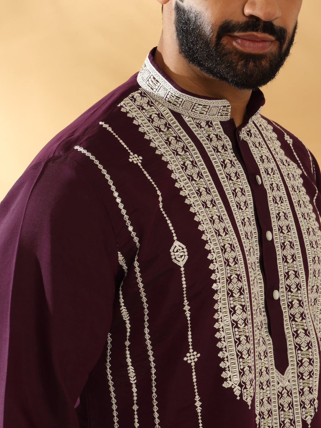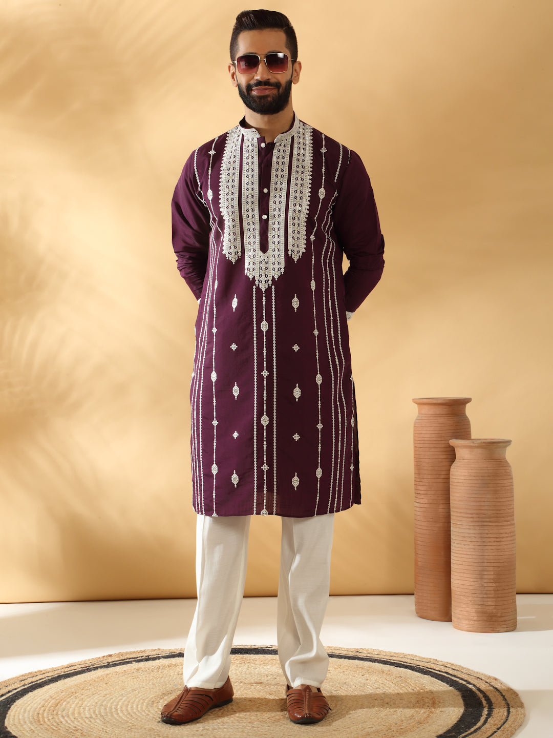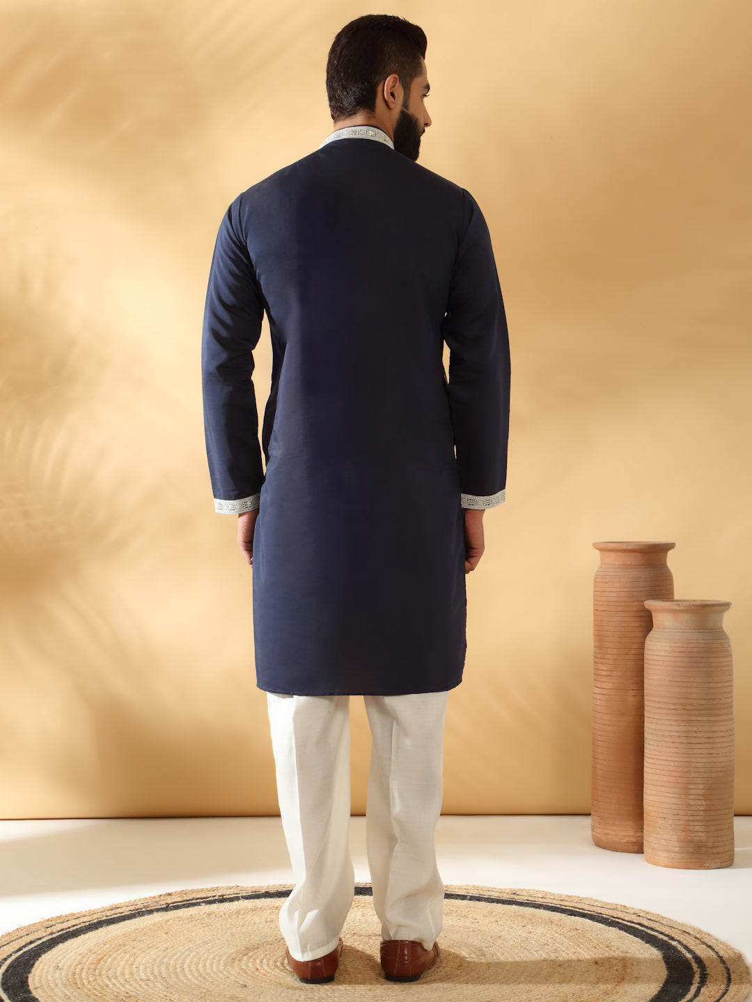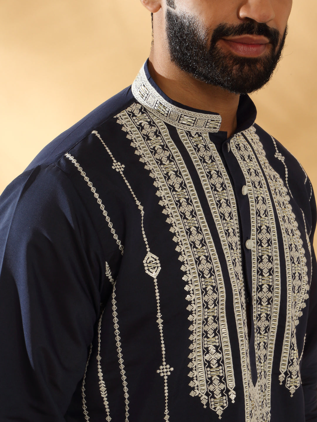 Elevate your traditional wardrobe with this elegant Men's Cotton Silk Kurta and Trouser Pant Set. The black kurta features intricate beads work, zari embroidery, and sequin detailing, adding a touch of regal charm. Paired with a cream cotton silk trouser pant, this ensemble blends comfort with sophistication, making it perfect for festive occasions, weddings, and cultural celebrations.
