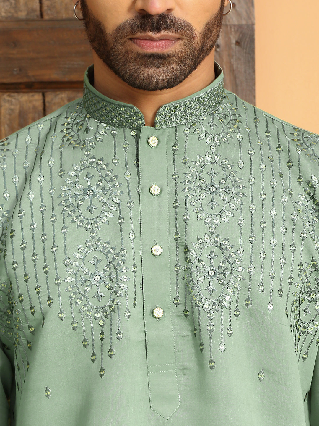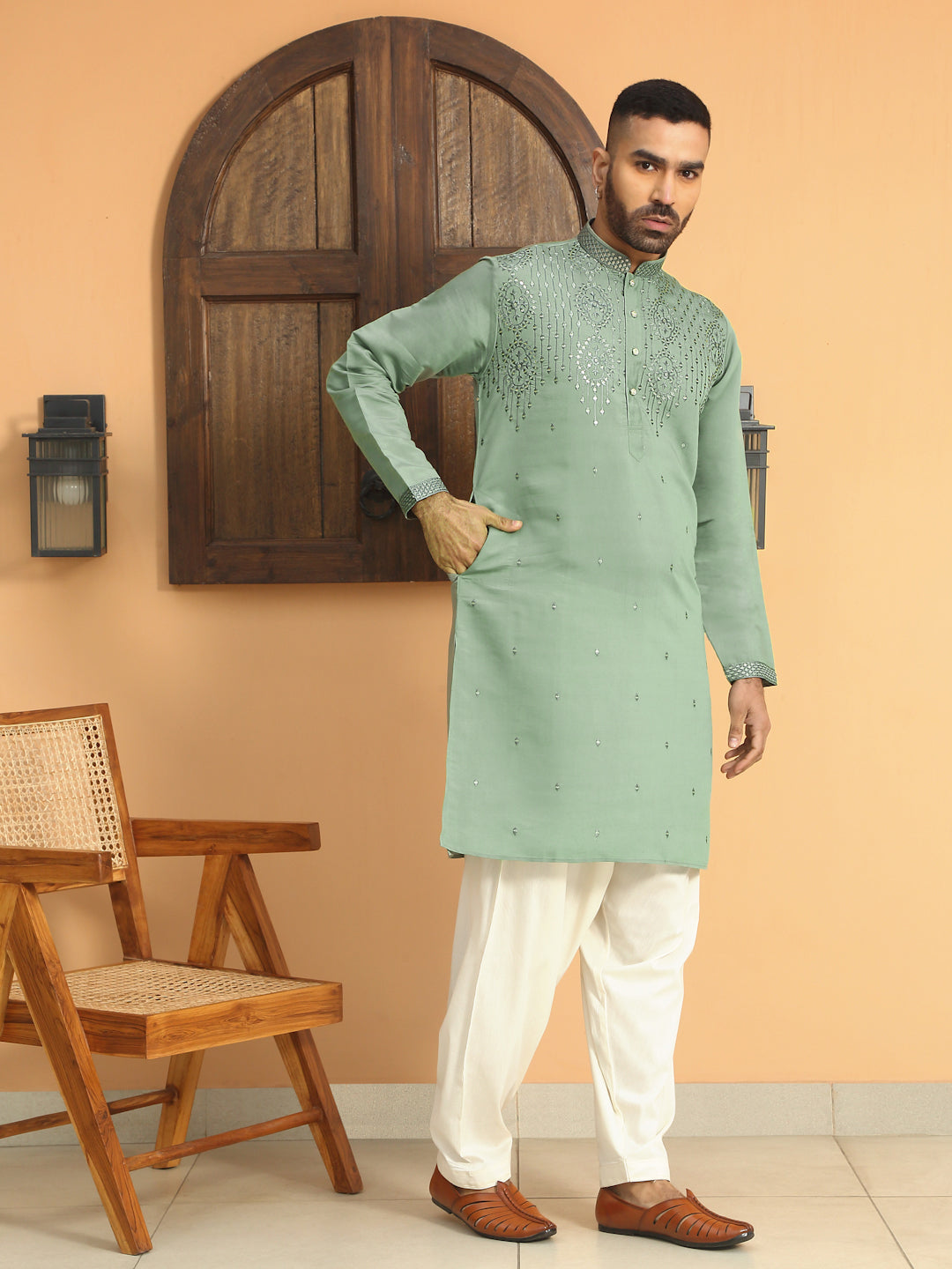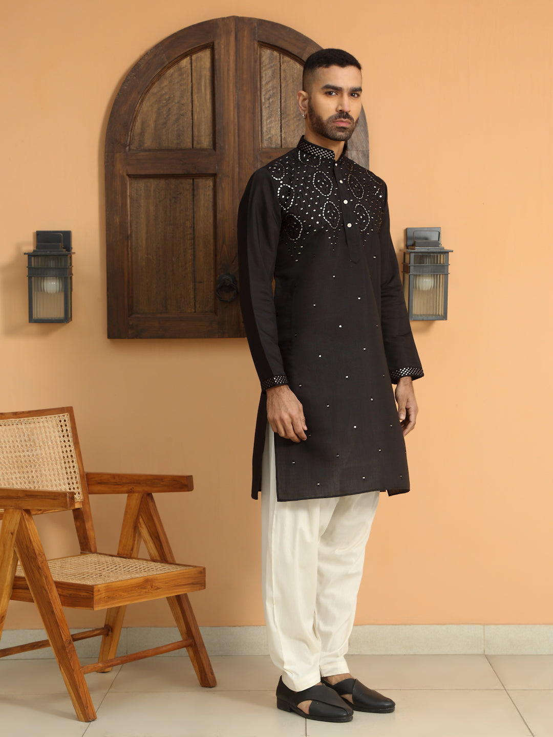 LUXE- Cotton Silk Embroidered Sequins work Kurta