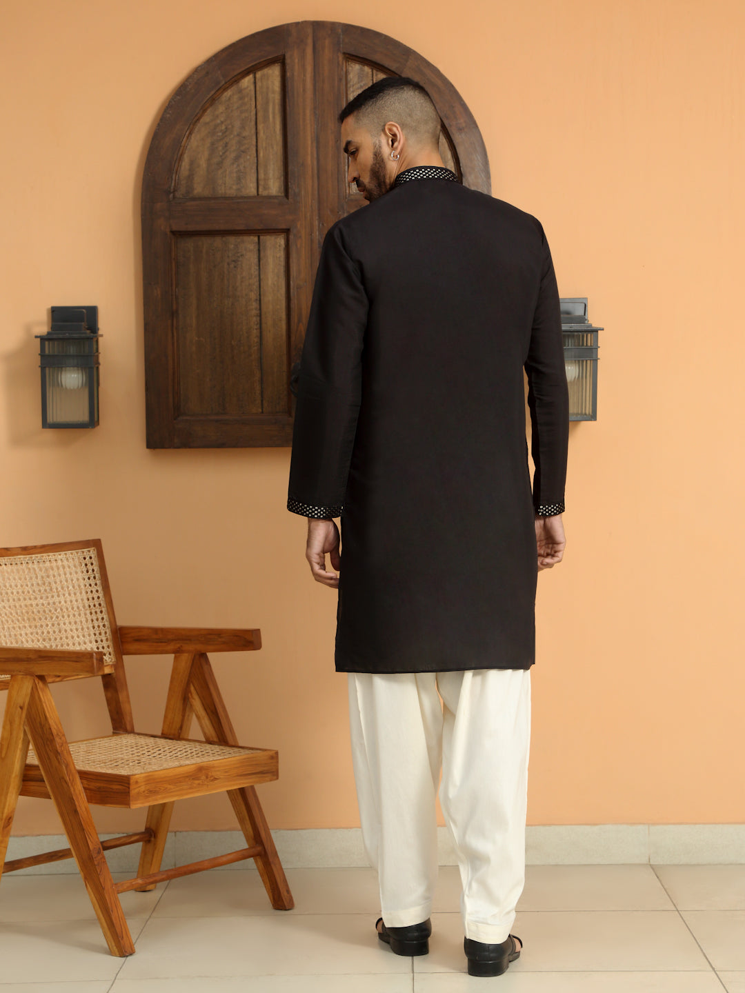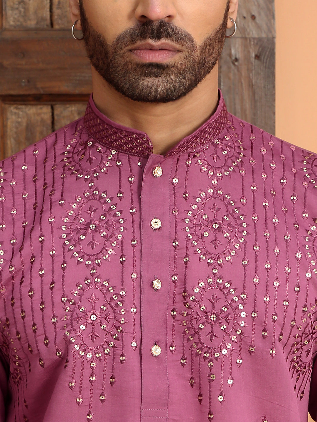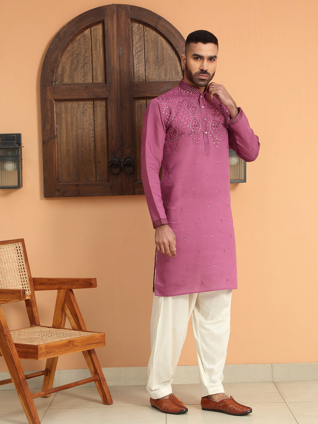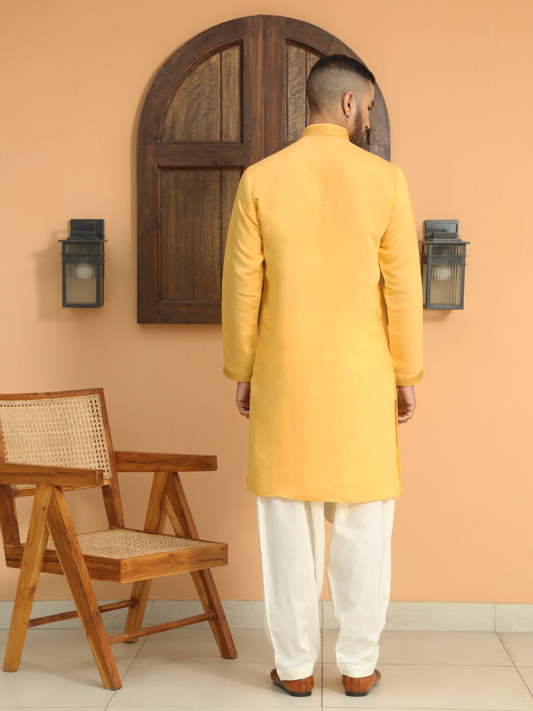 Upgrade your ethnic wardrobe with this premium Men's Cotton Silk Kurta from KRAFT INDIA LUXE. Designed for comfort and style, this kurta is perfect for festive occasions, weddings, and cultural events. Crafted from a cotton silk blend for a lightweight, soft, and breathable feel. Detailed with intricate embroidery and subtle sequins work, adding a sophisticated sparkle to your look. Straight knee-length design with a straight hem, offering a timeless and flattering fit. Equipped with side pockets for added convenience without compromising style. Features a button-closure mandarin collar for a sleek and refined appearance. Enhance your festive style with the KRAFT INDIA LUXE Cotton Silk Embroidered Kurta—where tradition meets luxury.
