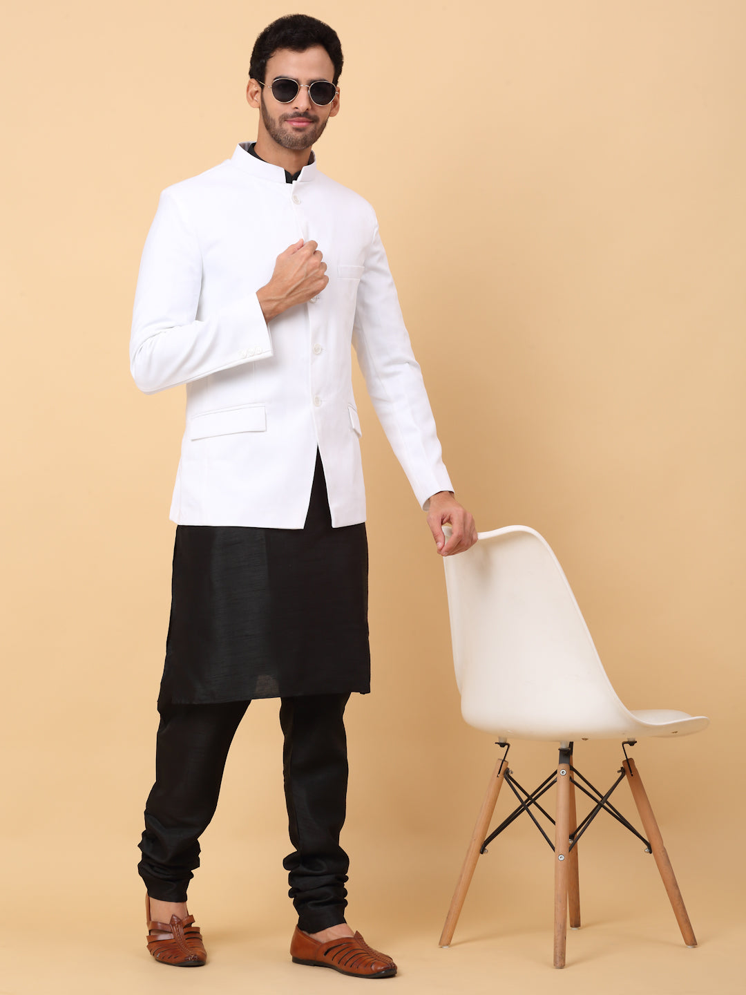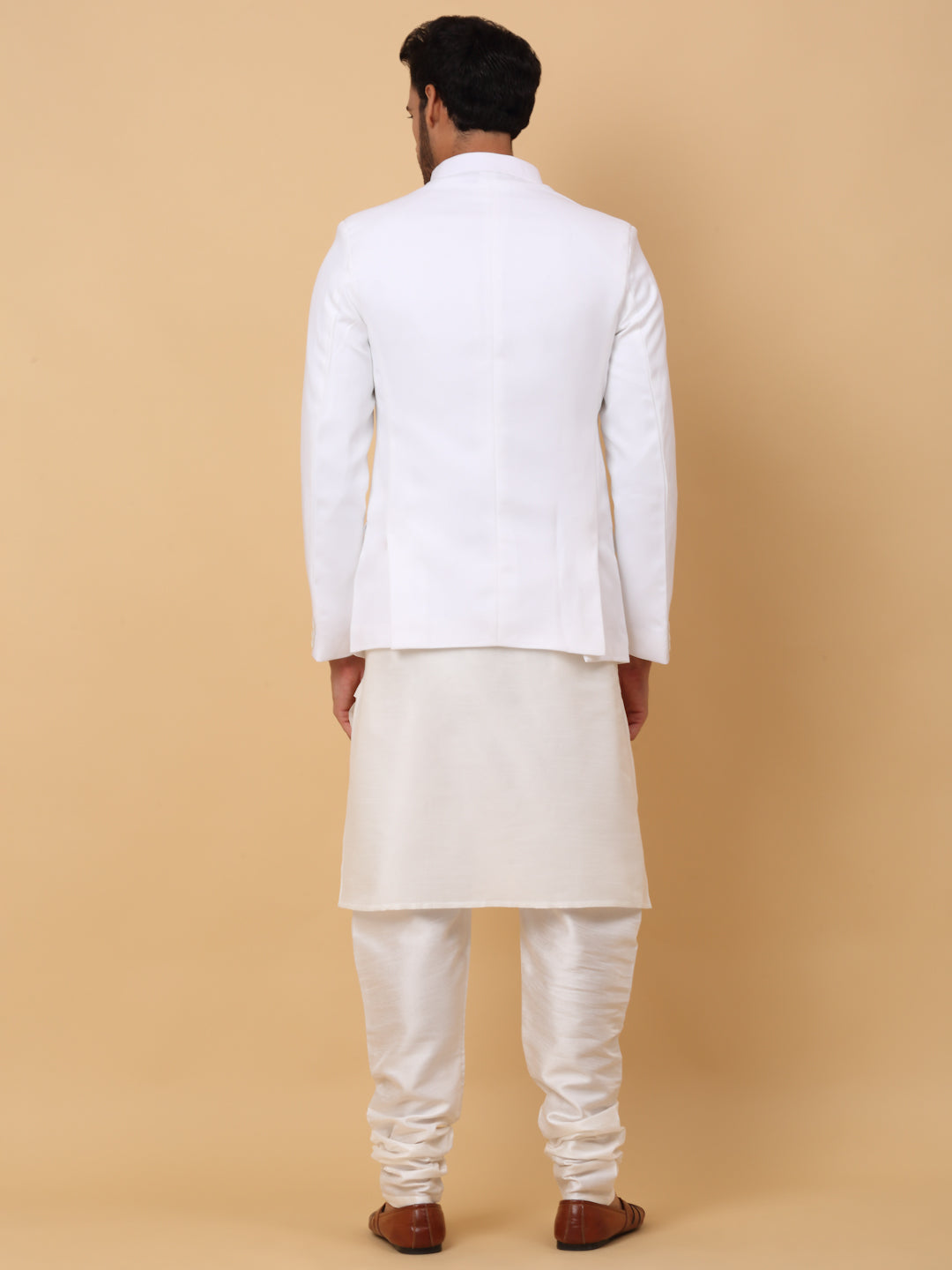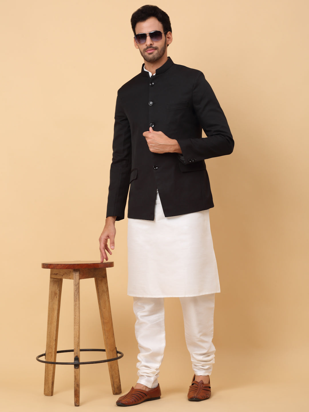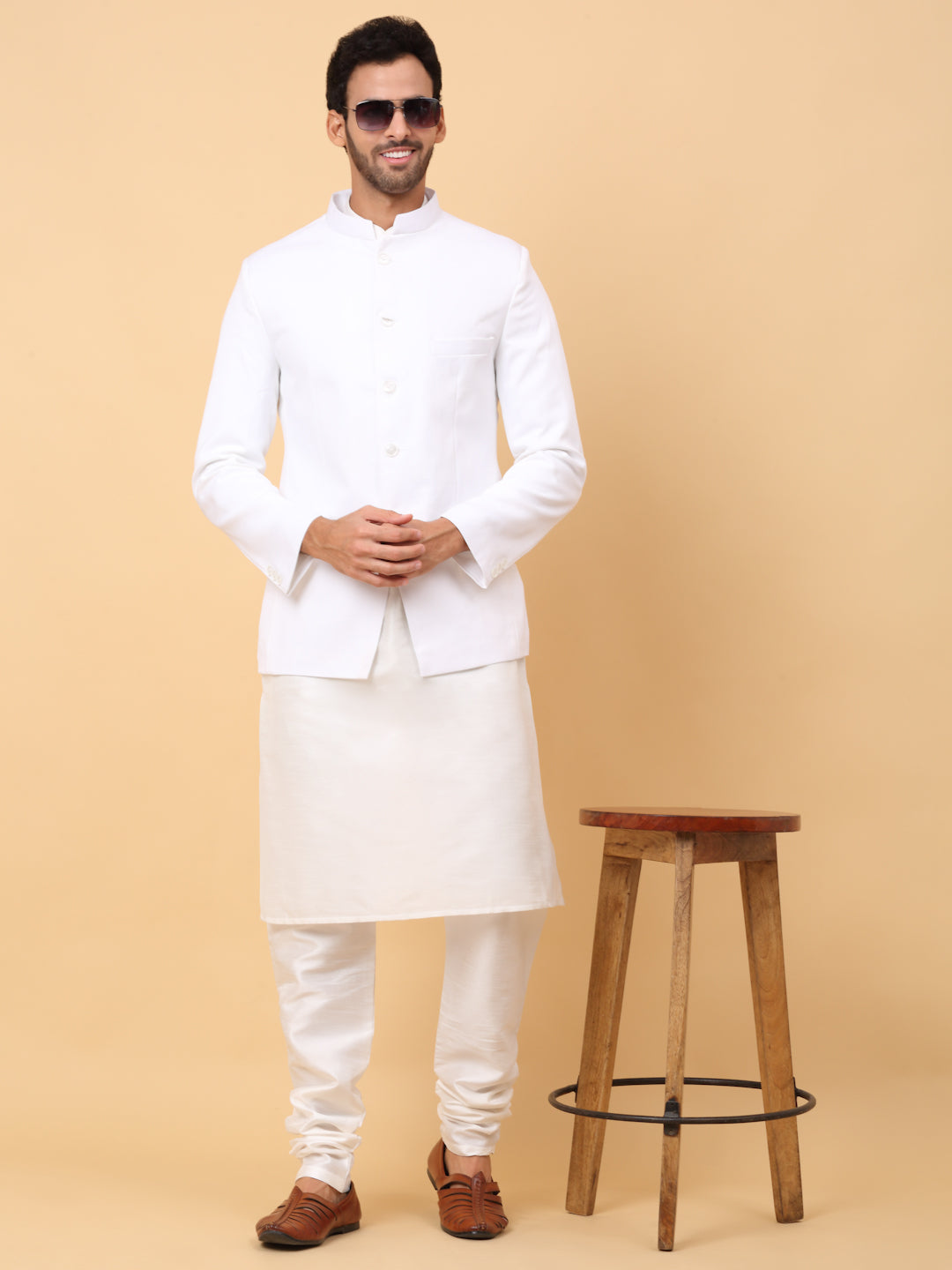KRAFT INDIA Men's Silk Cream Kurta Churidar With Solid Twill Bandhgala Suit/Coat
