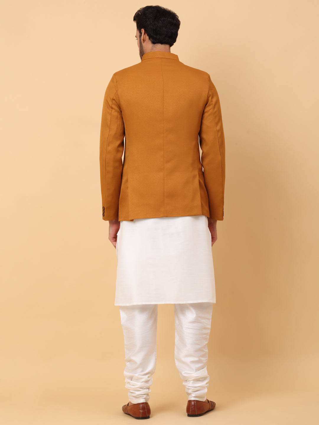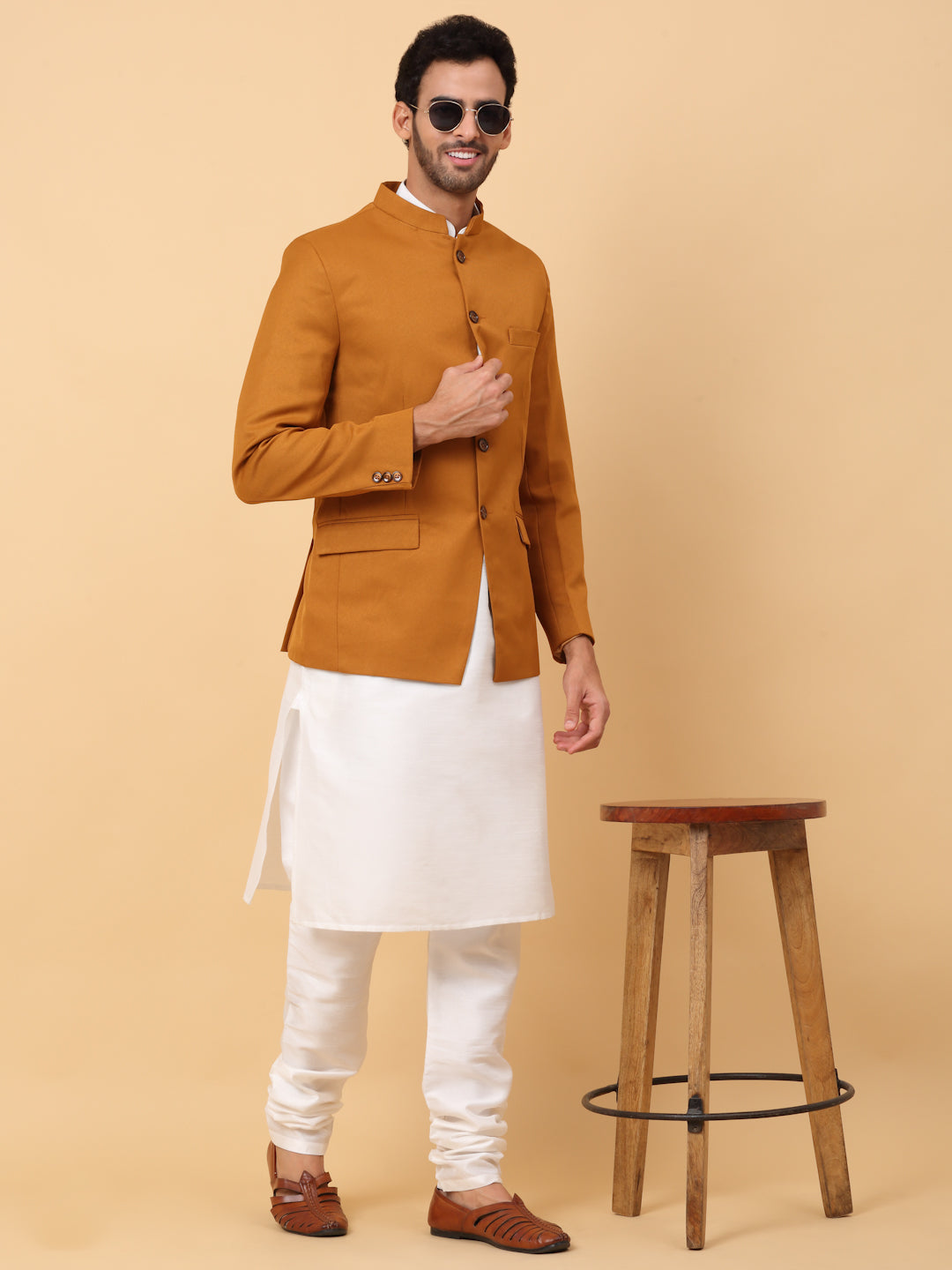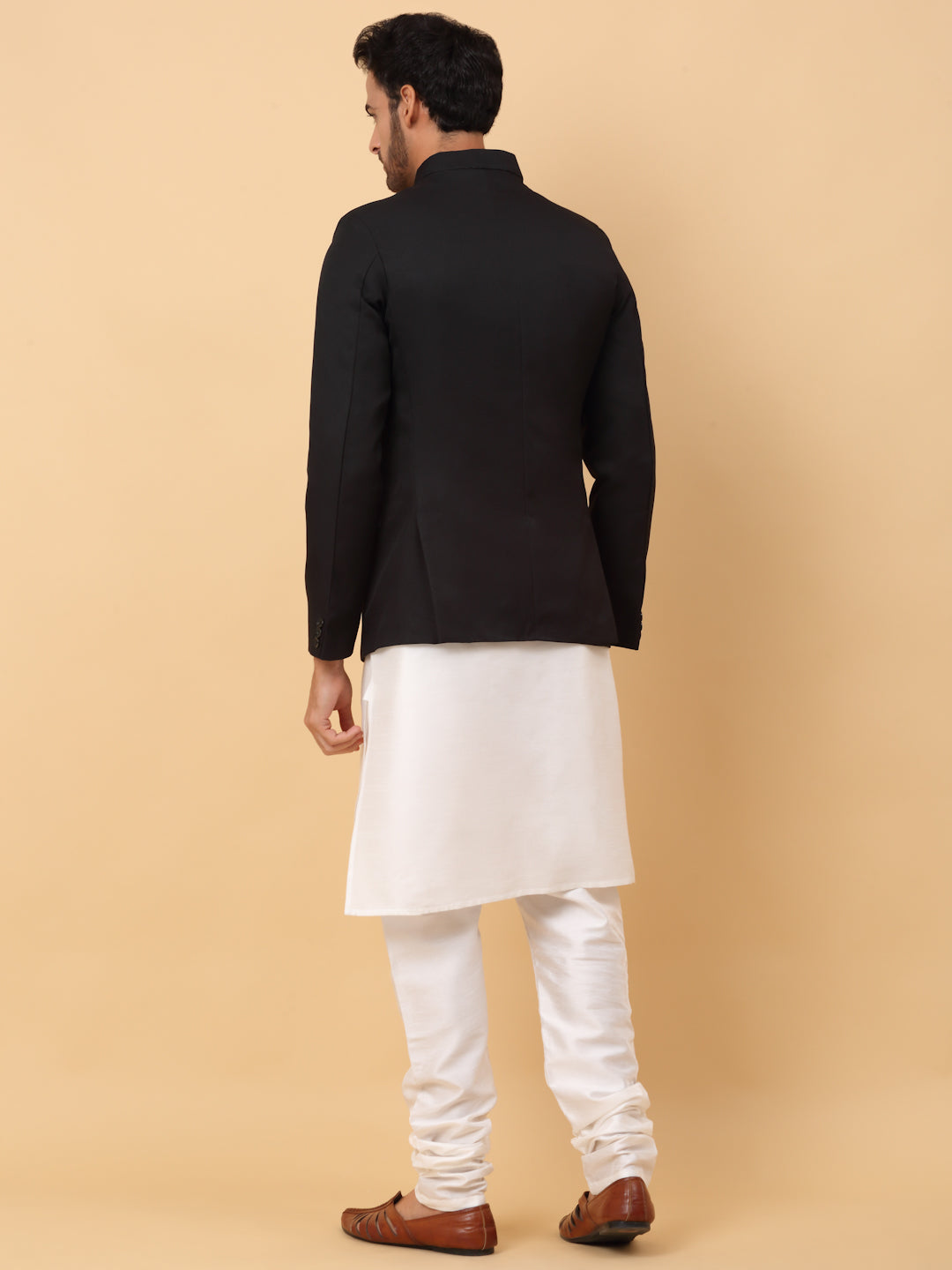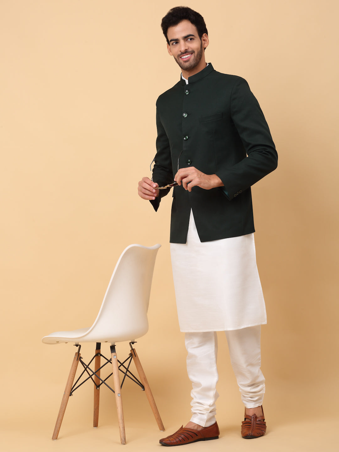 KRAFT INDIA Men's Silk Cream Kurta Churidar With Solid Twill Bandhgala Suit/Coat