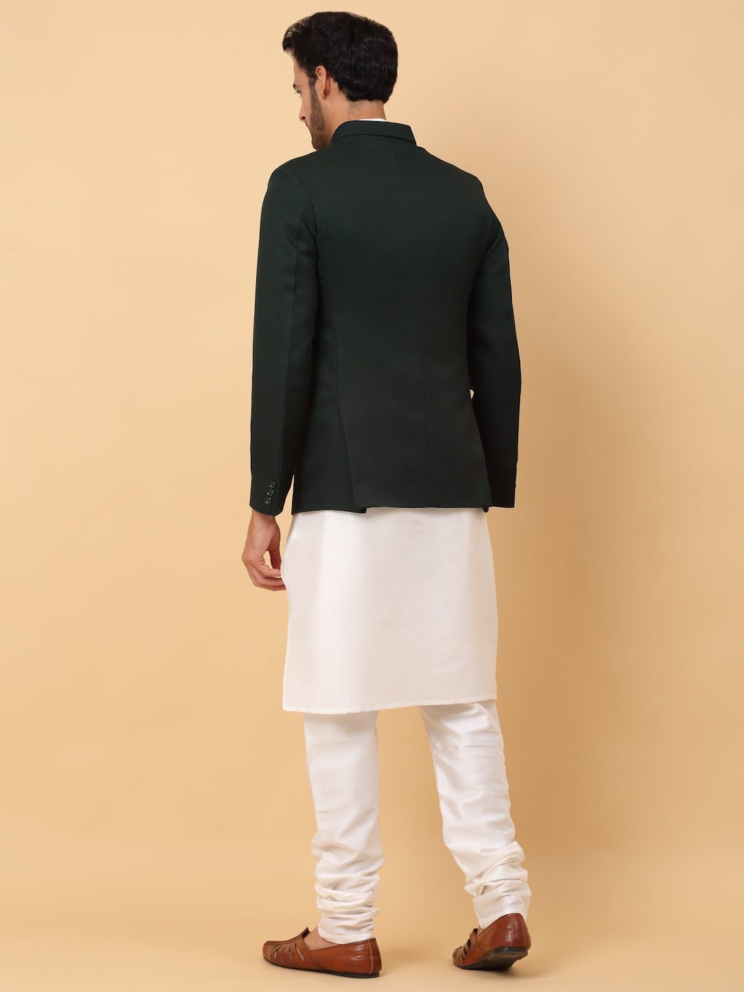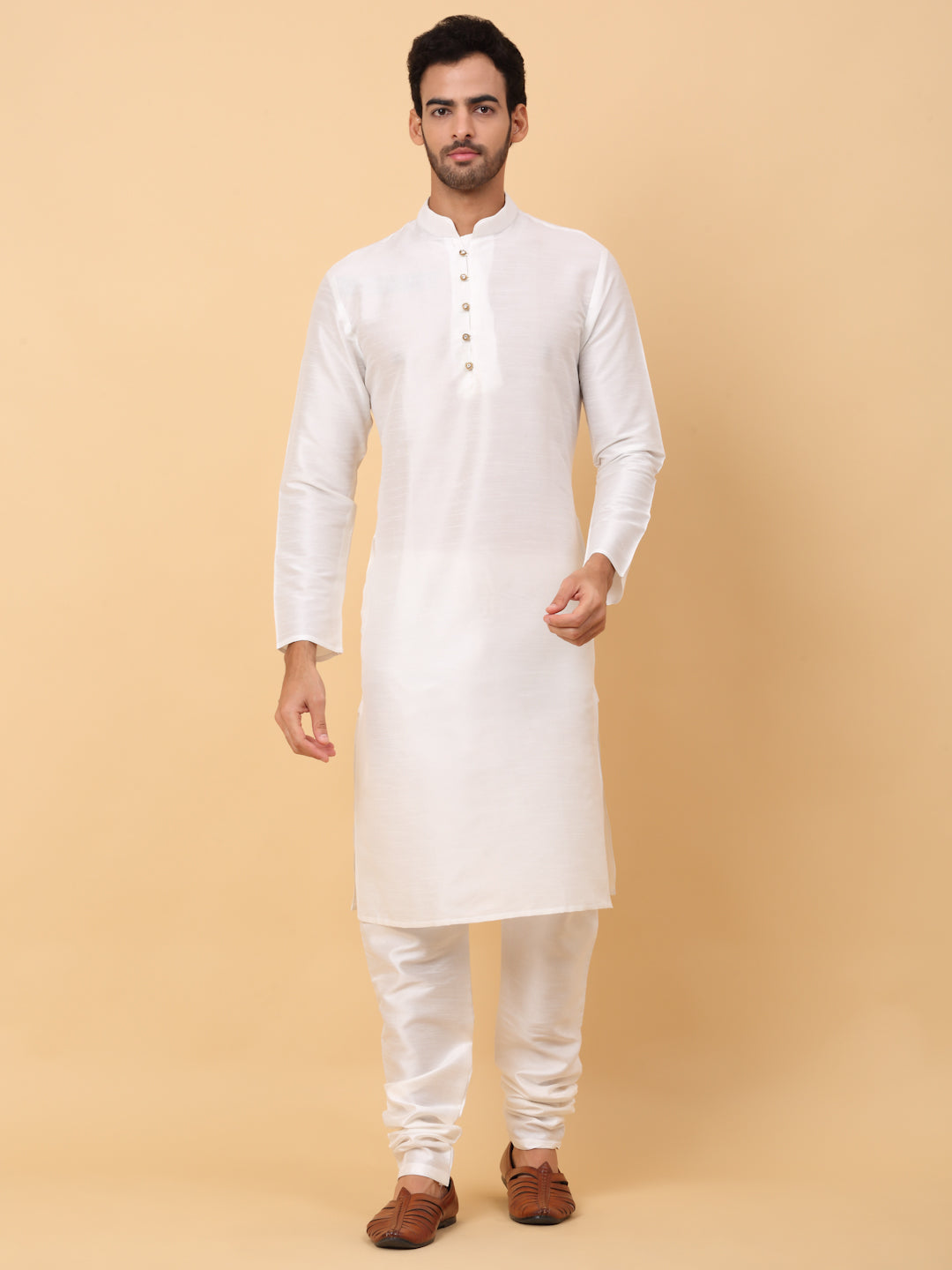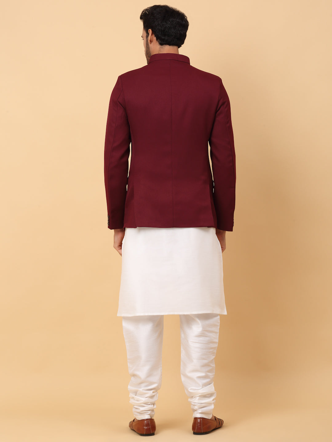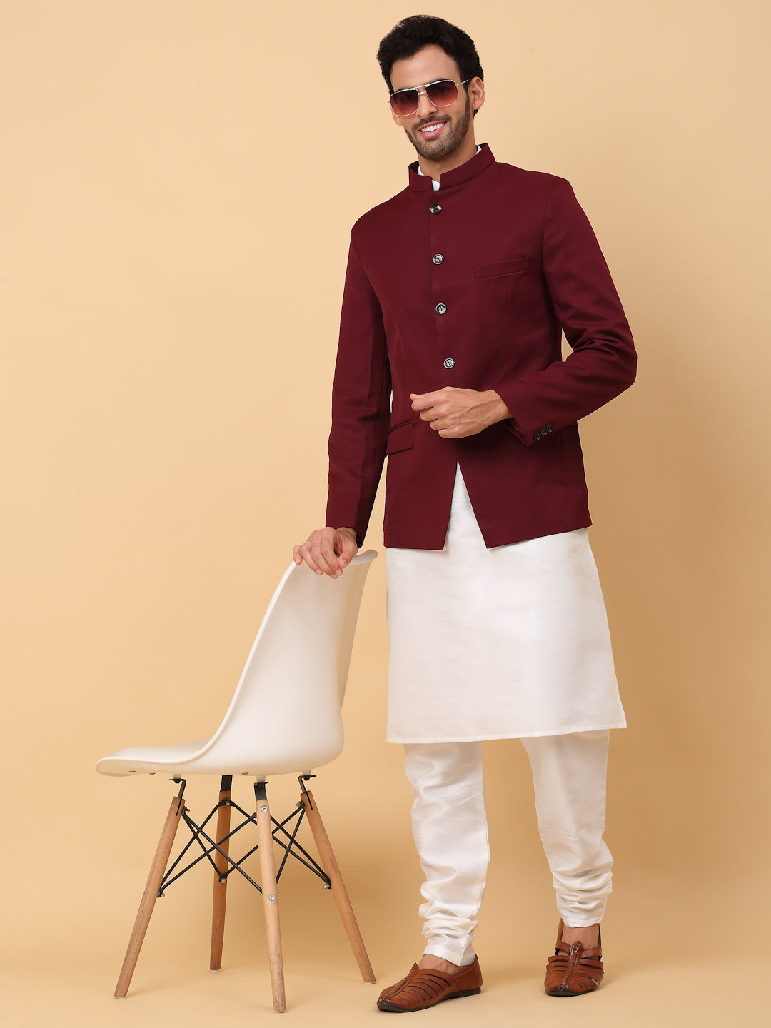 KRAFT INDIA Men's Silk Cream Kurta Churidar With Solid Twill Bandhgala Suit/Coat