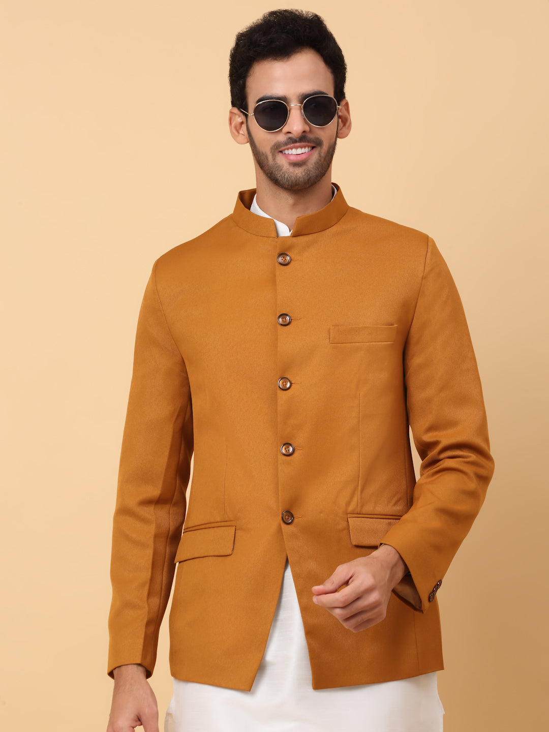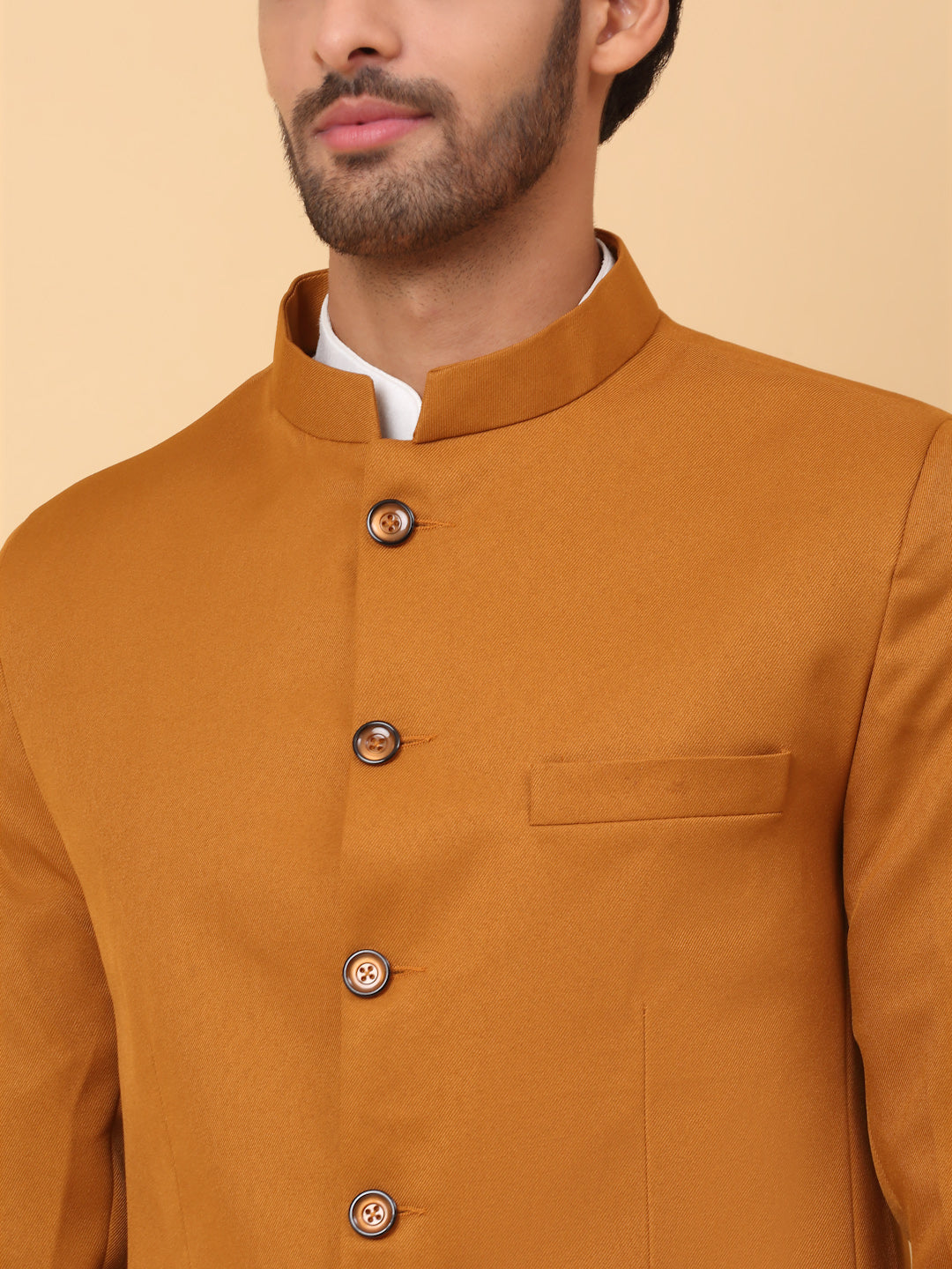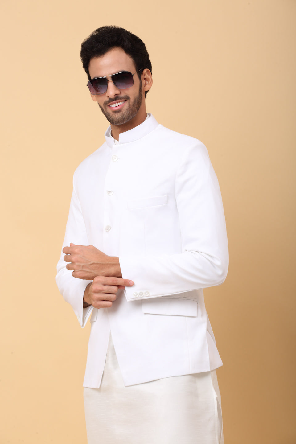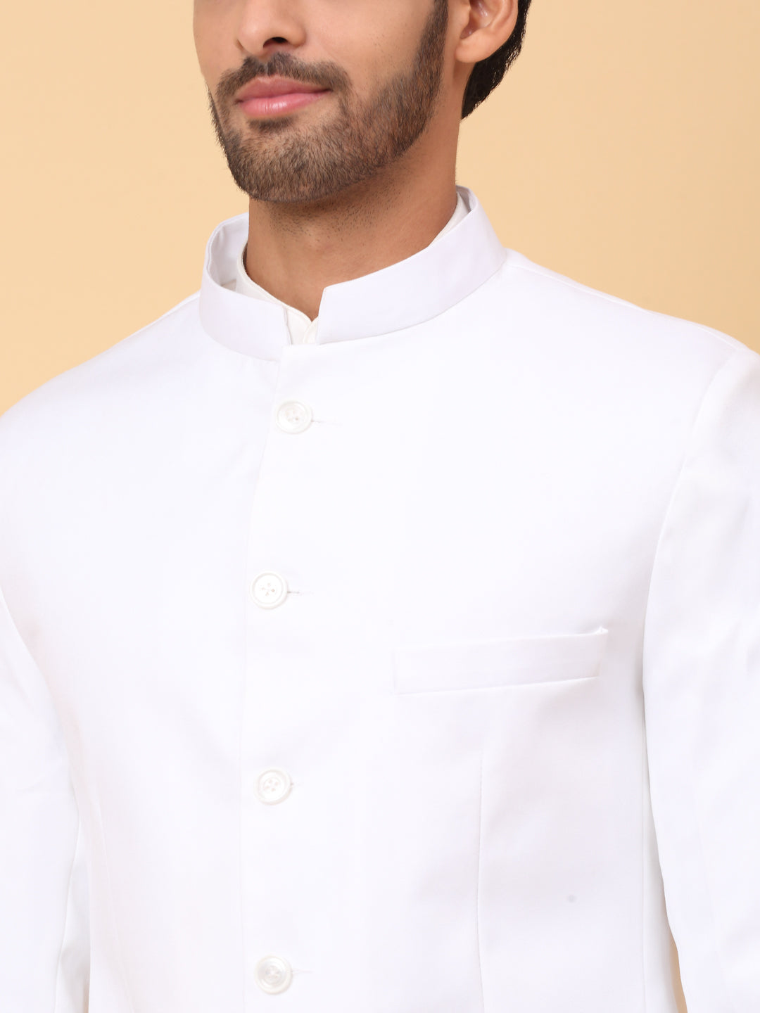 KRAFT INDIA Men's Silk Cream Kurta Churidar With Solid Twill Bandhgala Suit/Coat