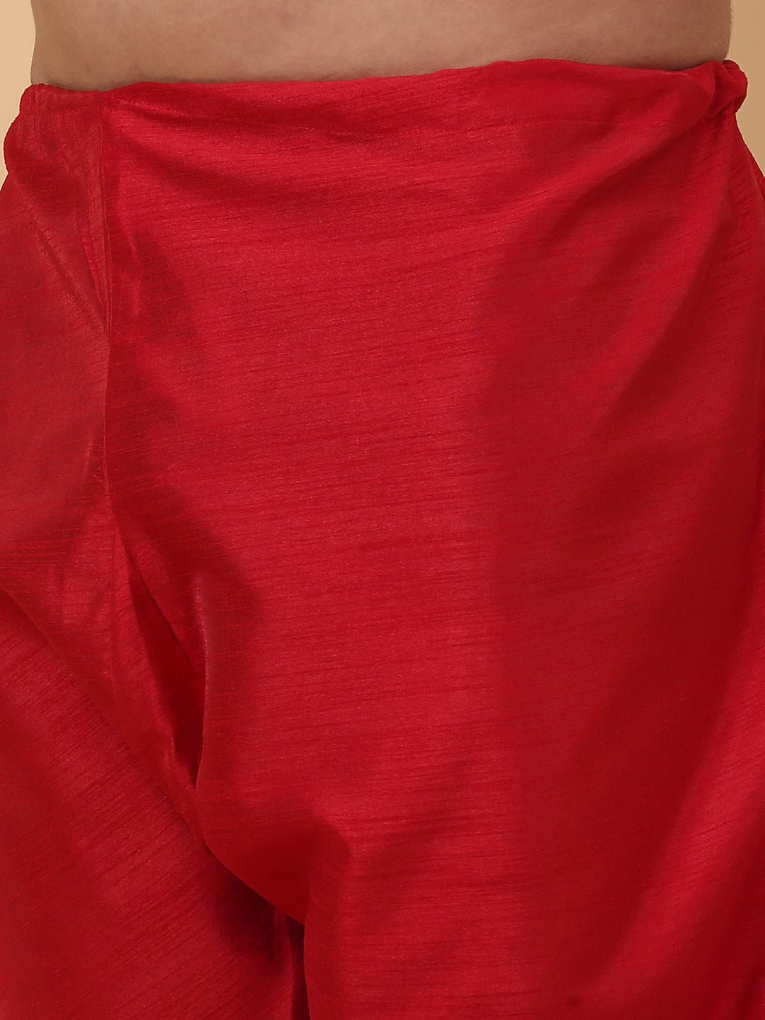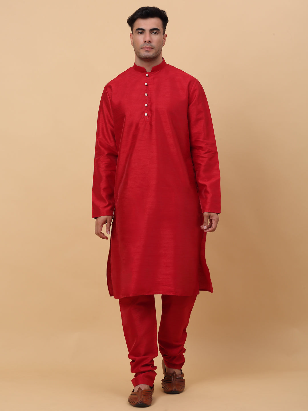 Maroon Solid Kurta & Churidar with Grey Nehru jacket Maroon solid straight knee length kurta has mandarin collar, long sleeves, side pockets, straight hem, loopi button closure, side slits, with drawstring closure Maroon churidar Striped Grey Nehru jacket, has a mandarin collar, sleeveless, button closure, three pockets, an attached lining