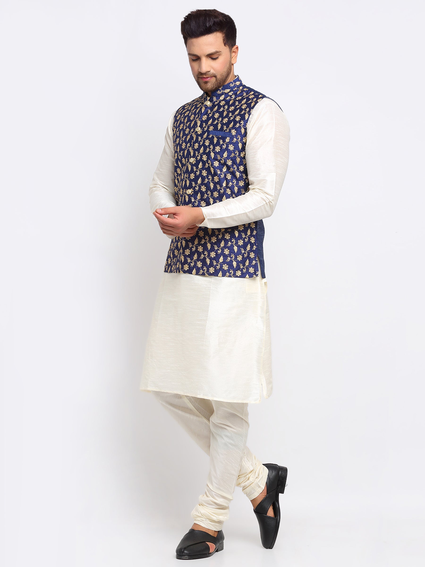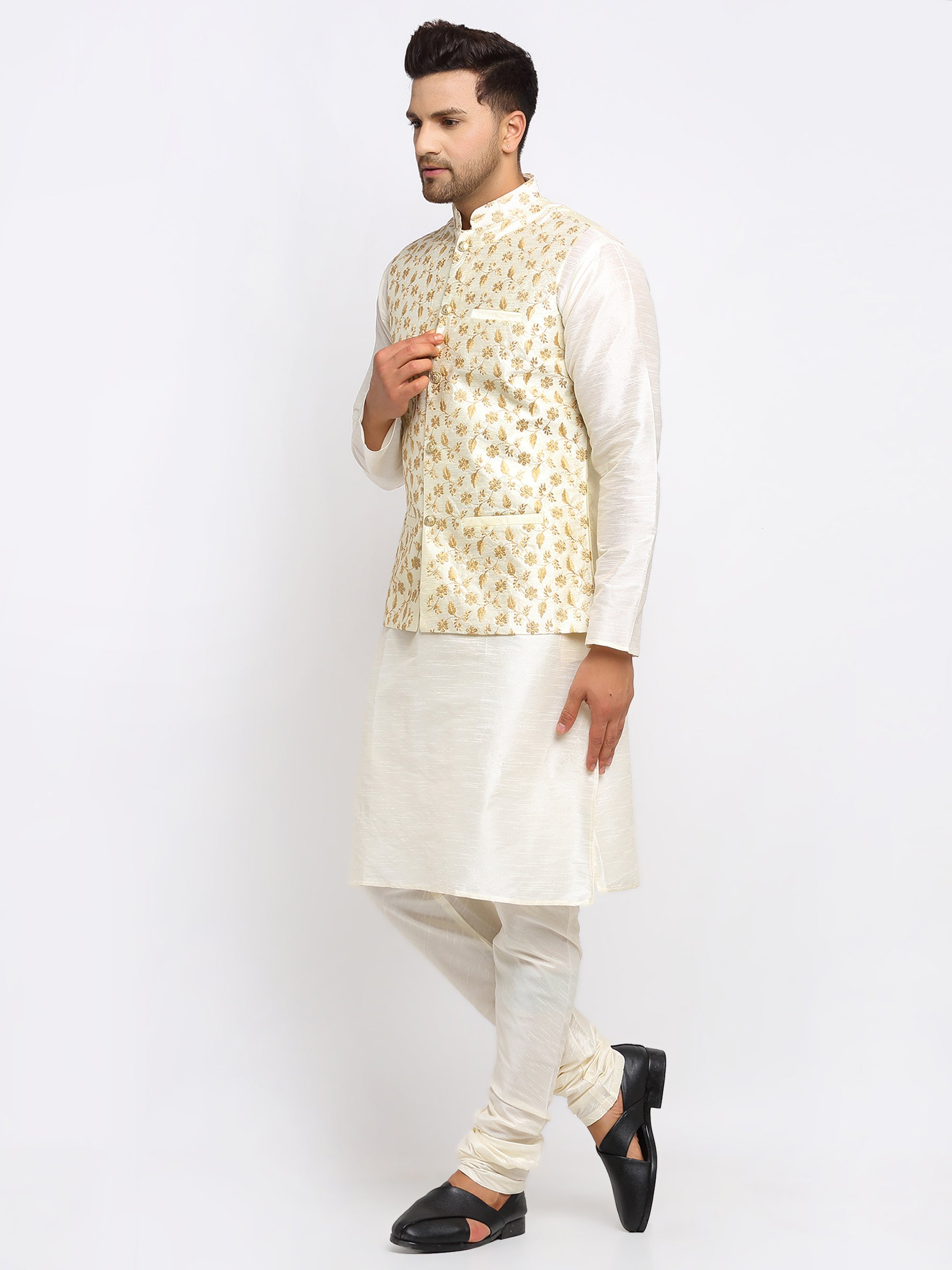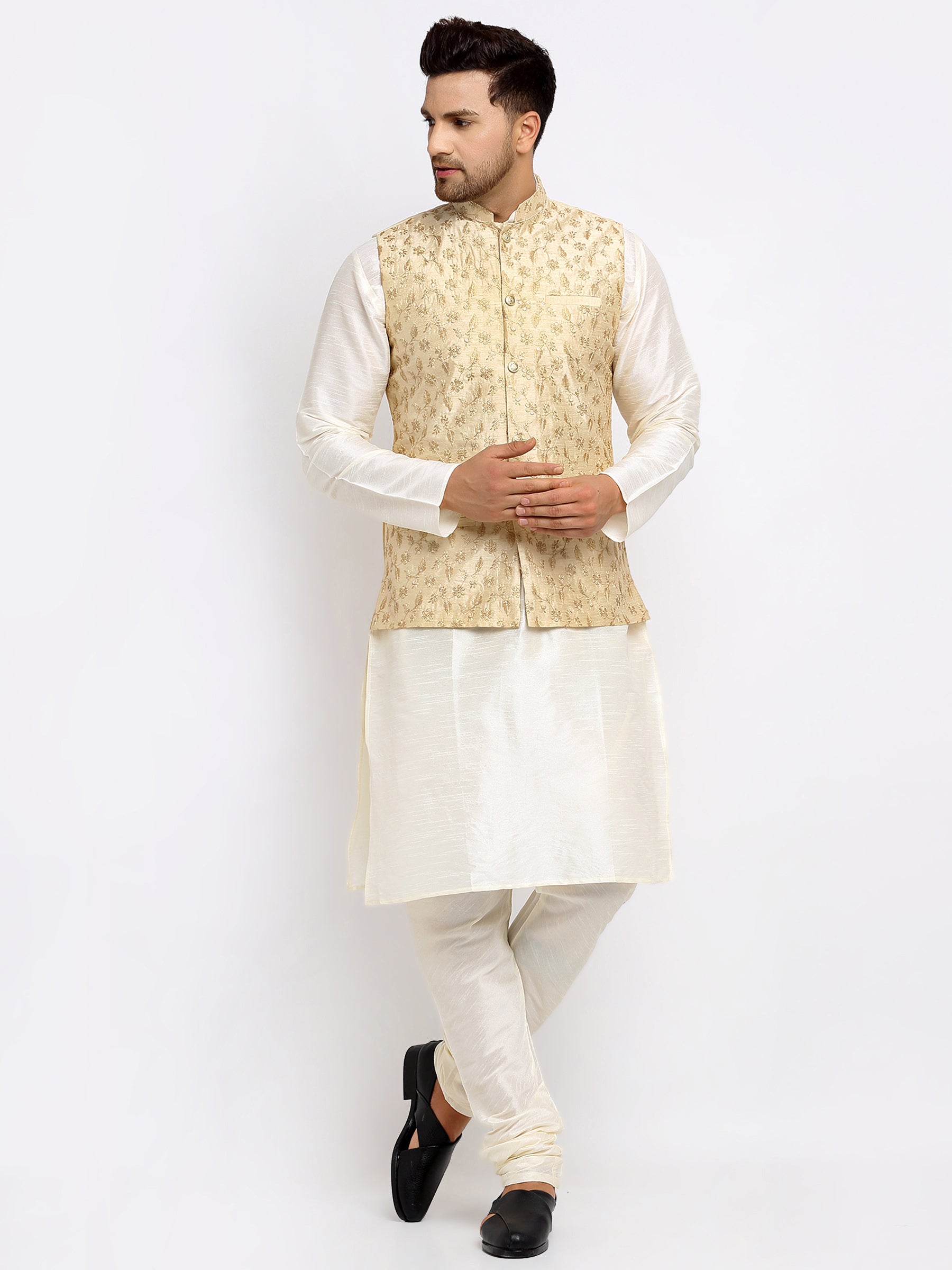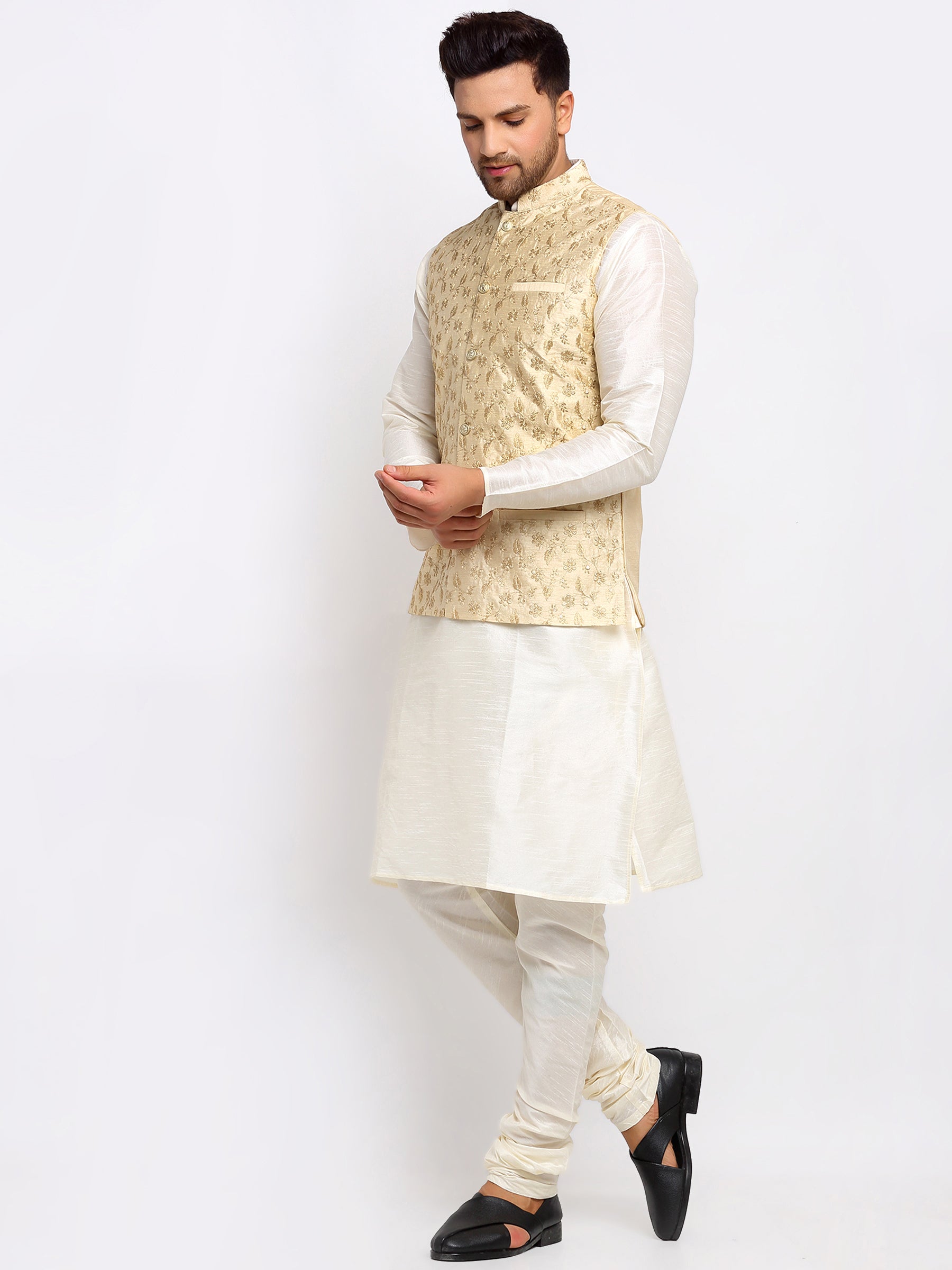 KRAFT INDIA Mens Cream Kurta and churidar with embroided Zari Nehru jacket