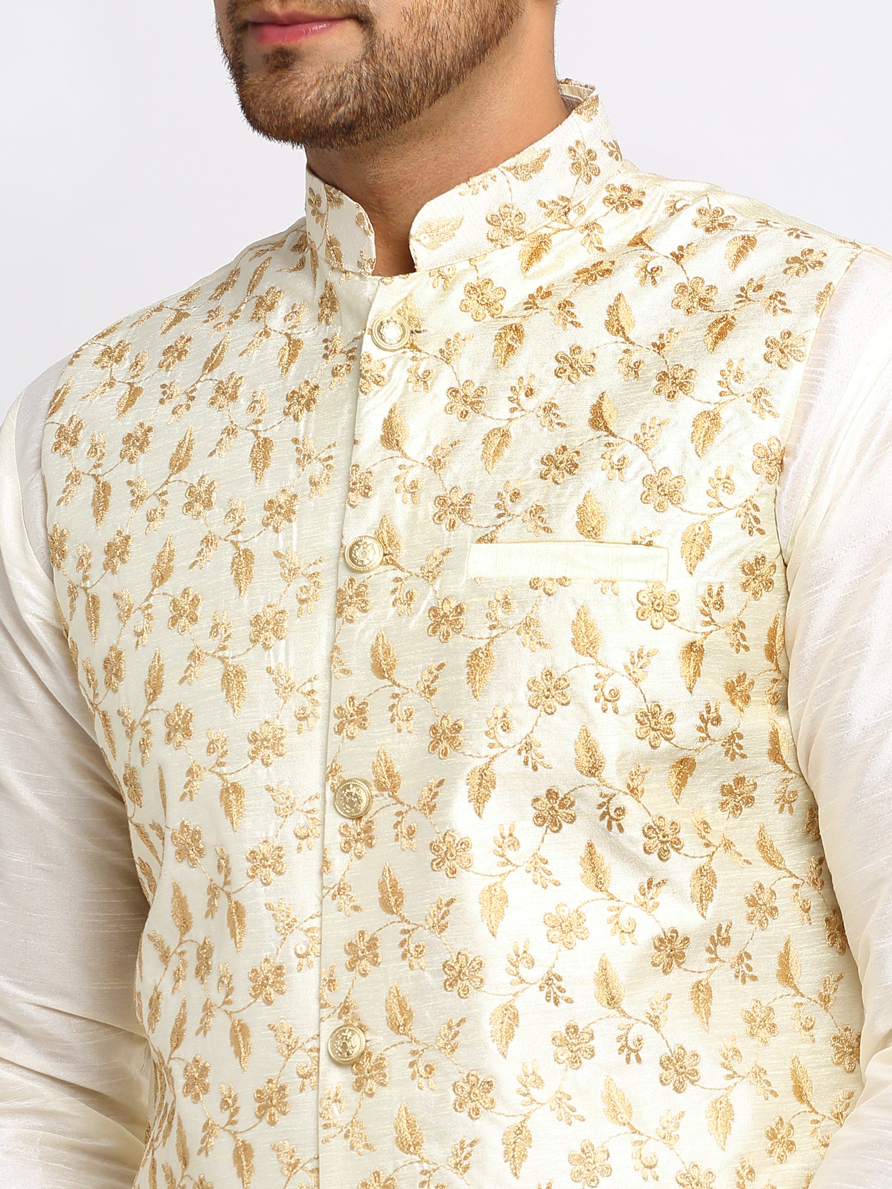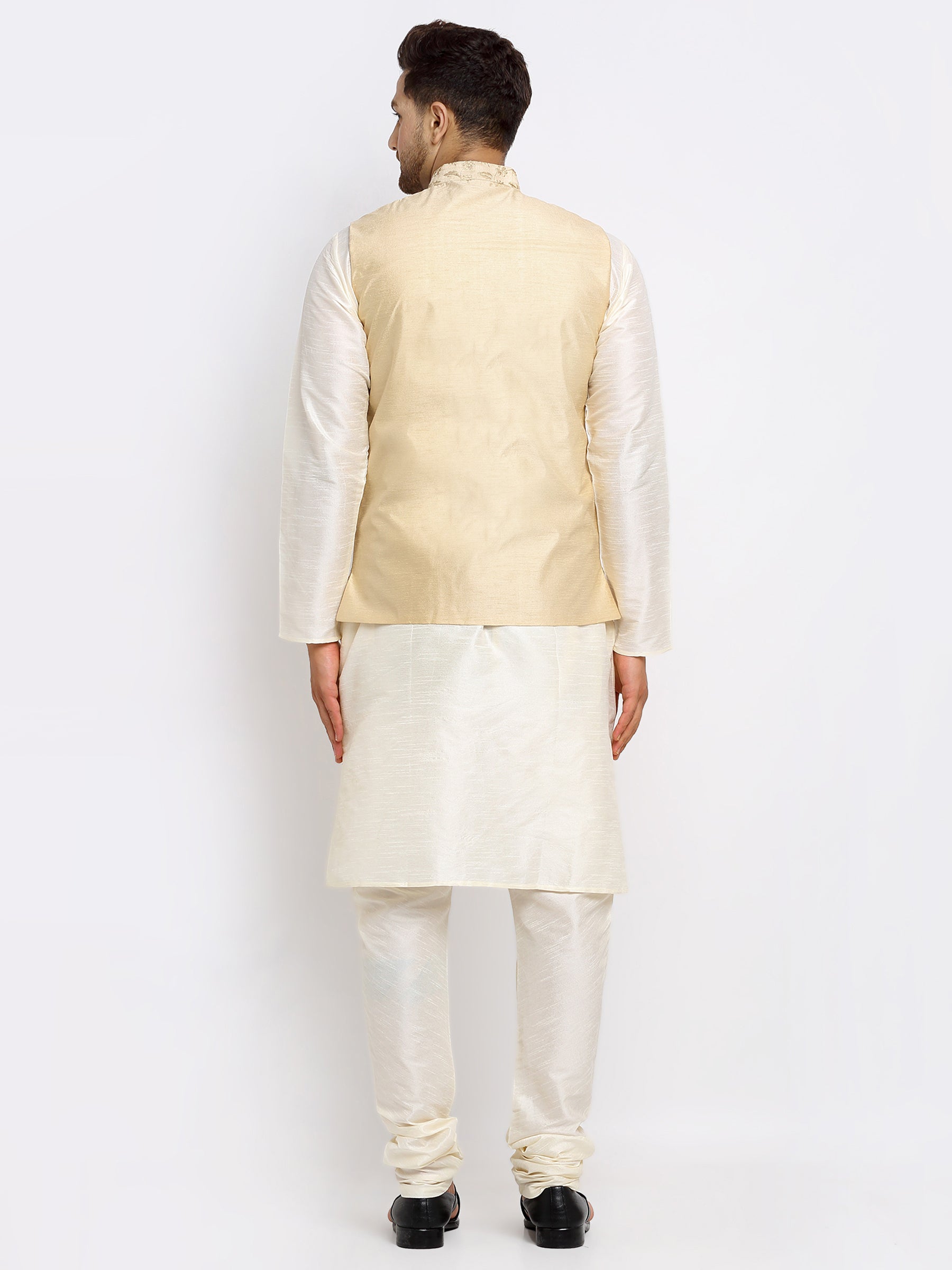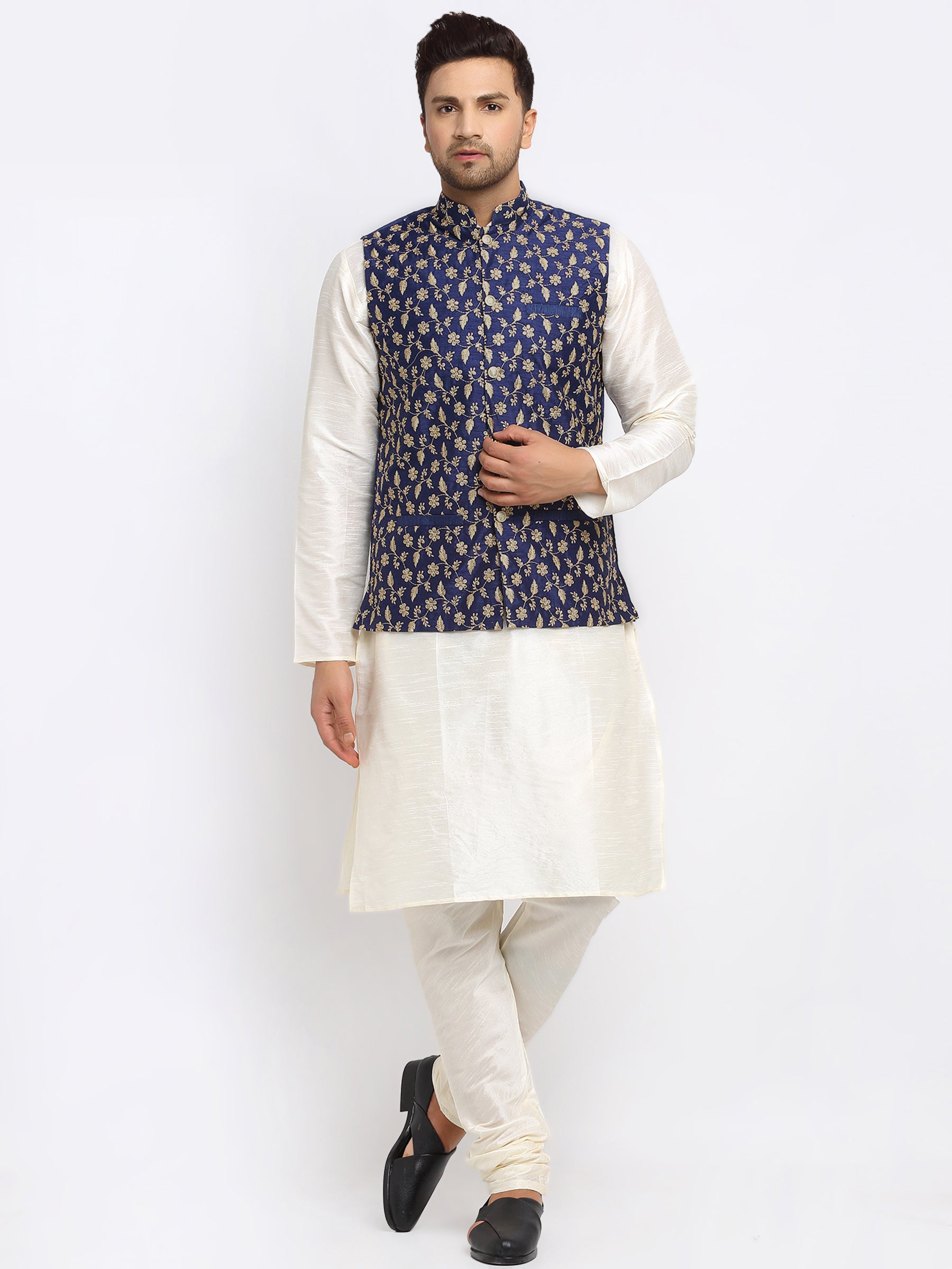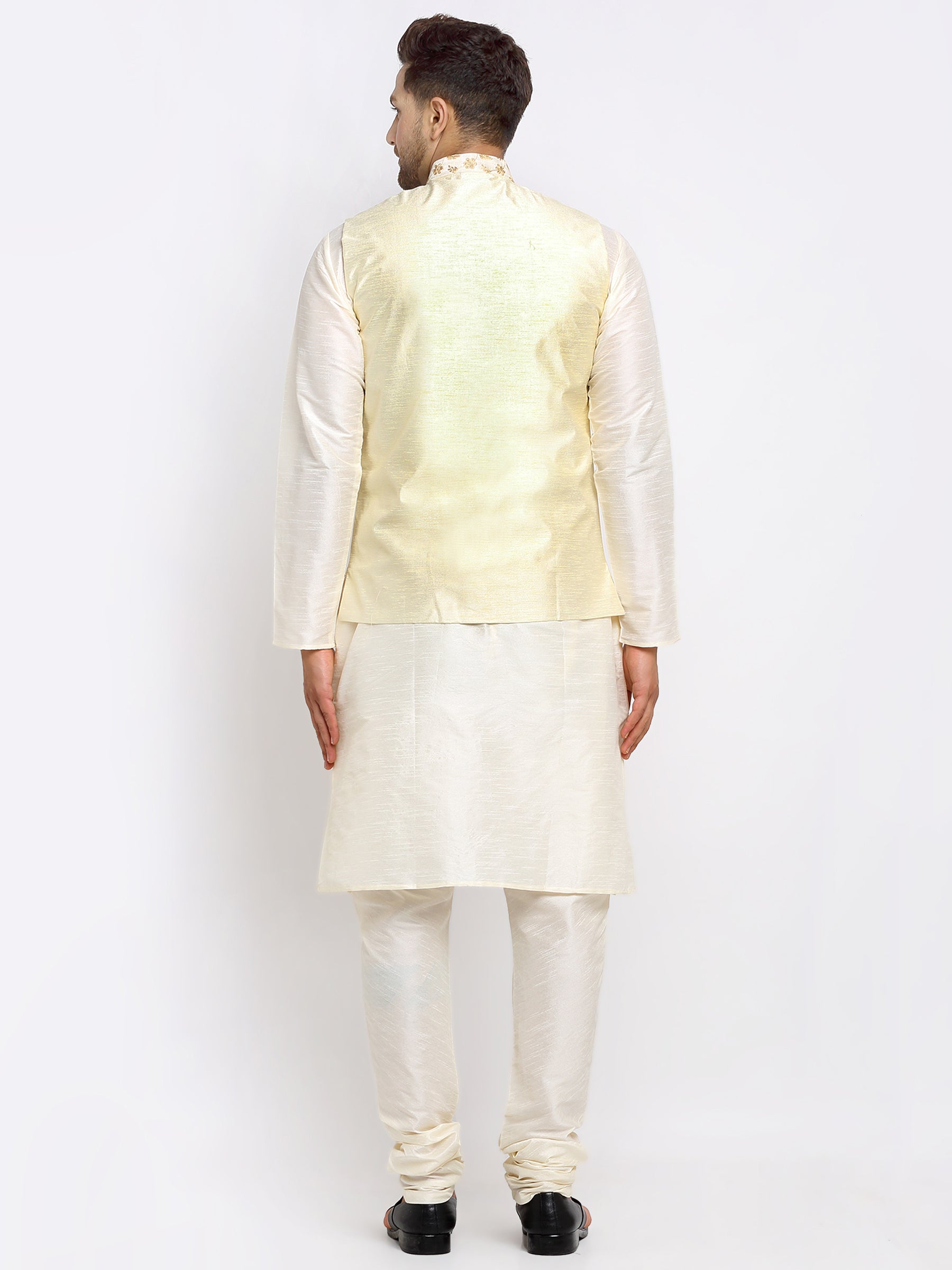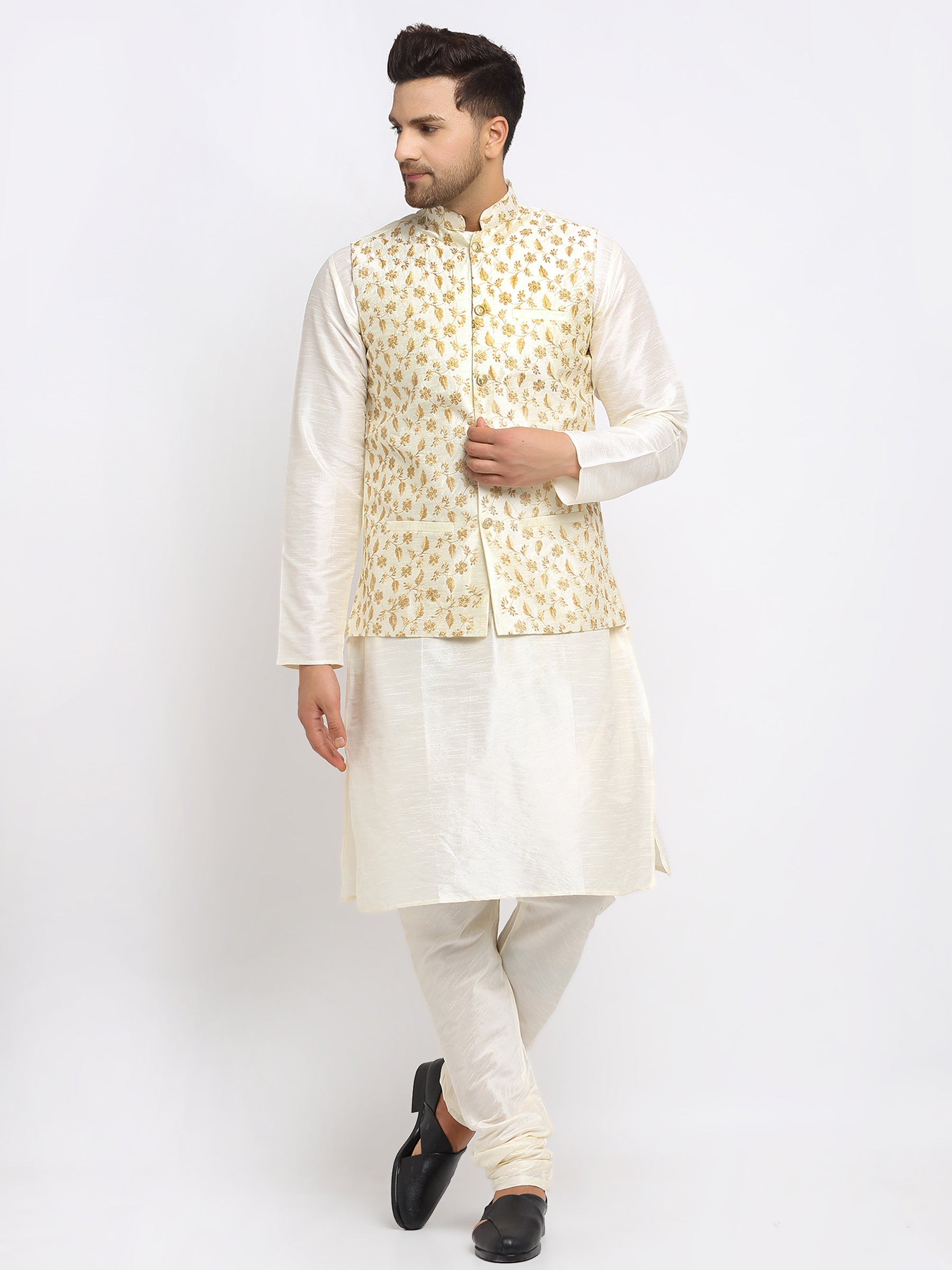 KRAFT INDIA Mens Cream Kurta and churidar with embroided Zari Nehru jacket