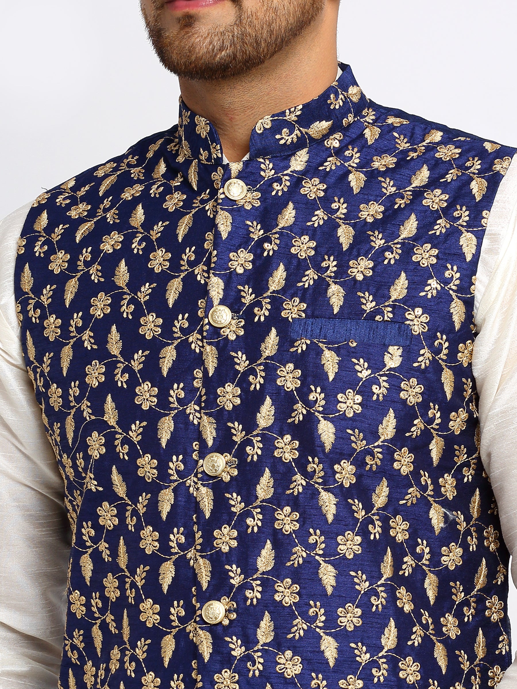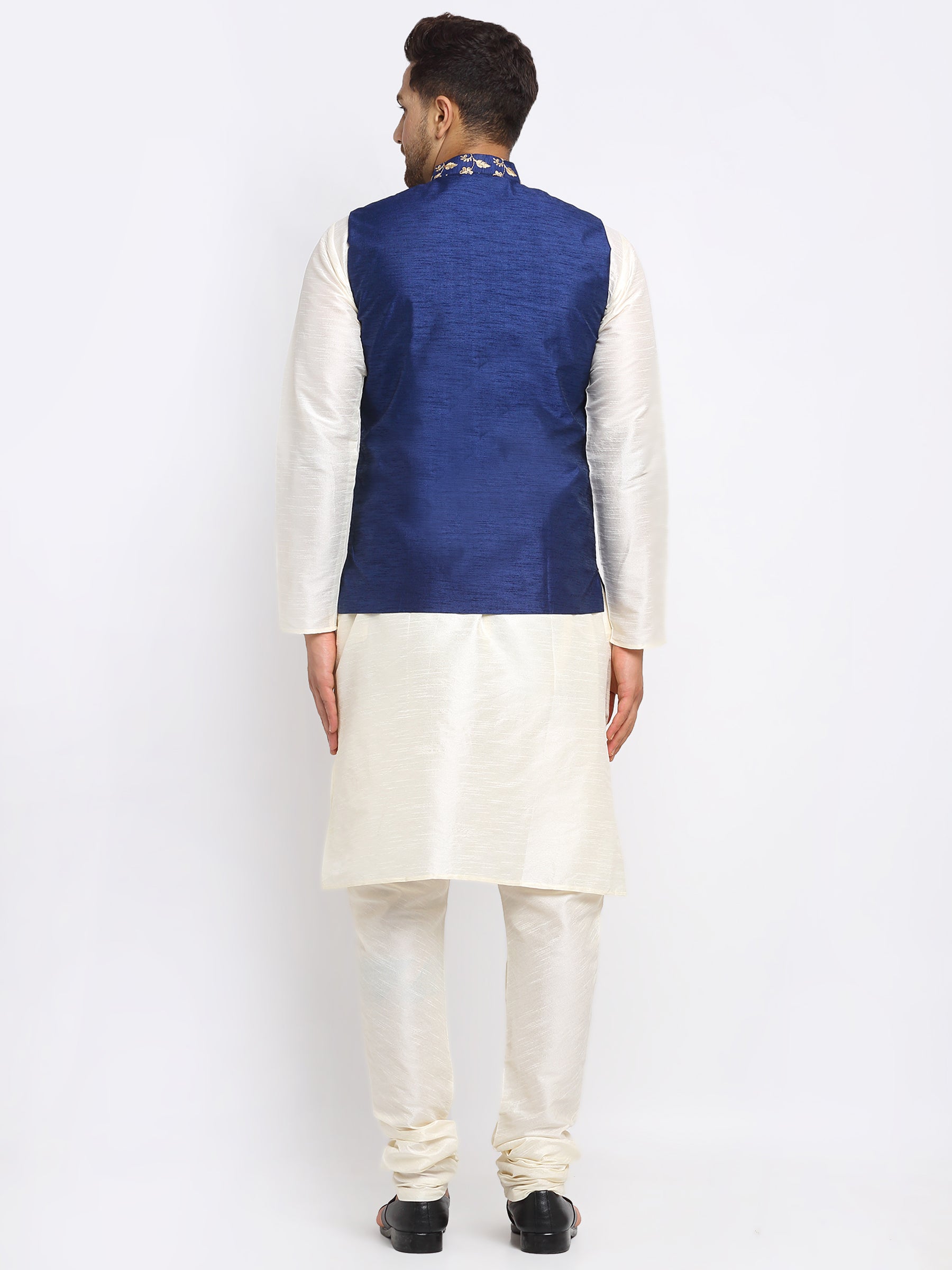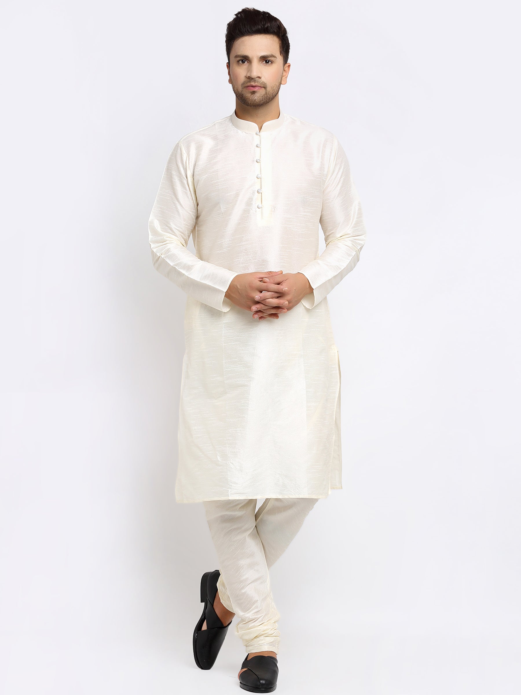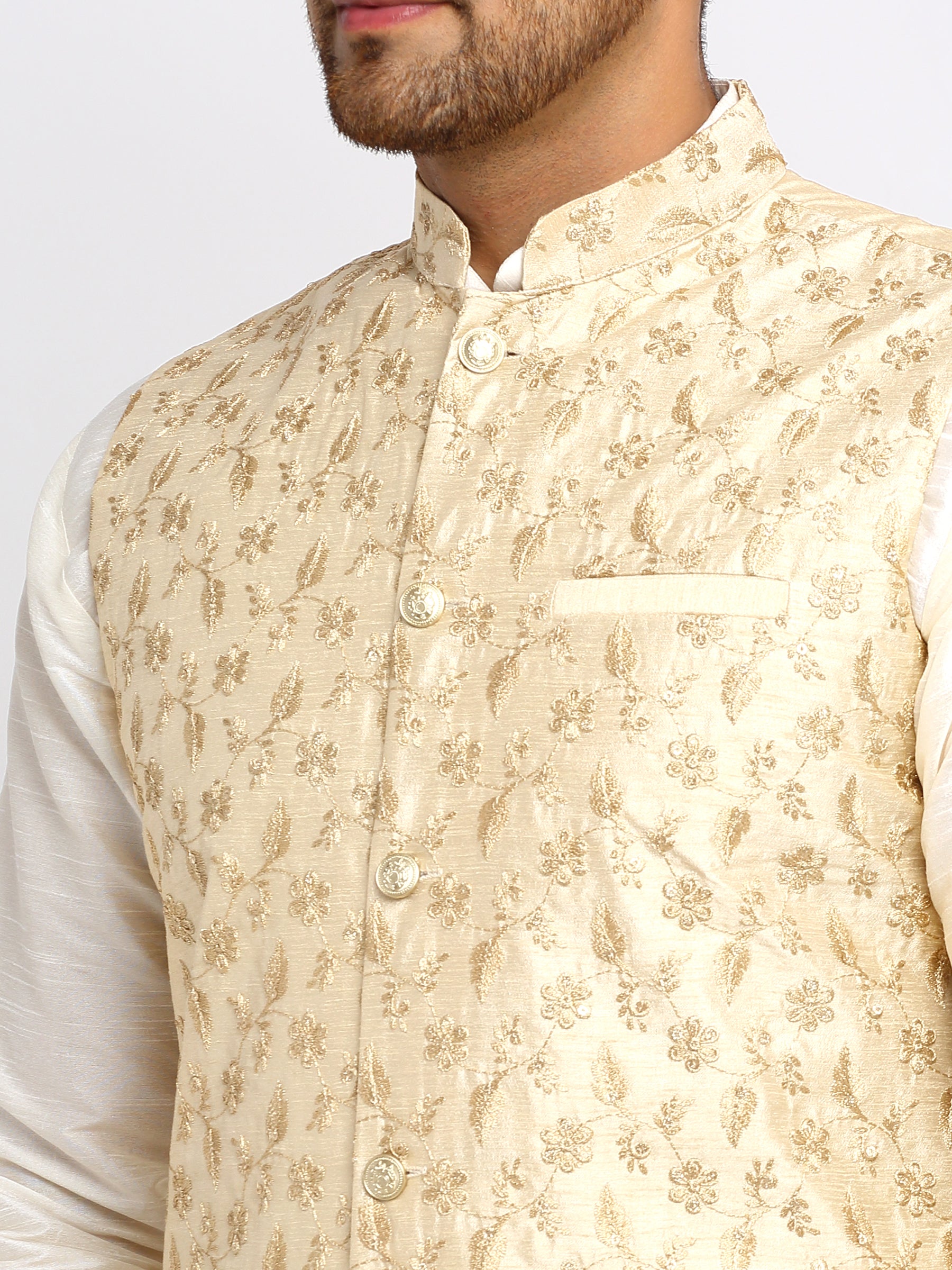KRAFT INDIA Mens Cream Kurta and churidar with embroided Zari Nehru jacket