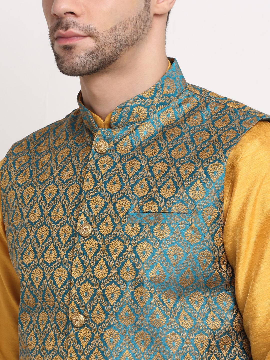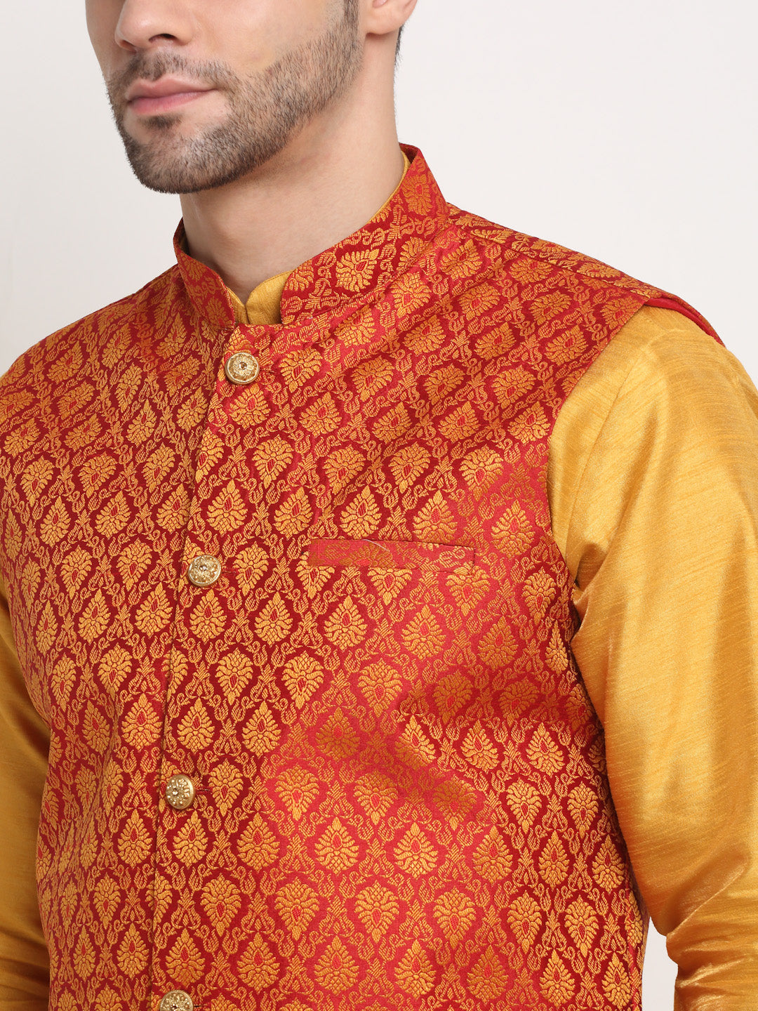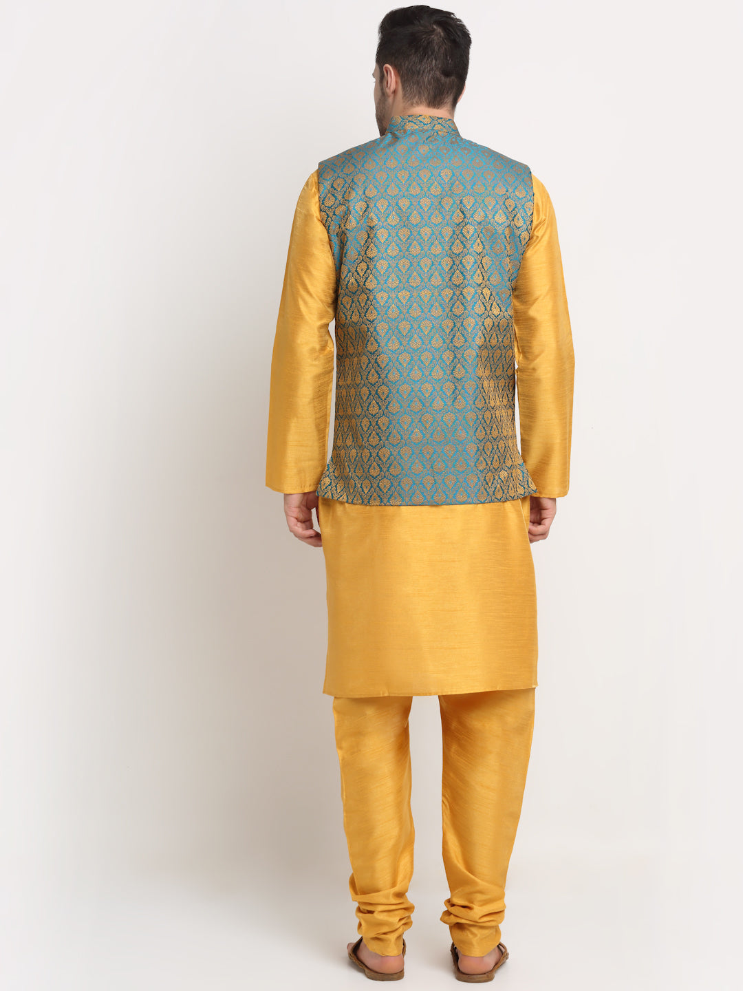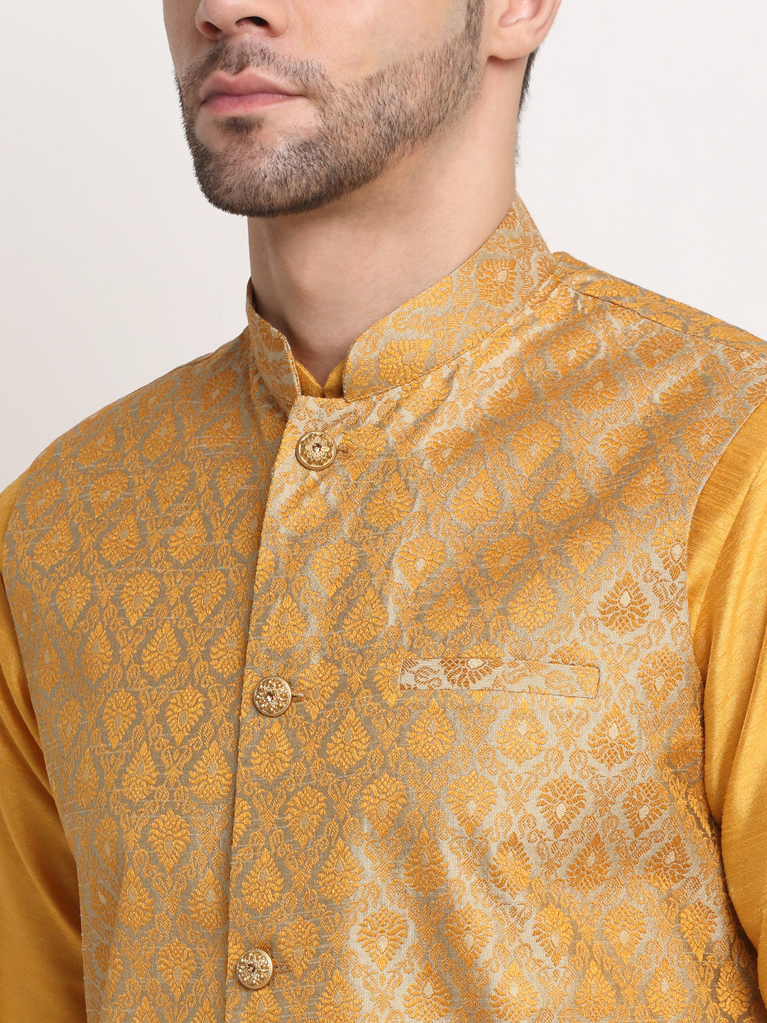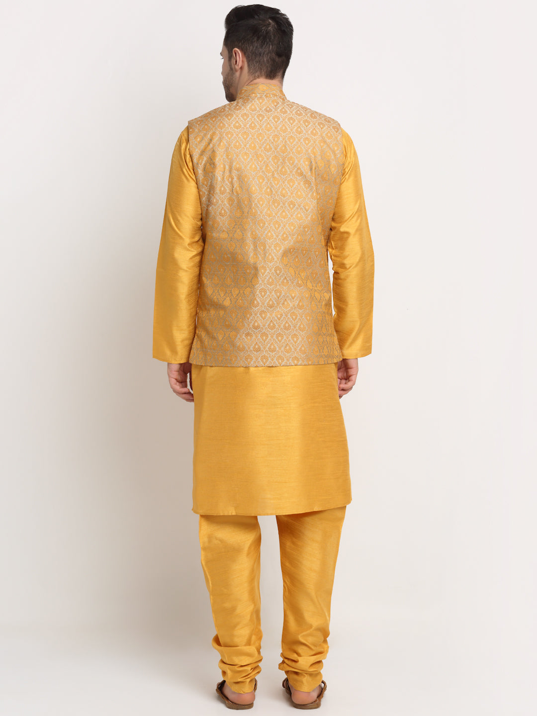 KRAFT INDIA Mens Mustard Silk Blend Kurta and churidar with Paisley Nehru jacket