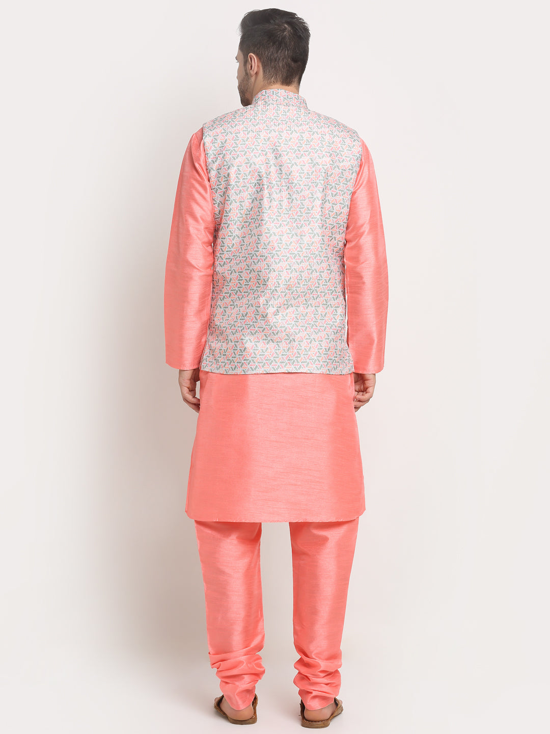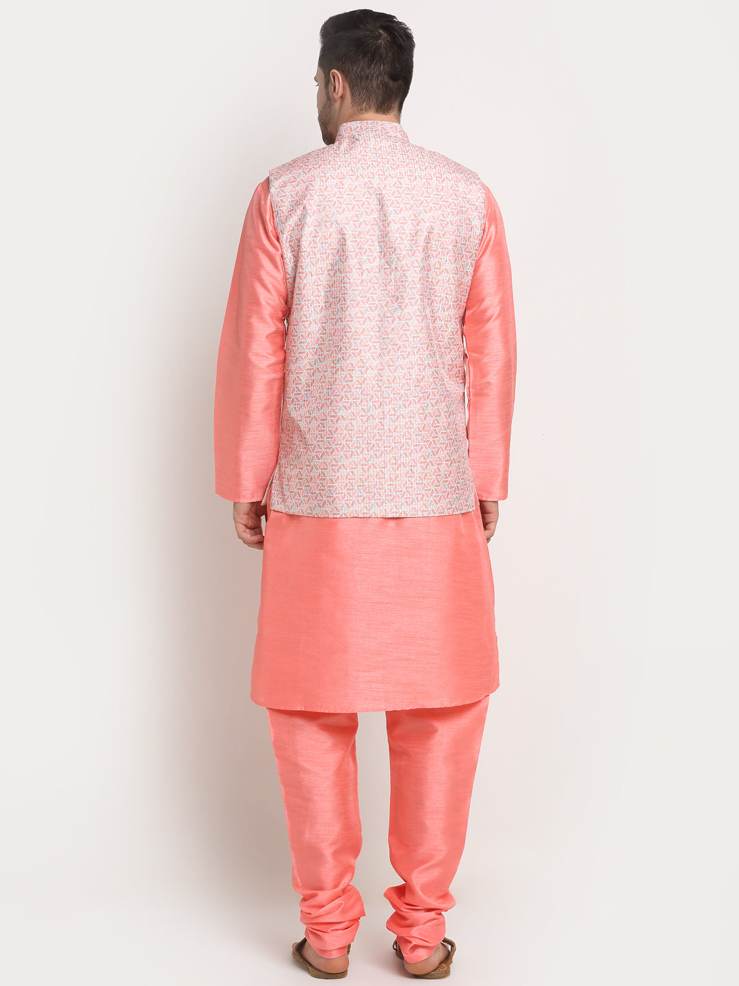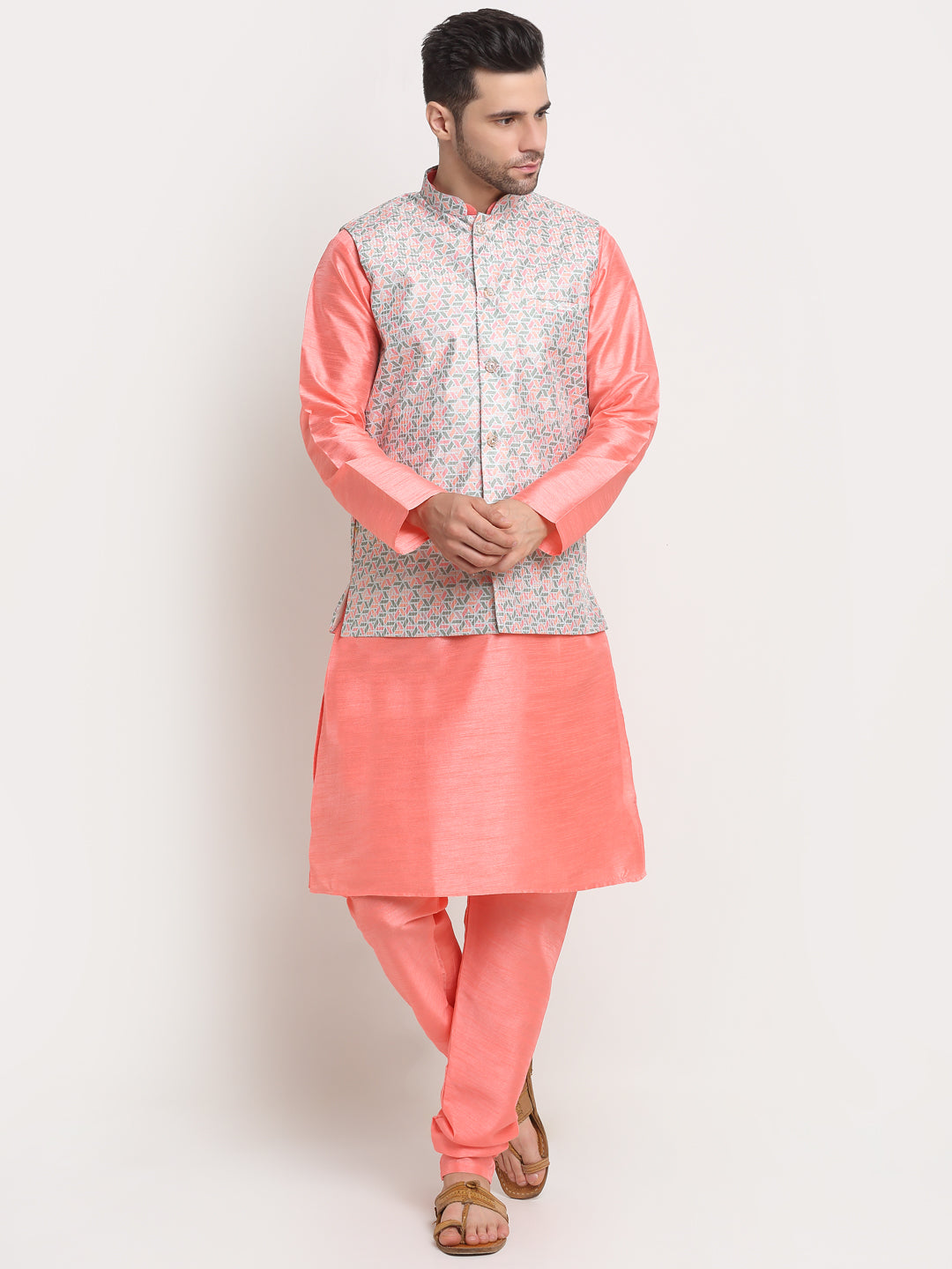 KRAFT INDIA Mens Pink Silk Blend Kurta and churidar with embroided Nehru jacket