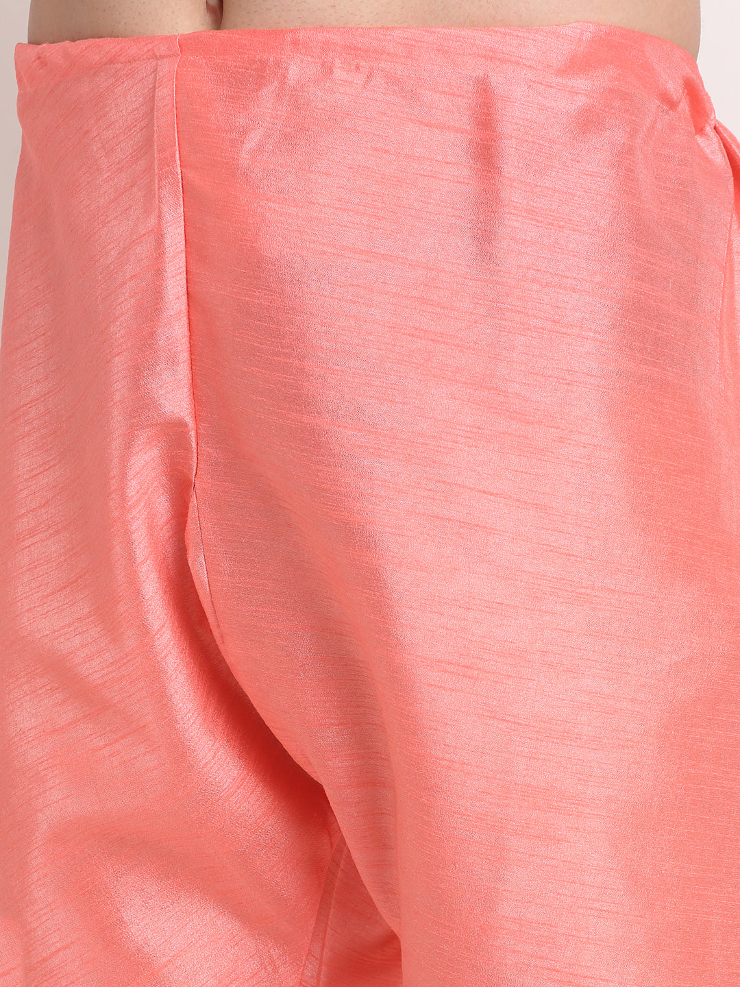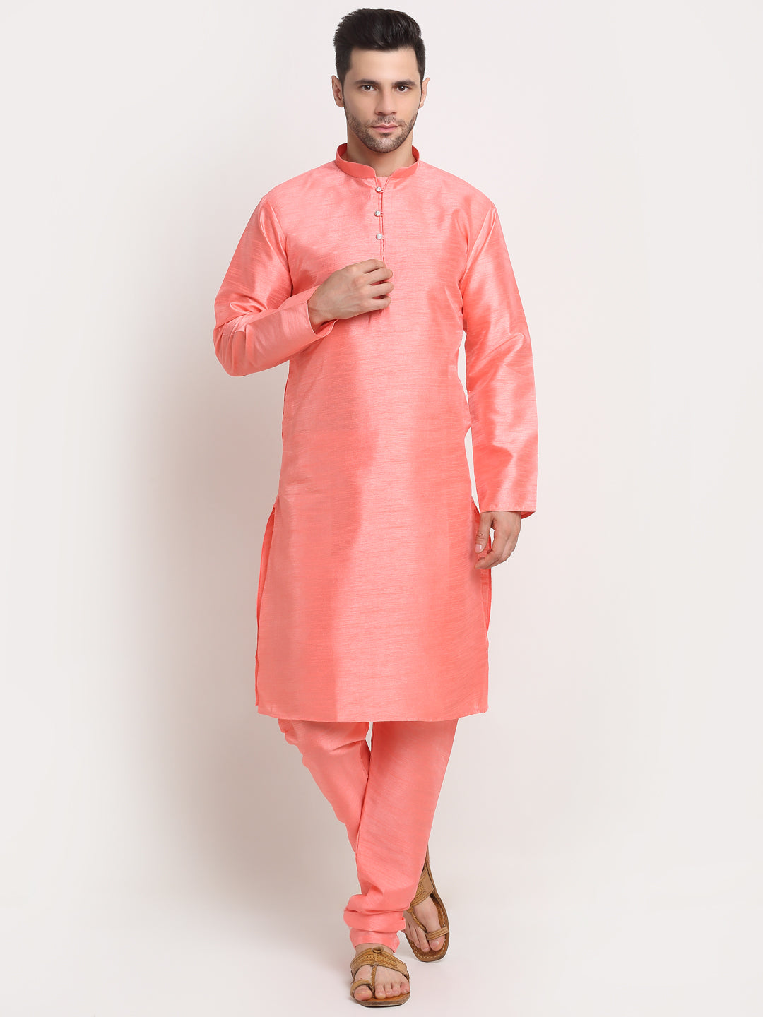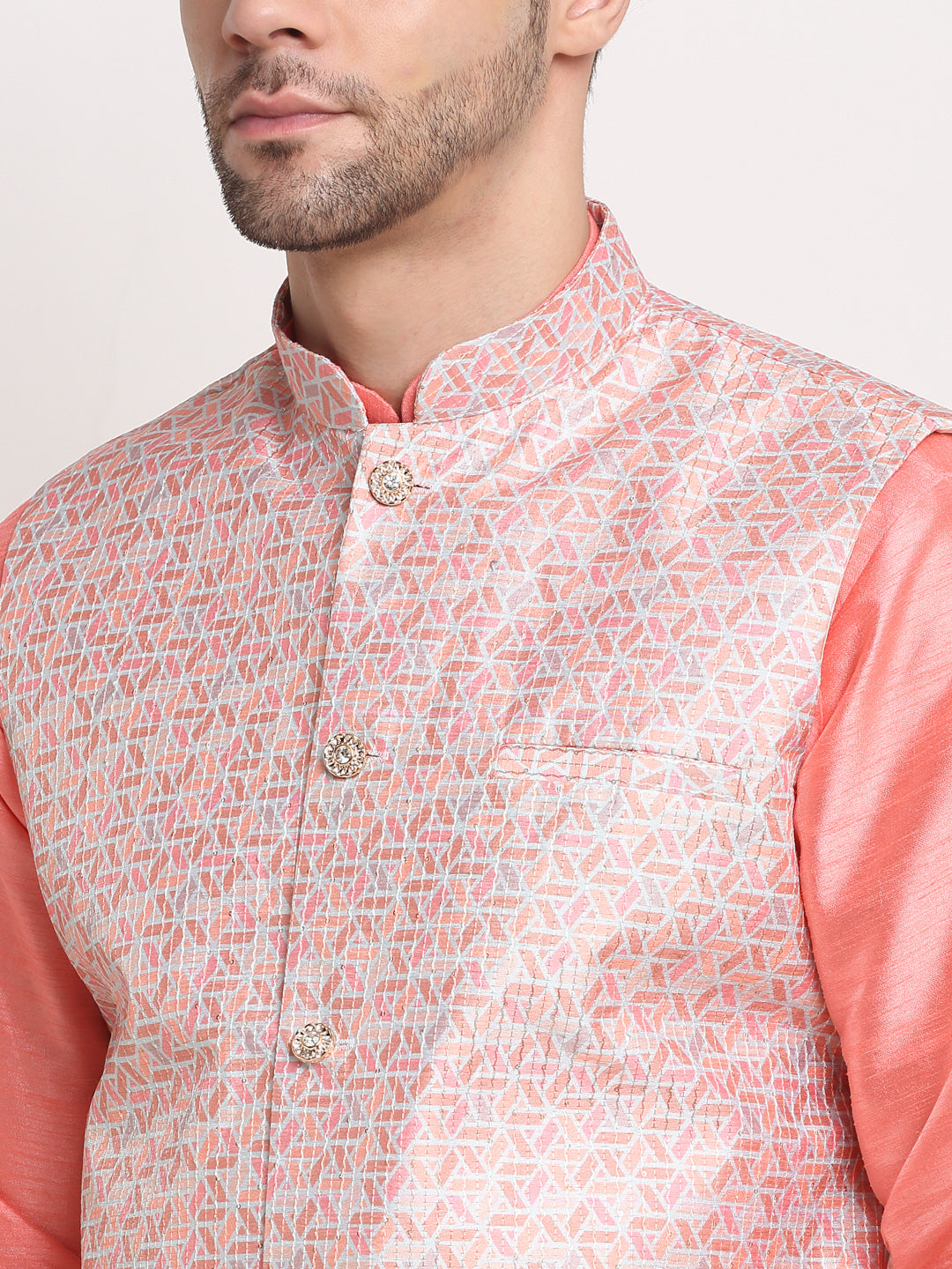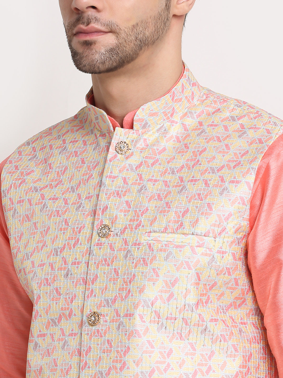 KRAFT INDIA Mens Pink Silk Blend Kurta and churidar with embroided Nehru jacket