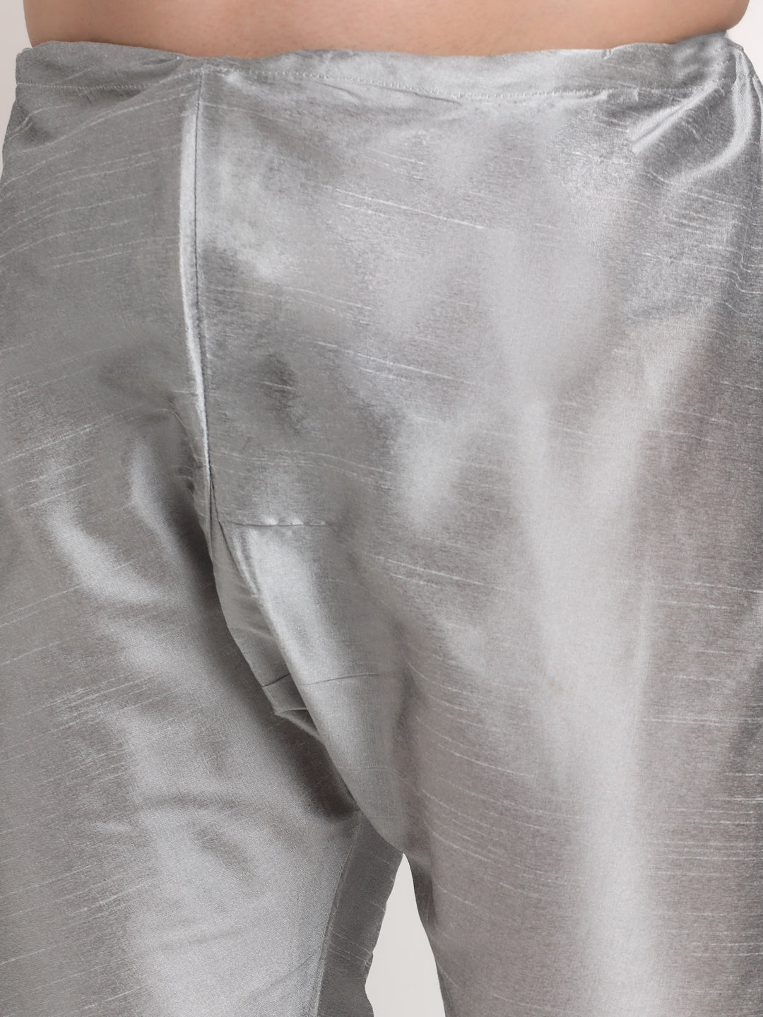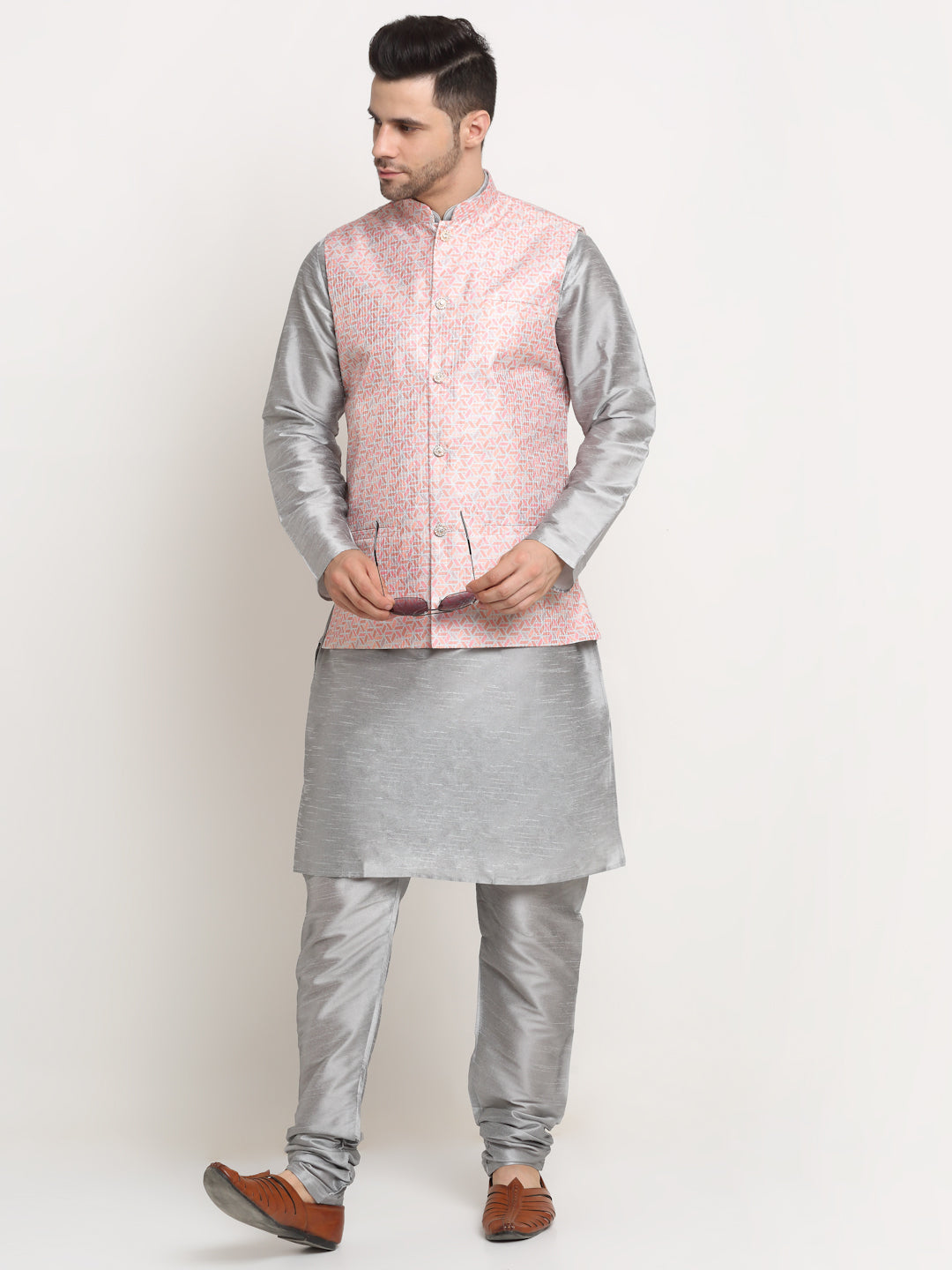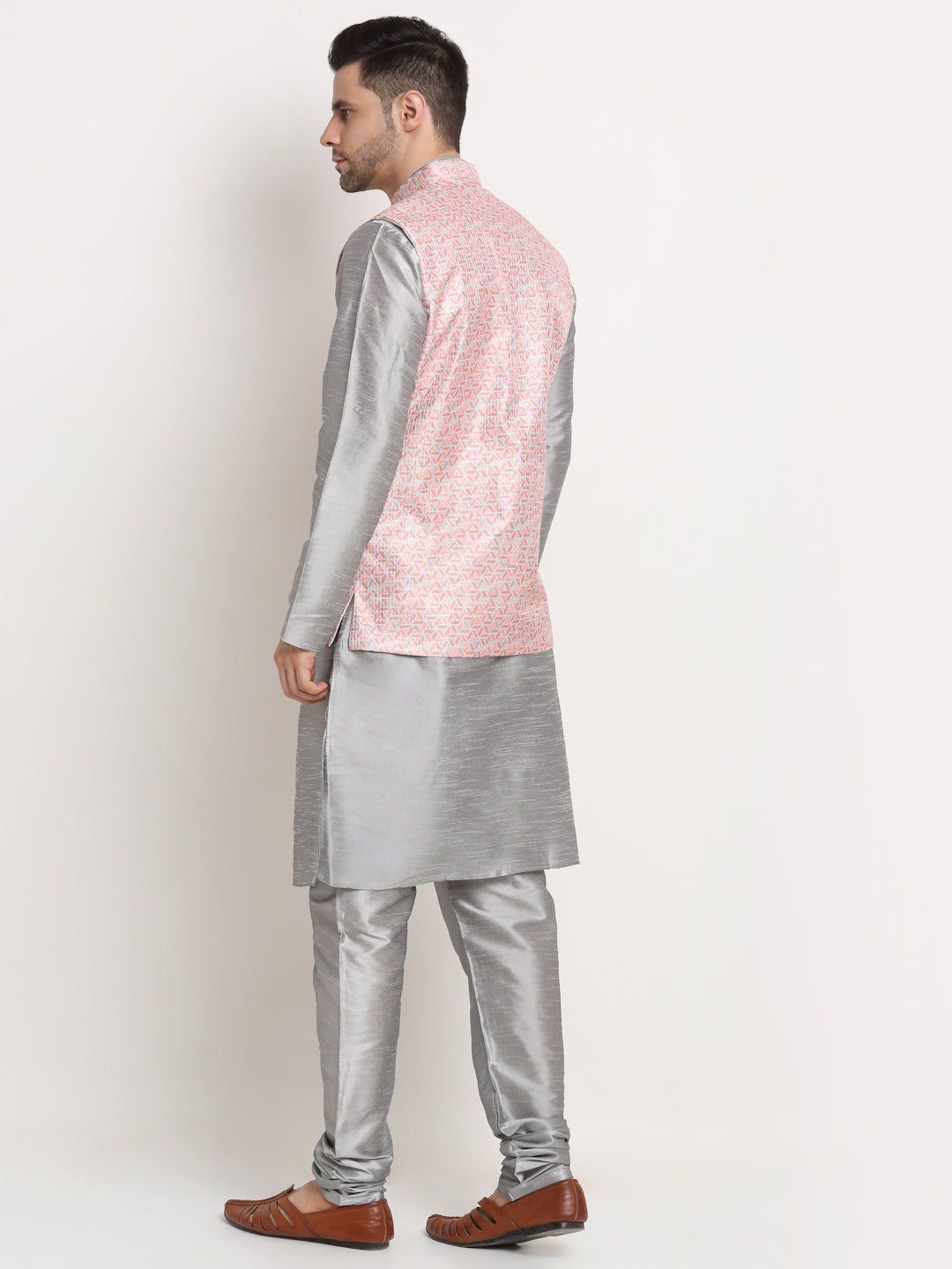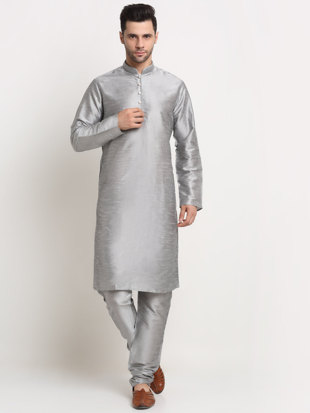KRAFT INDIA Mens Silver Silk Blend Kurta and churidar with embroided Nehru jacket
