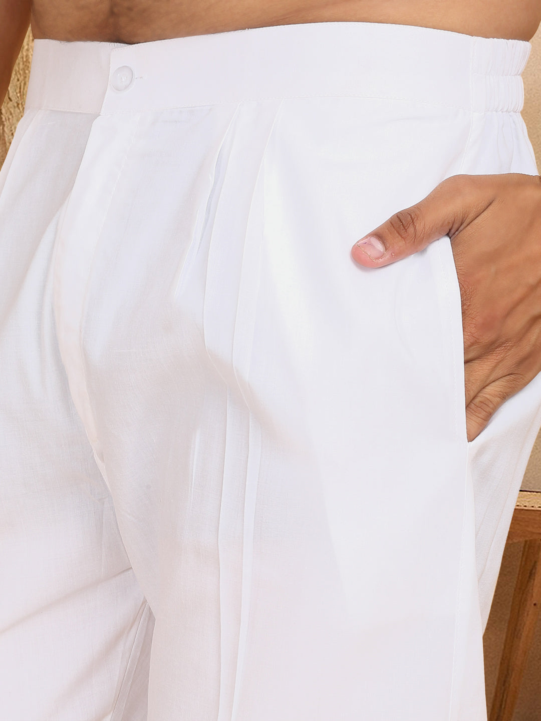 LUXE- Cotton Silk Ethnic Motifs White Embroidered Mandarin Collar Long Sleeve Kurta Trouser Set