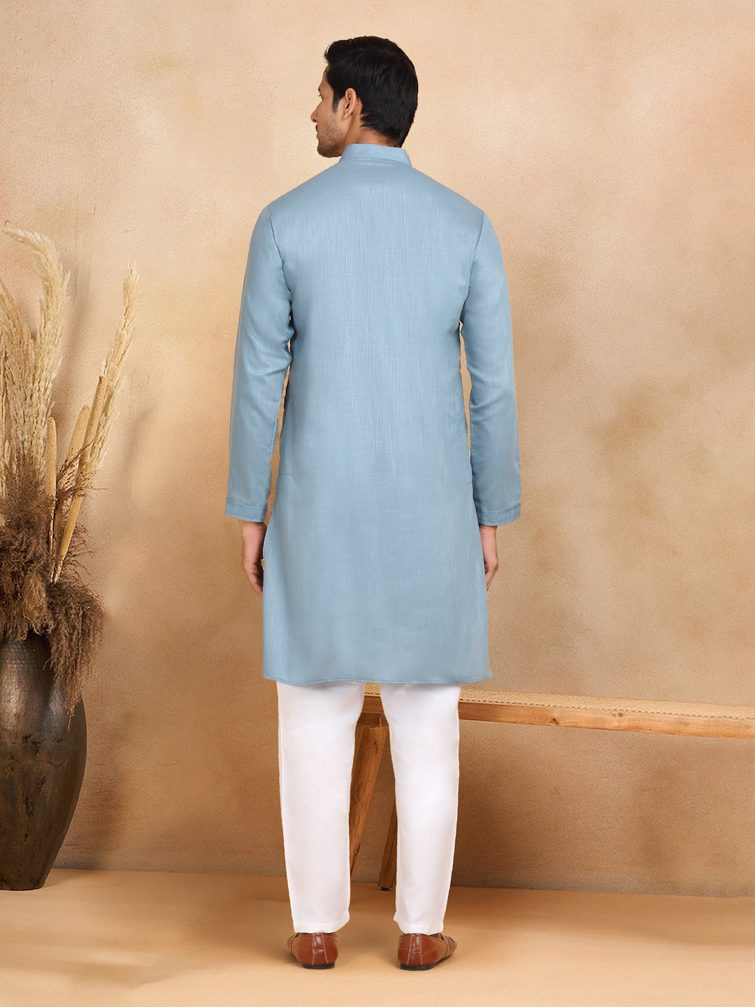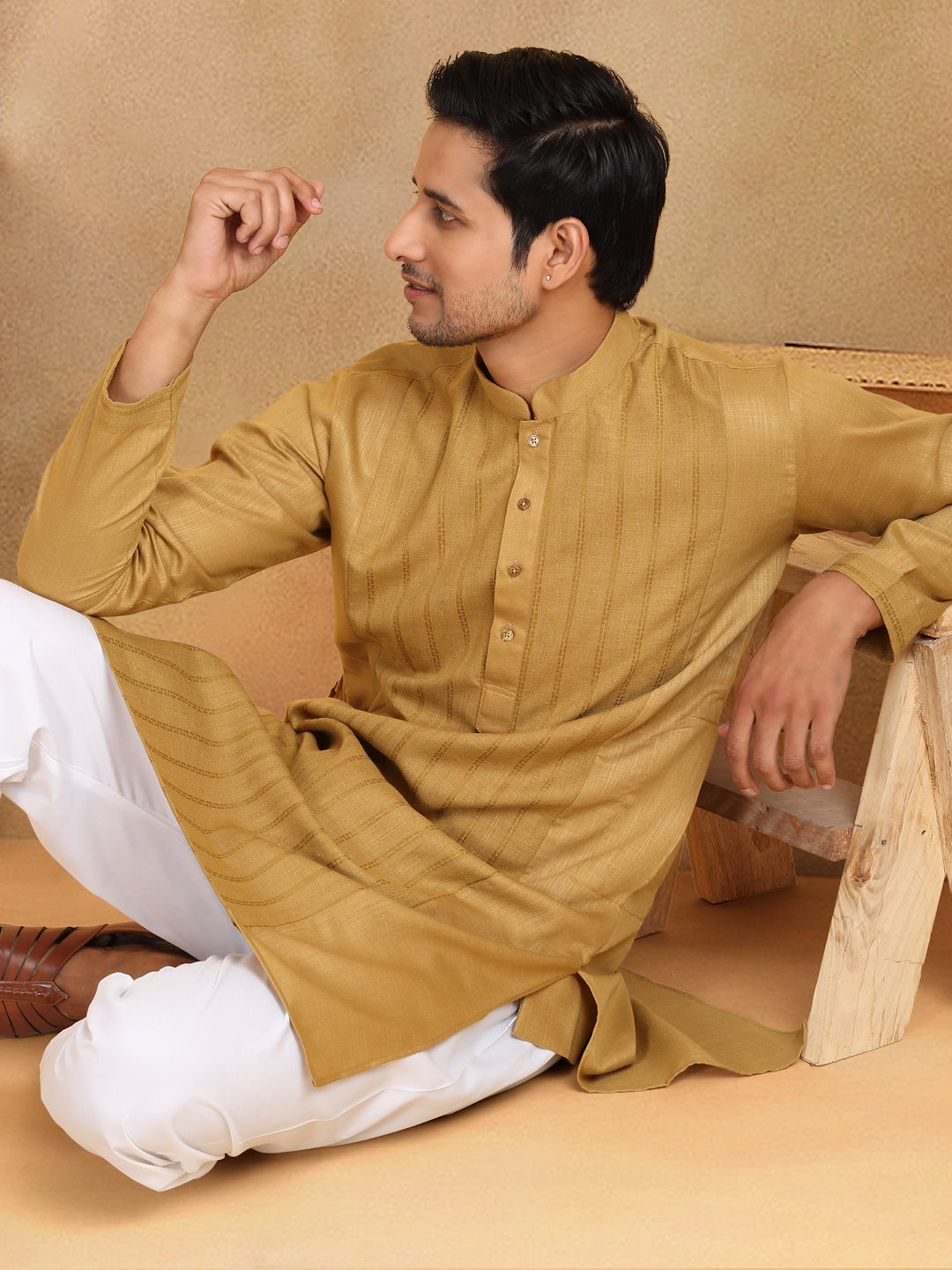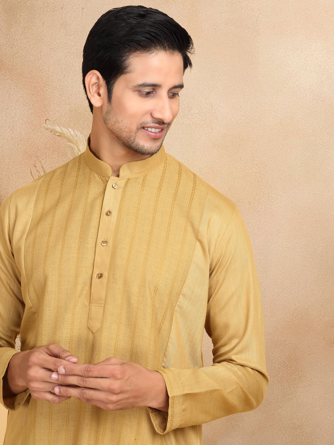 Elevate your ethnic wardrobe with our Men's Regular Striped Mandarin Collar Long Sleeve Kurta Pyjama Set. This sophisticated ensemble features a contemporary striped design that adds a touch of modernity to classic attire. Crafted from high-quality fabric, the kurta ensures comfort and breathability, making it perfect for festive occasions or casual gatherings.