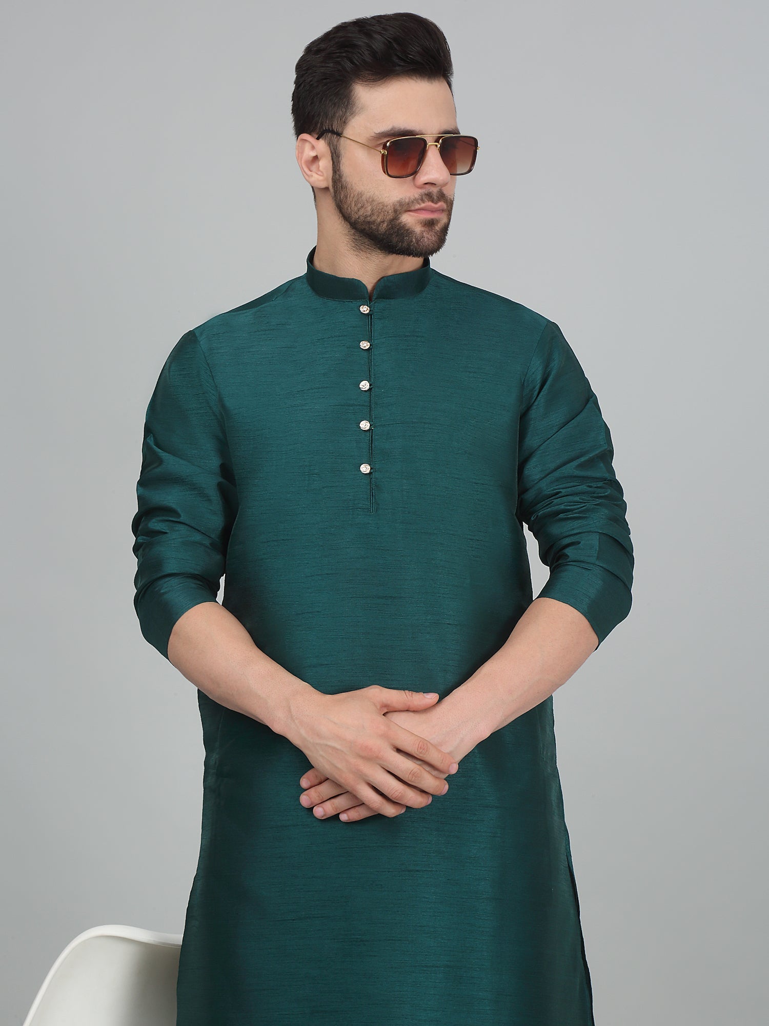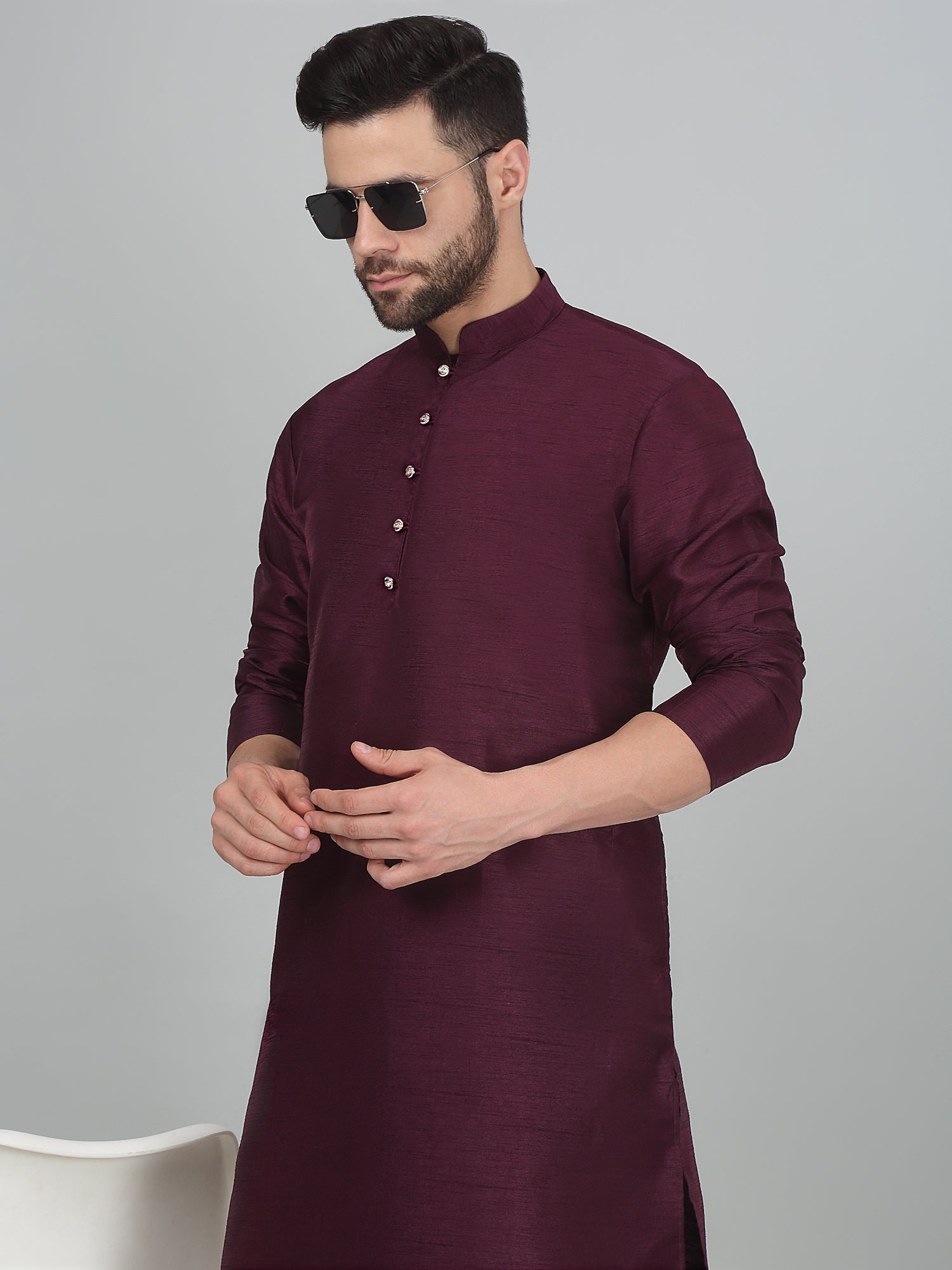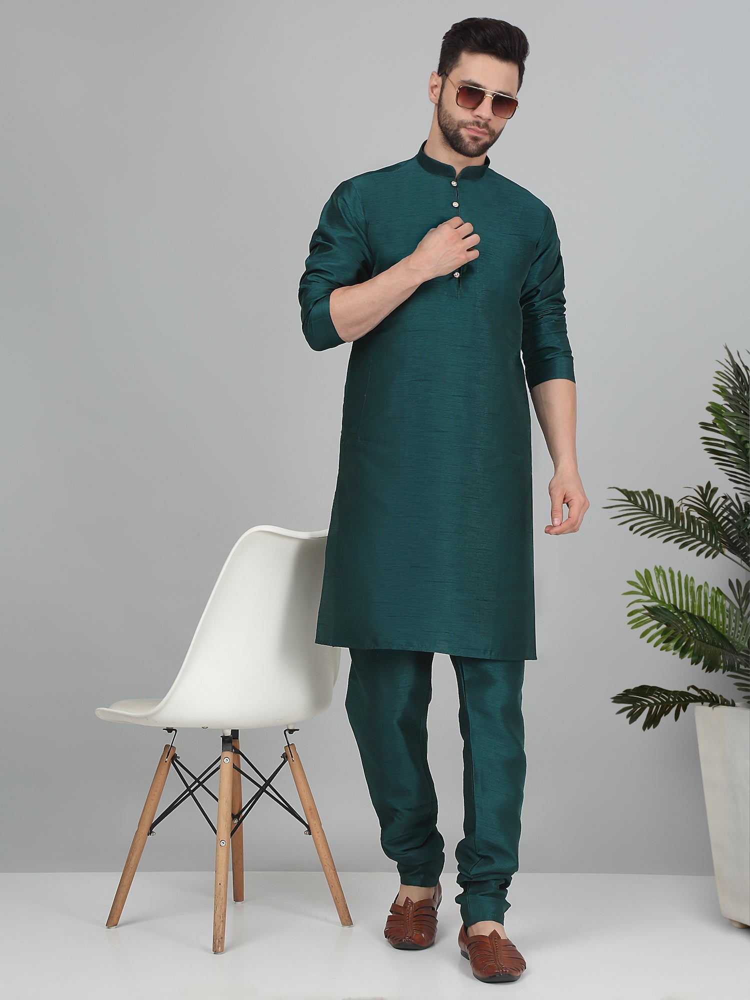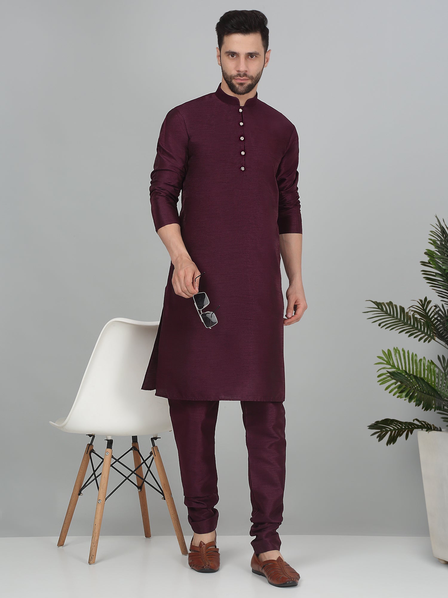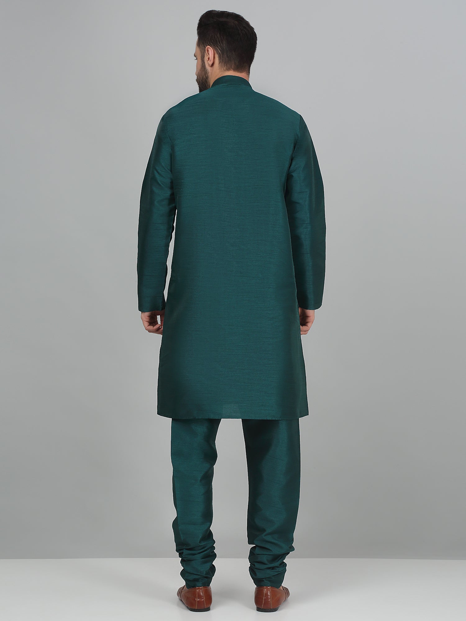 KRAFT INDIA Men's Solid Silk Blend Dupion Kurta Churidar Set