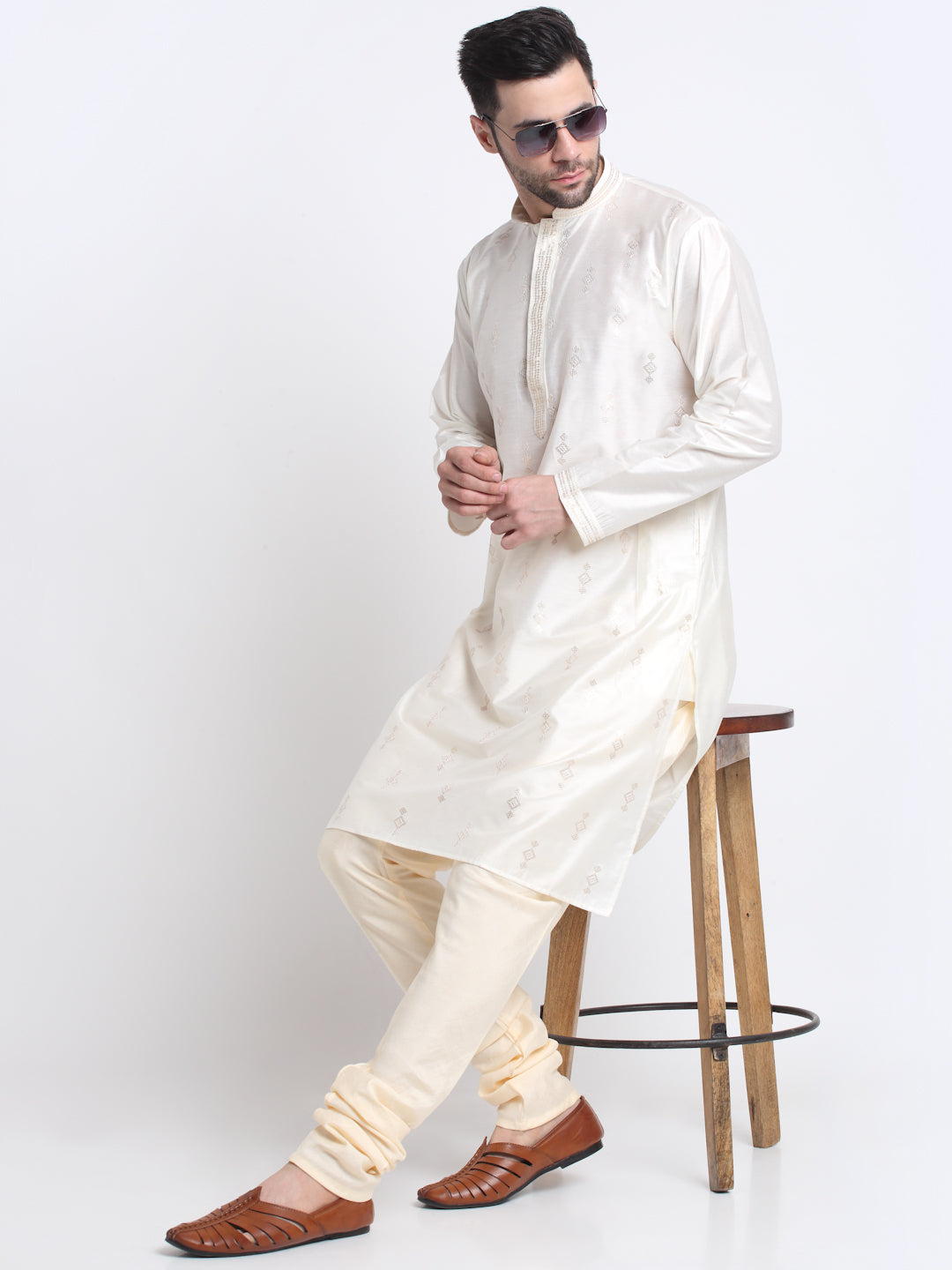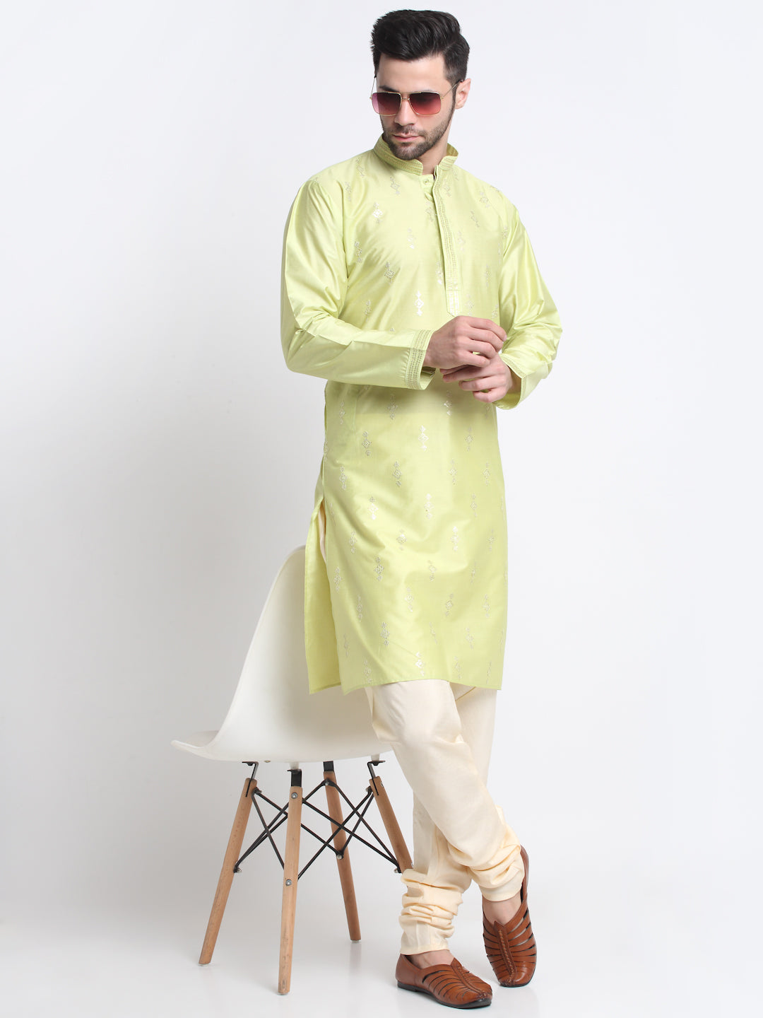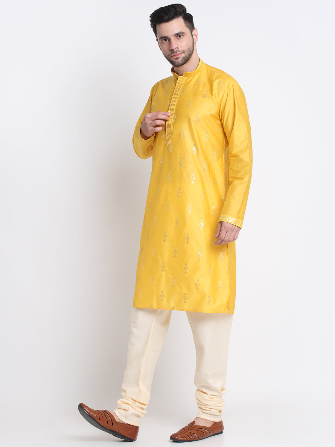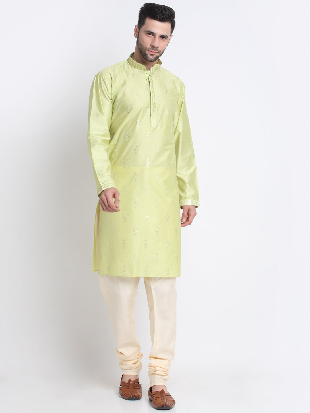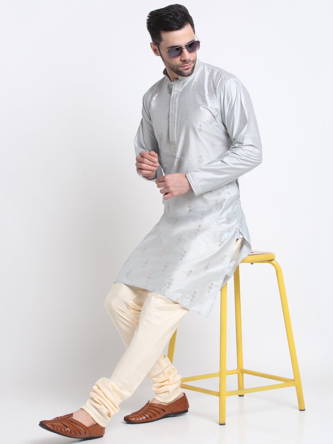 Men's Silk Embroidered Sequence Kurta and Churidar Set