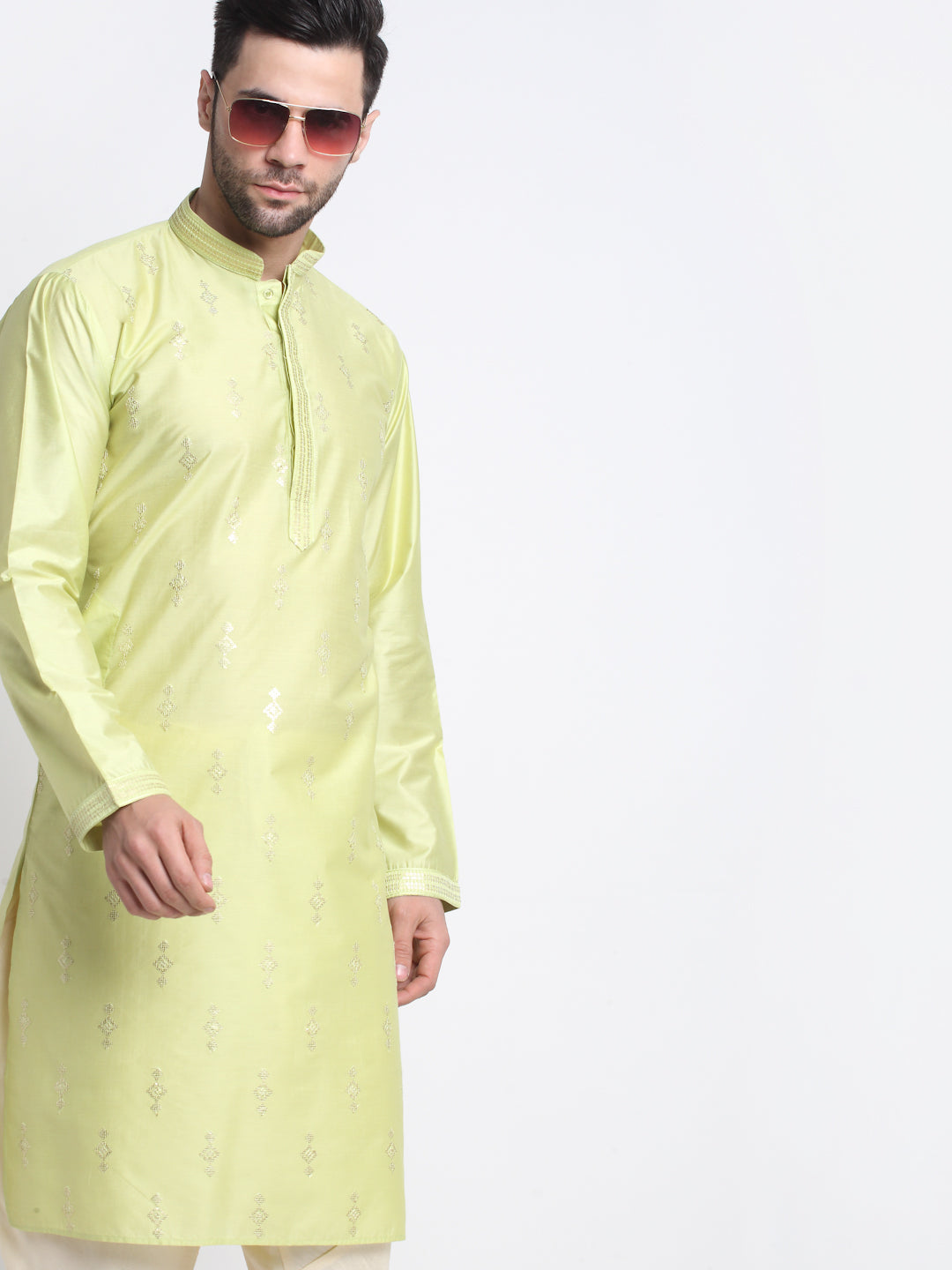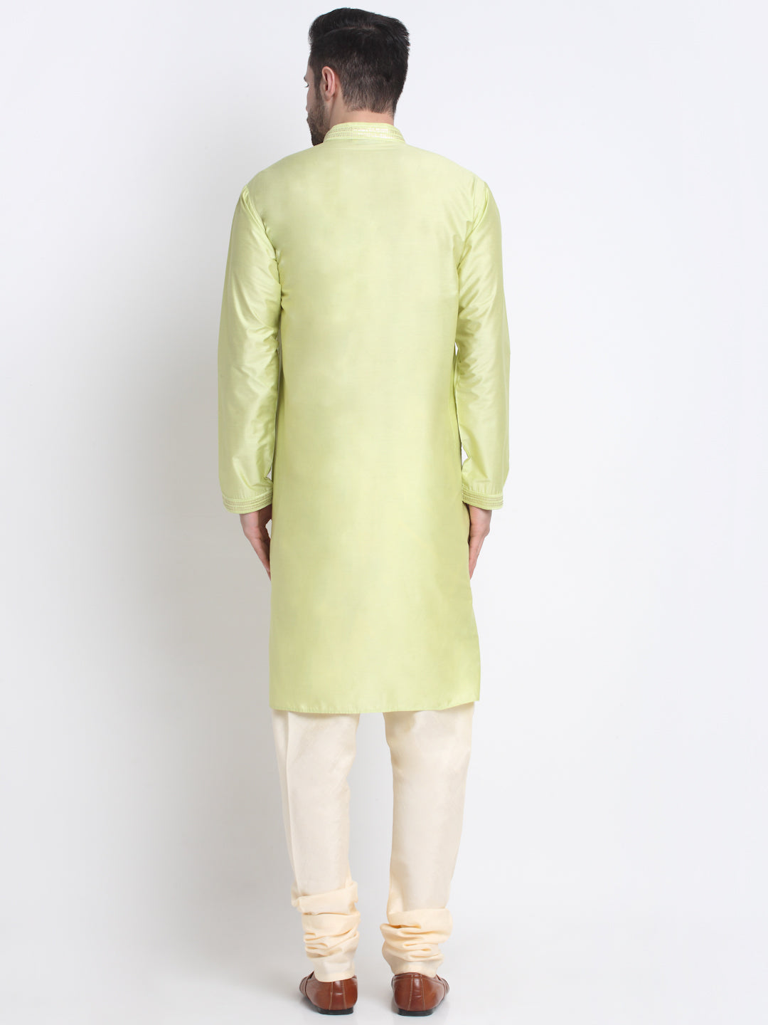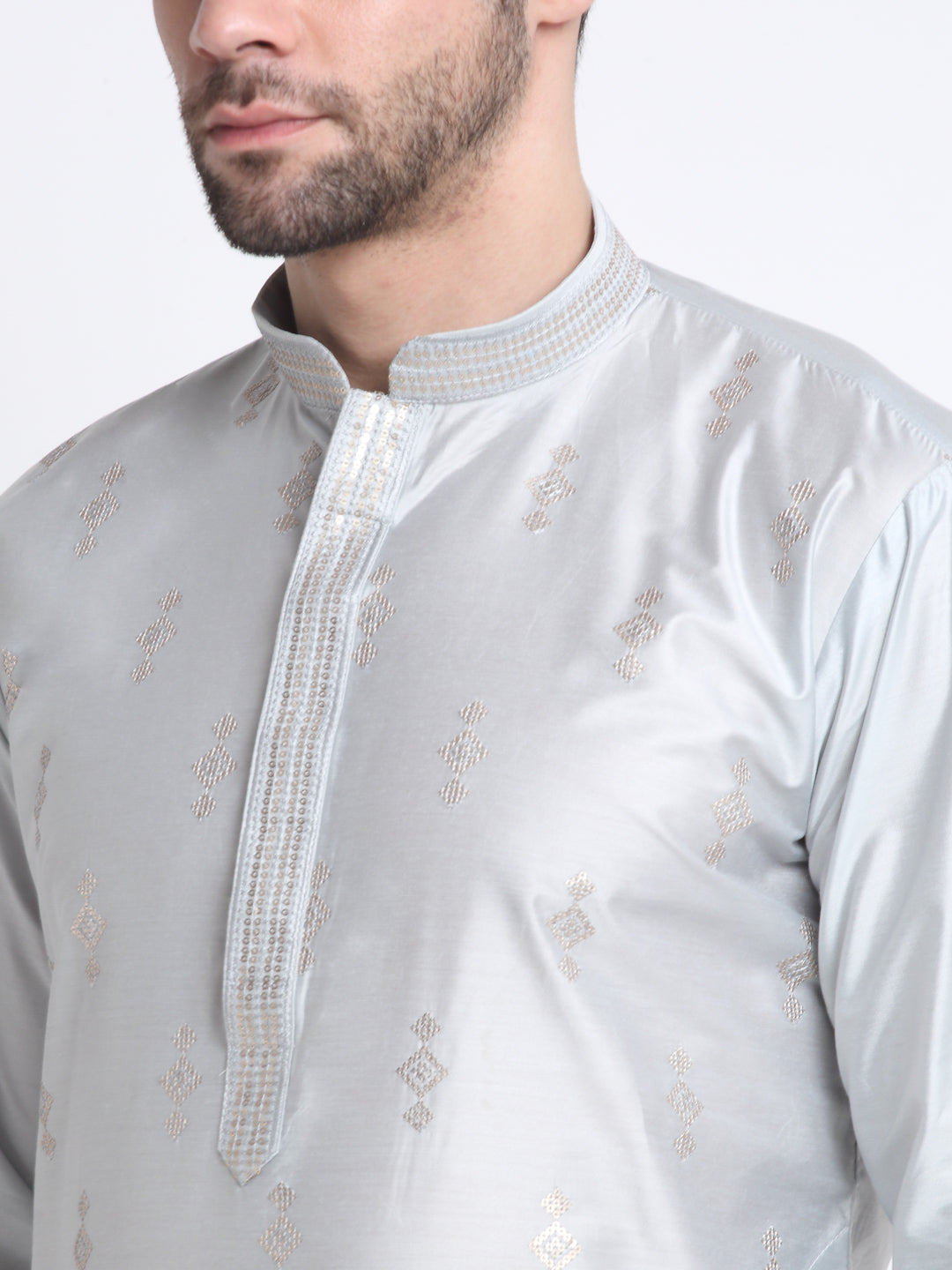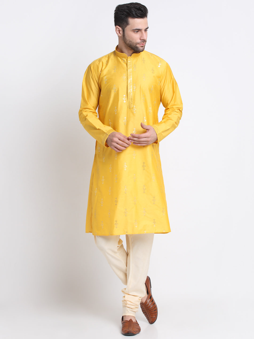Men's Silk Embroidered Sequence Kurta and Churidar Set