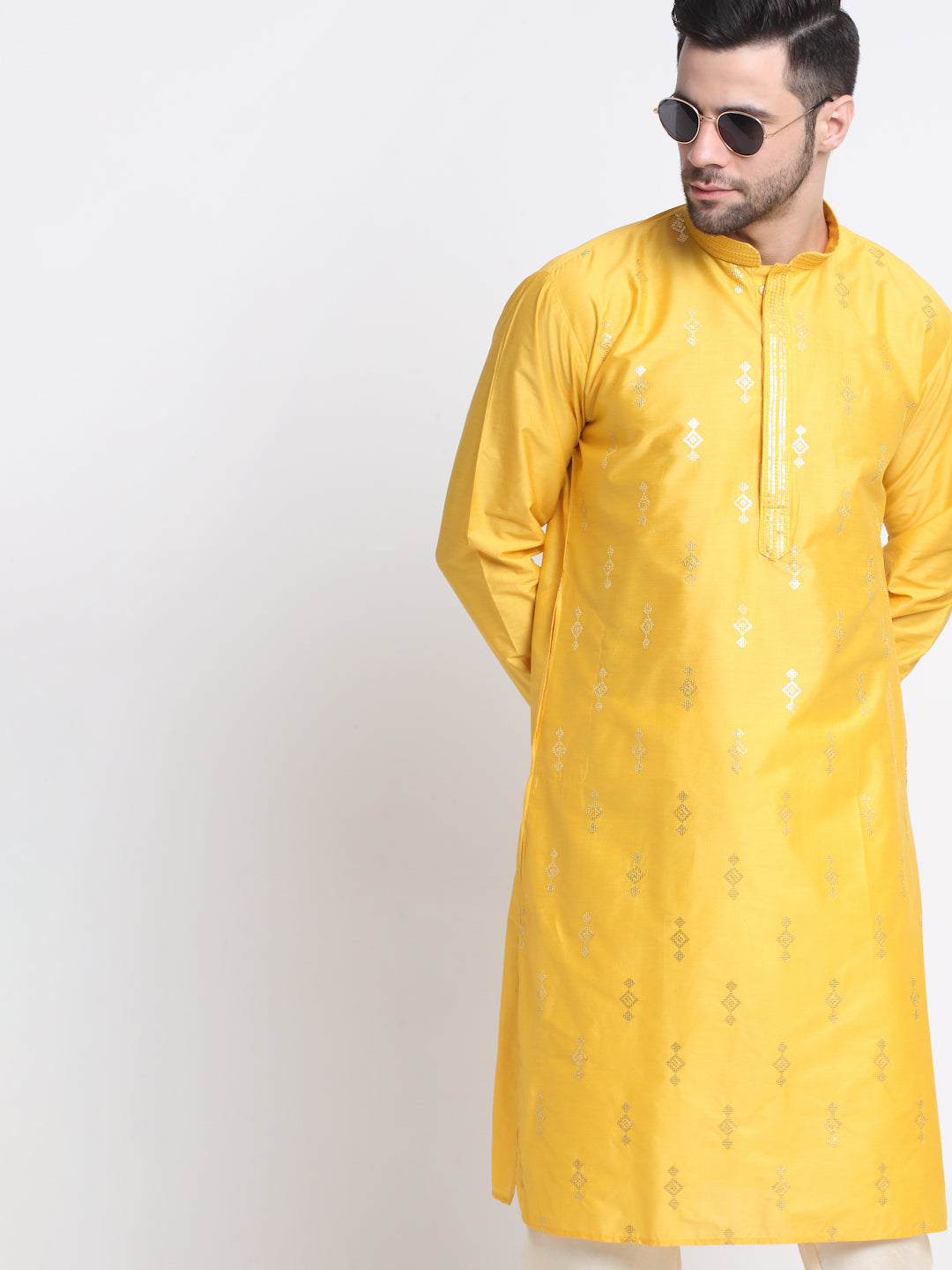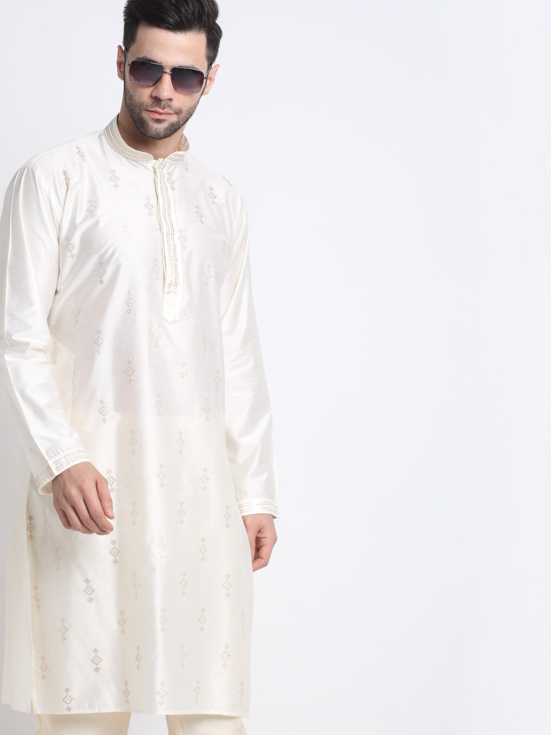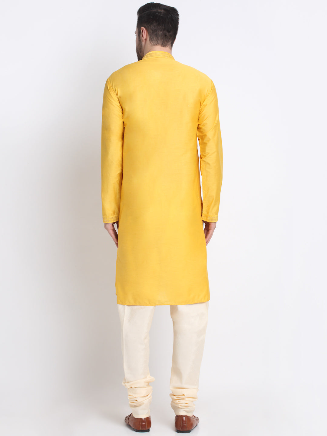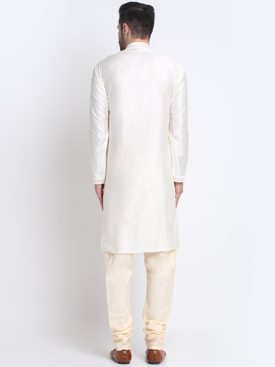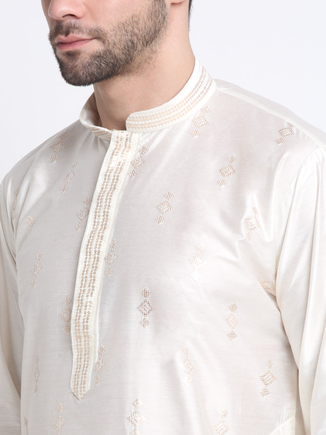 Men's Silk Embroidered Sequence Kurta and Churidar Set