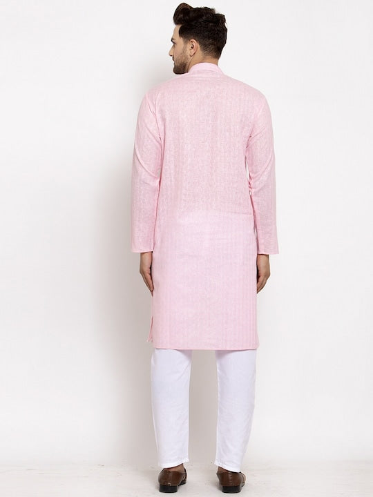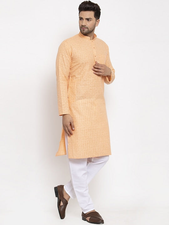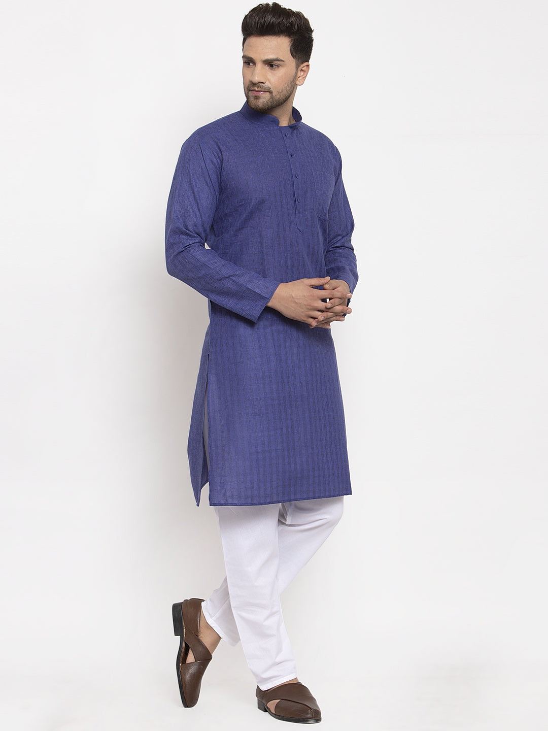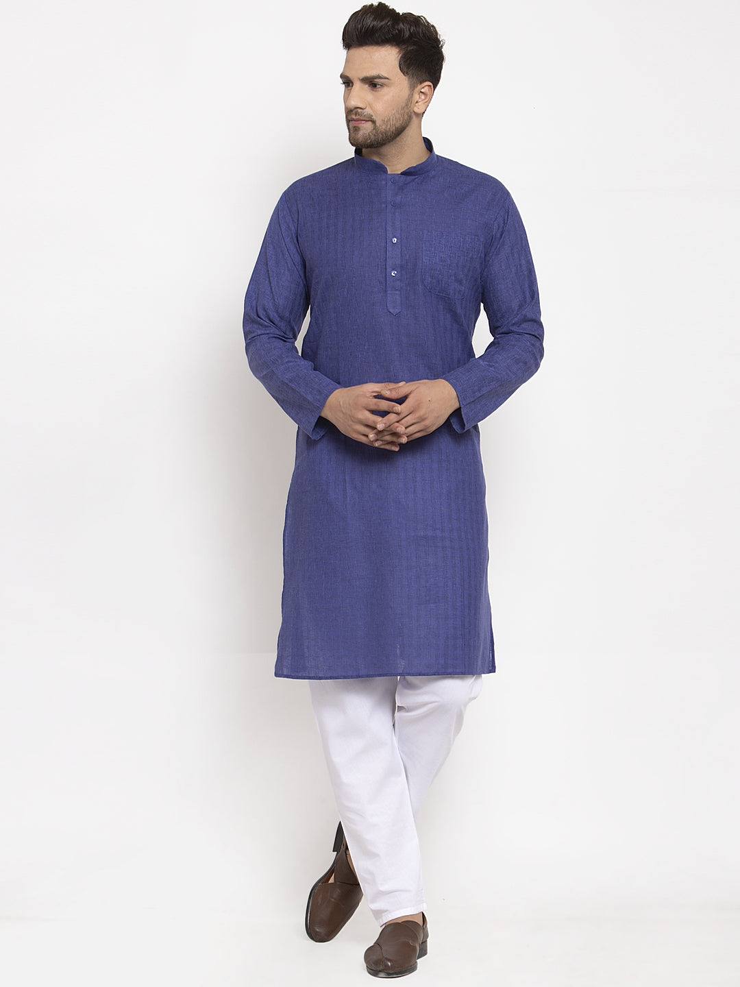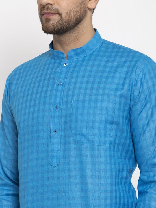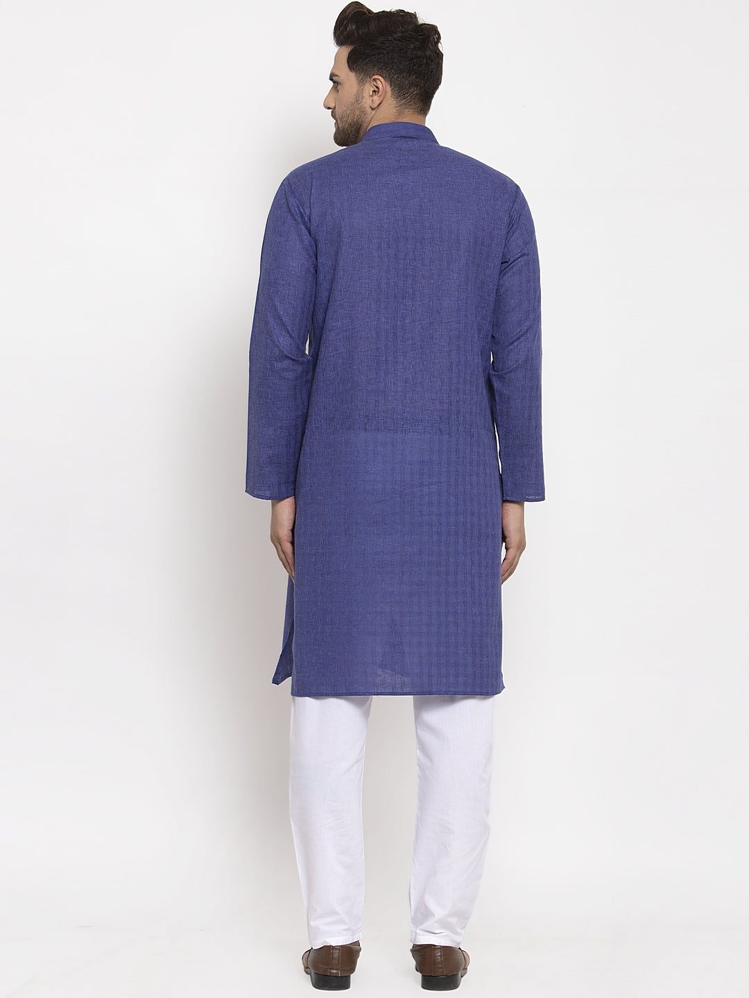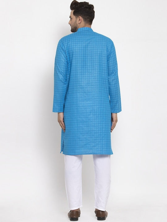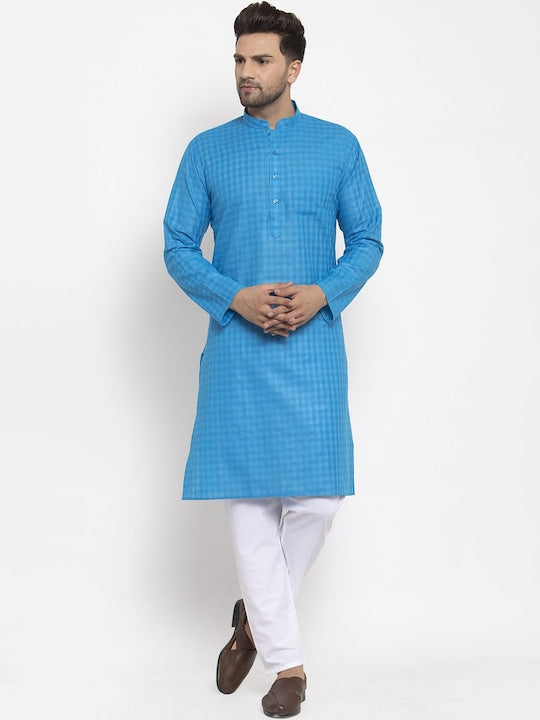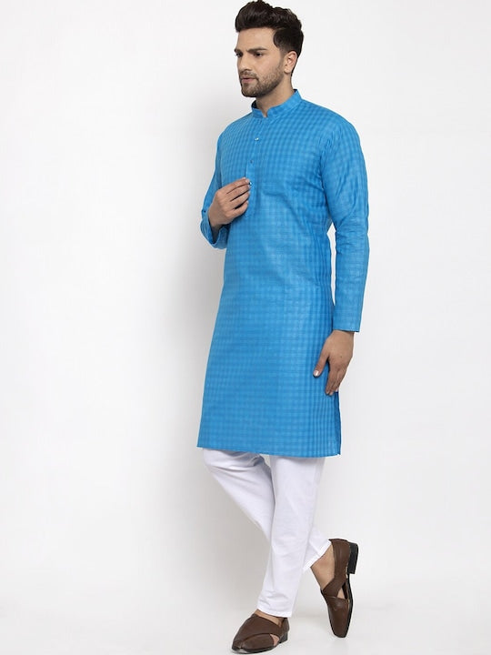 Men's Self Check Woven Design Cotton Blend Kurta Pyjama Set