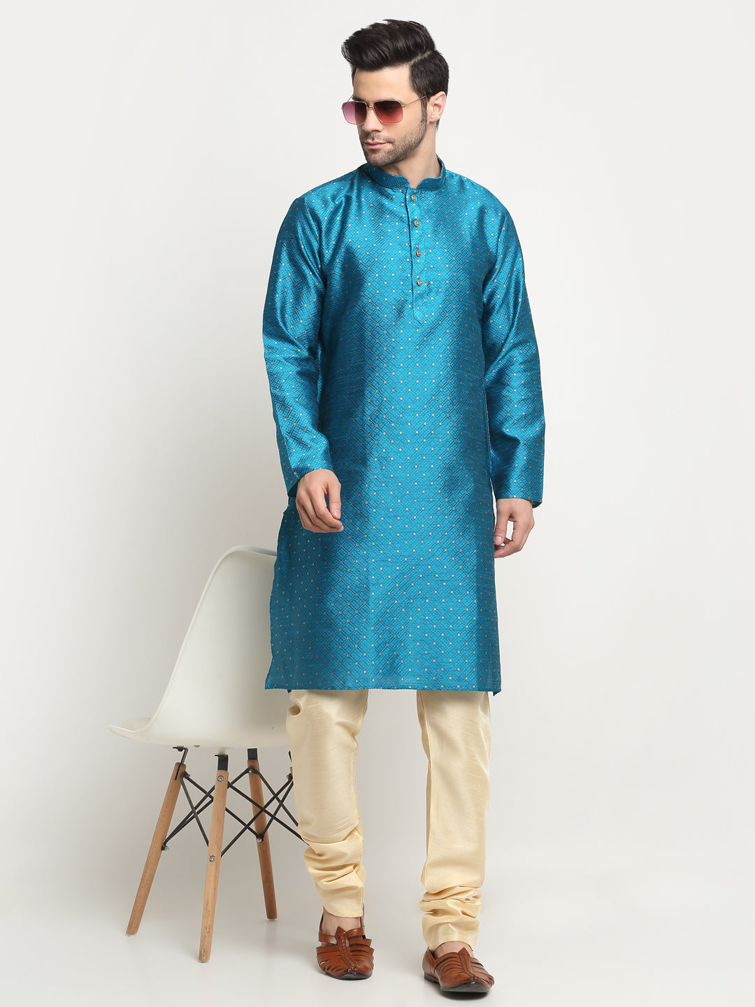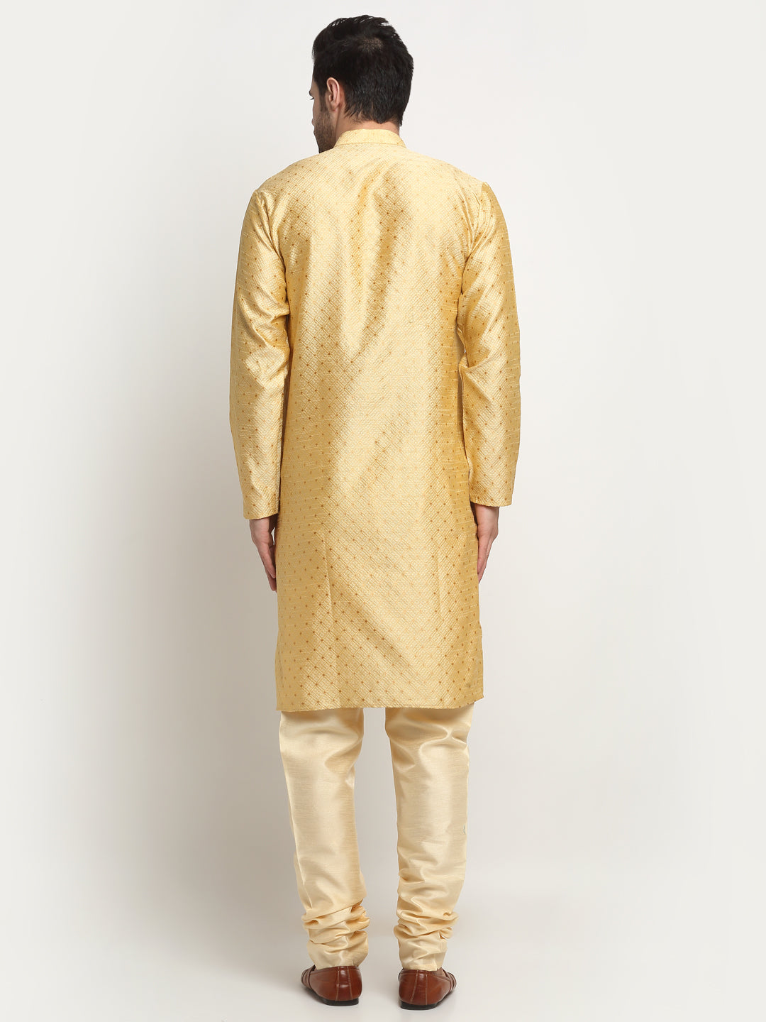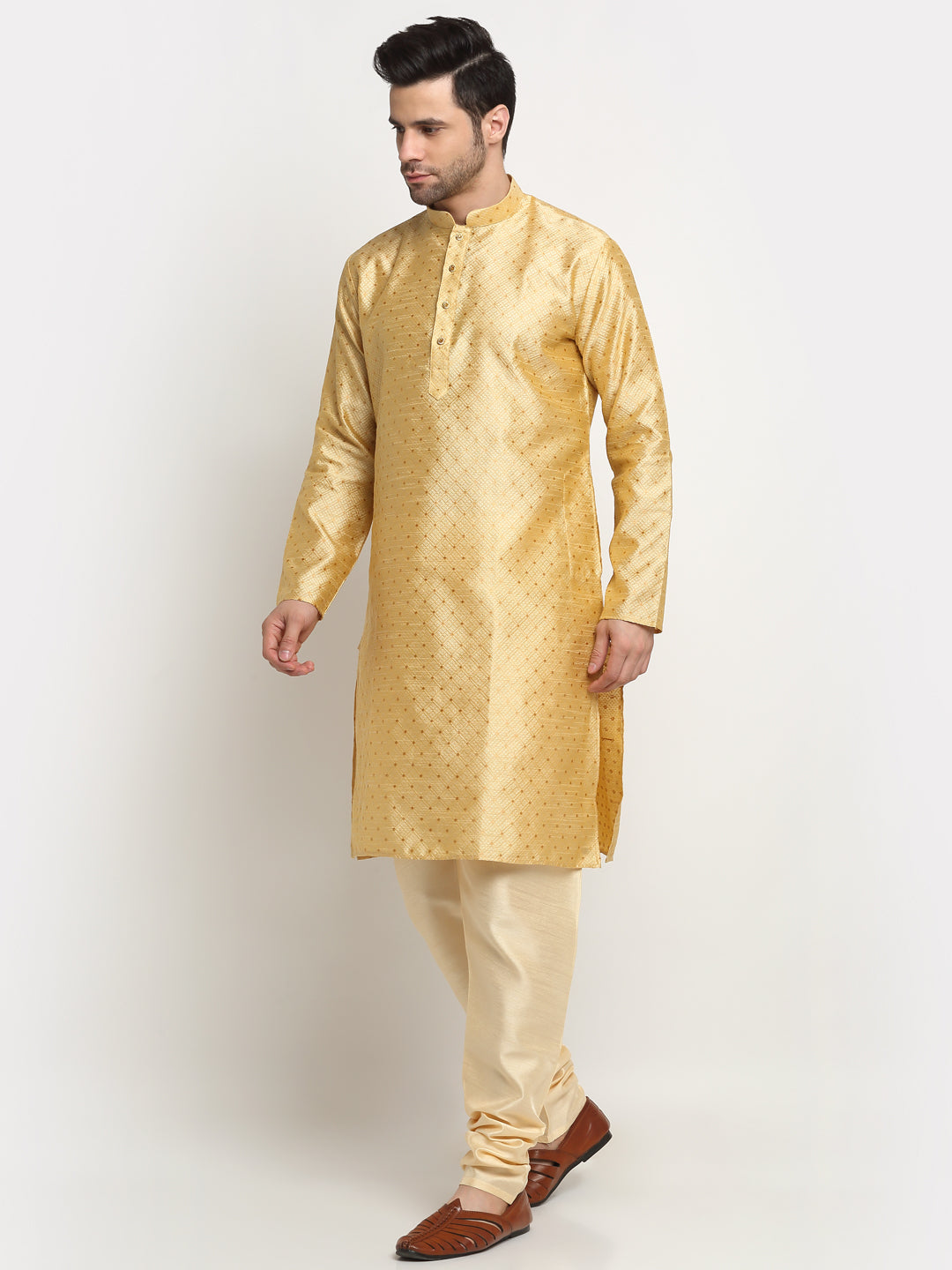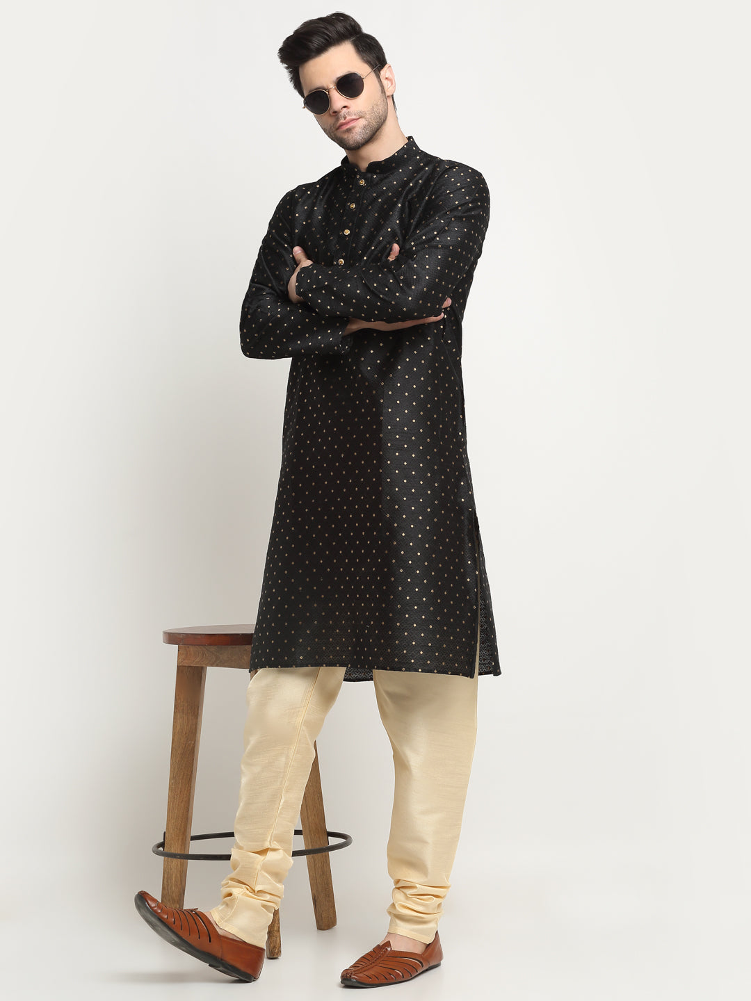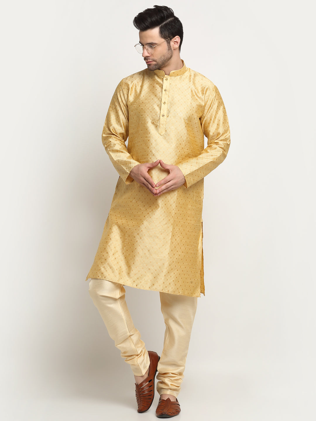 KRAFT INDIA Men's Silk Polka Dotted Jacquard Kurta & Beige Churidar Set