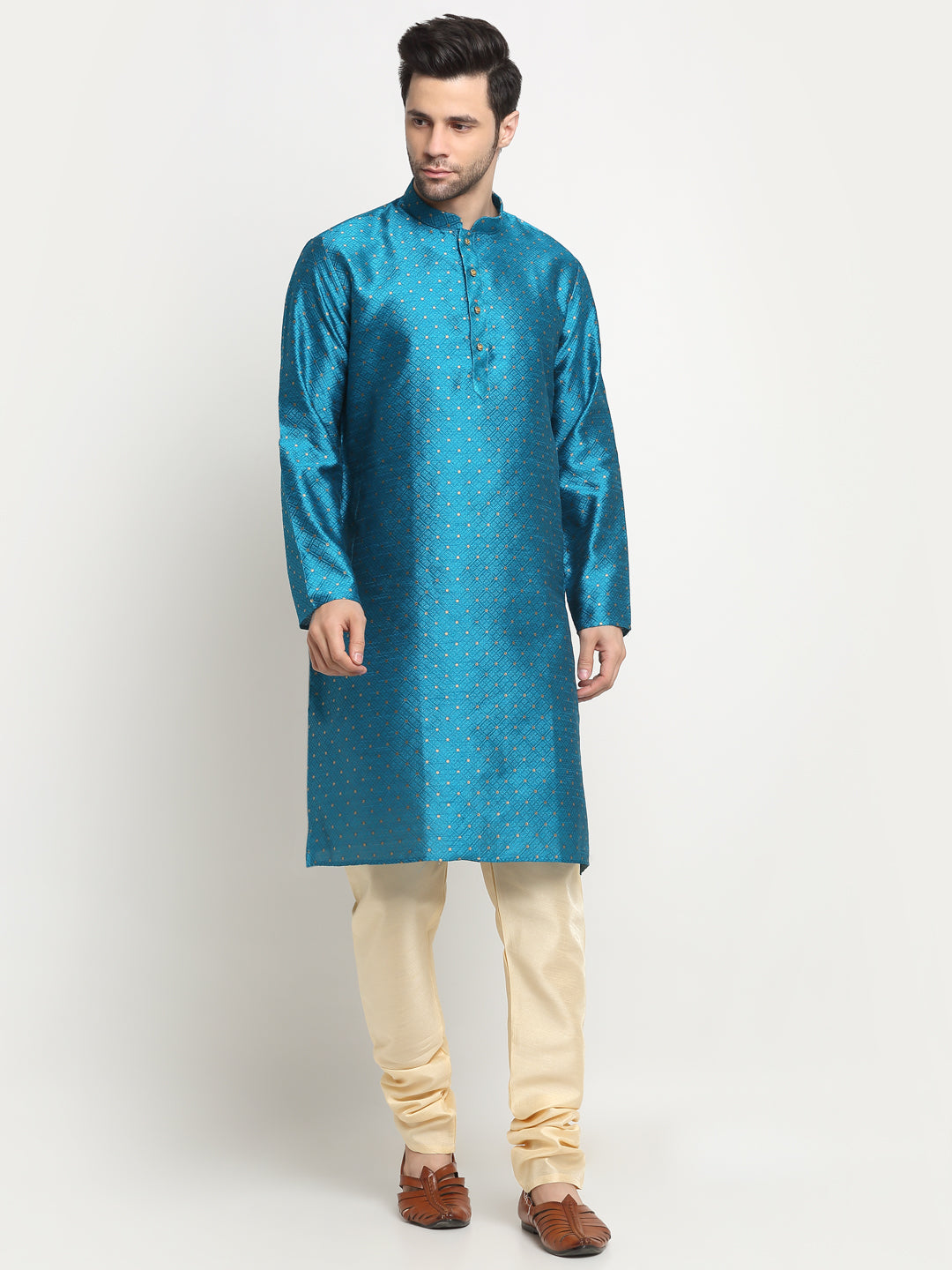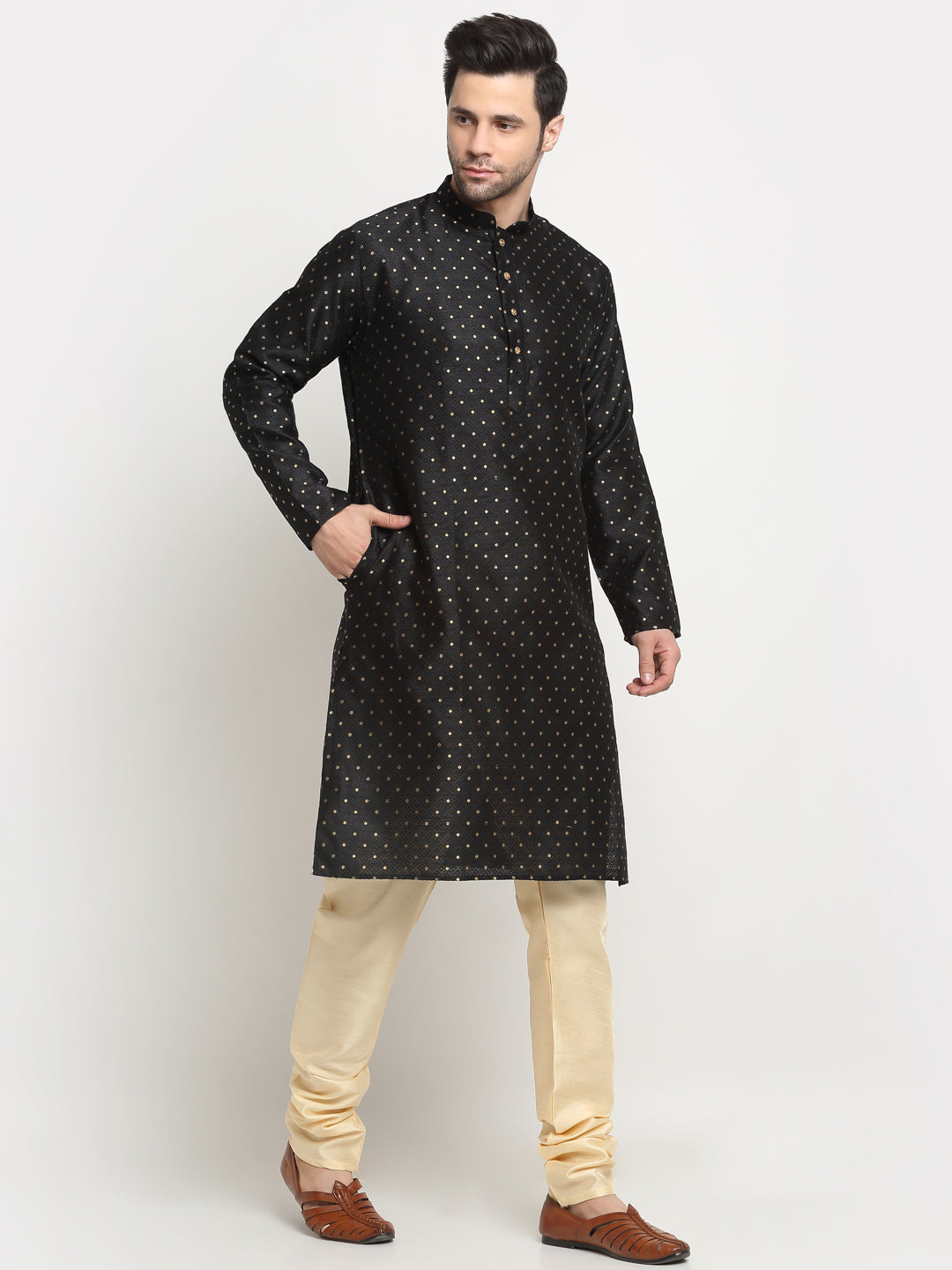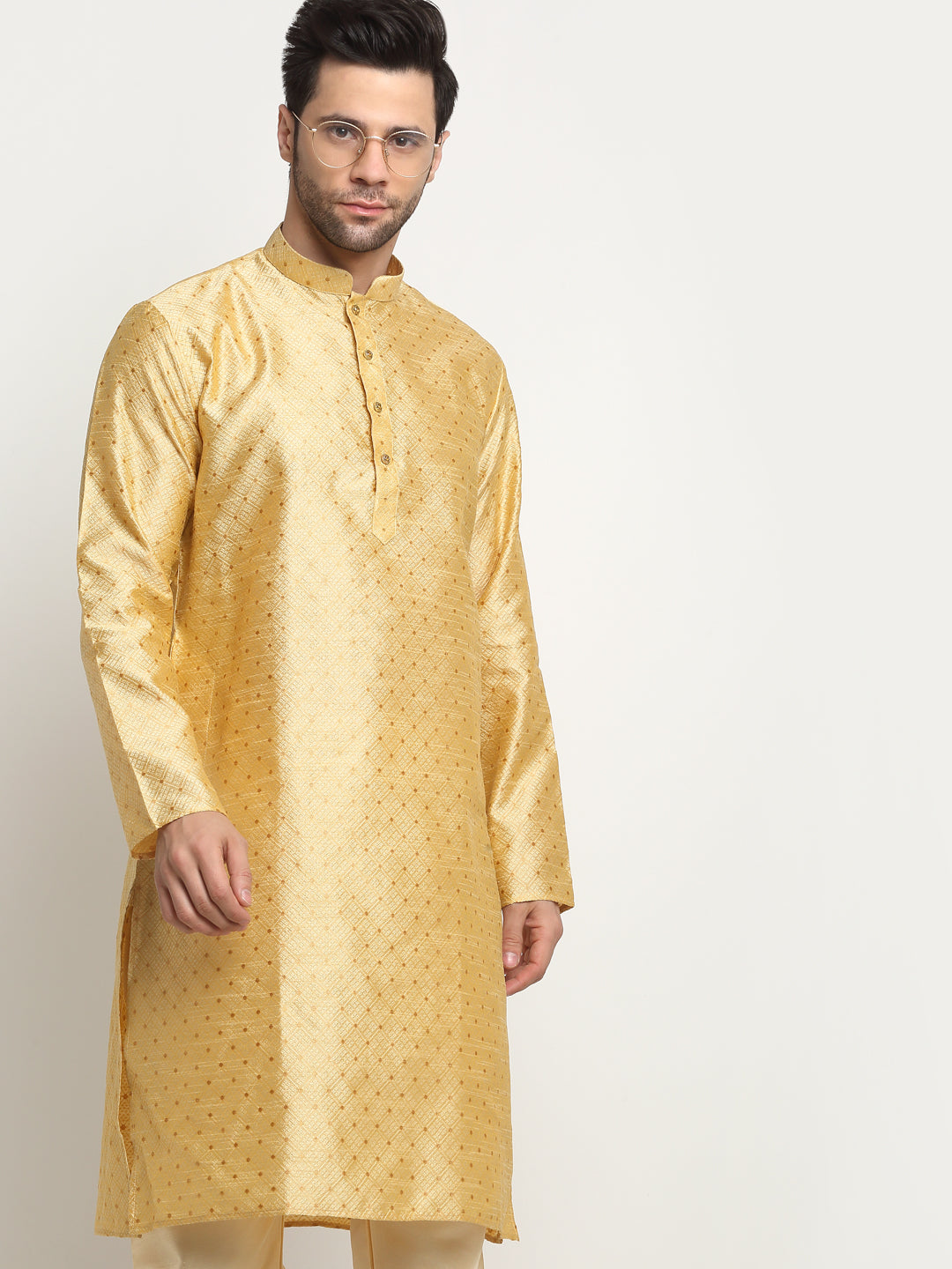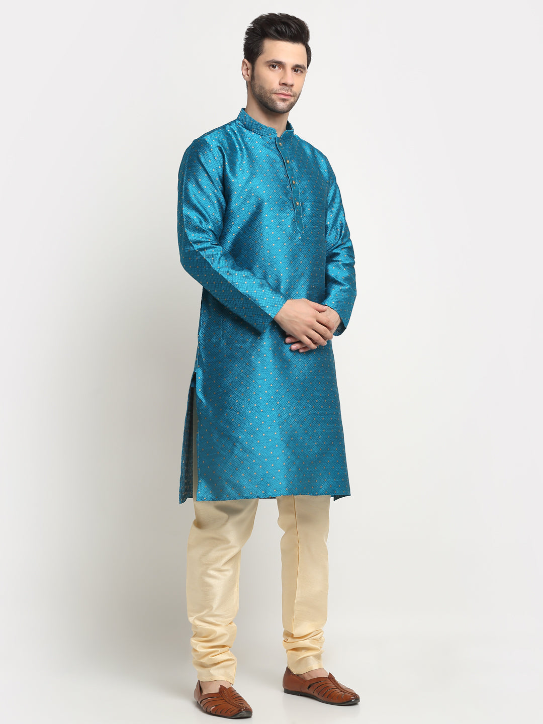 KRAFT INDIA Men's Silk Polka Dotted Jacquard Kurta & Beige Churidar Set