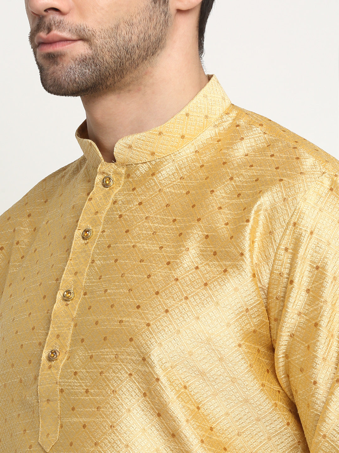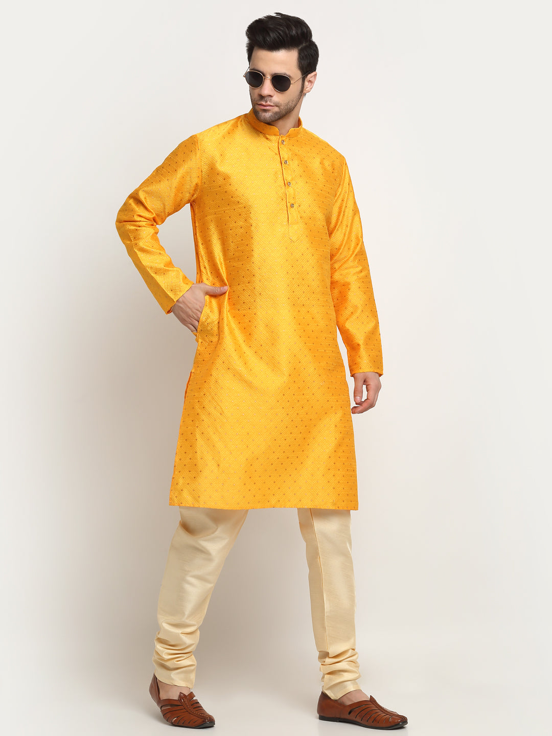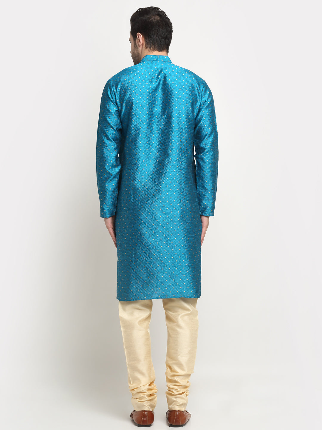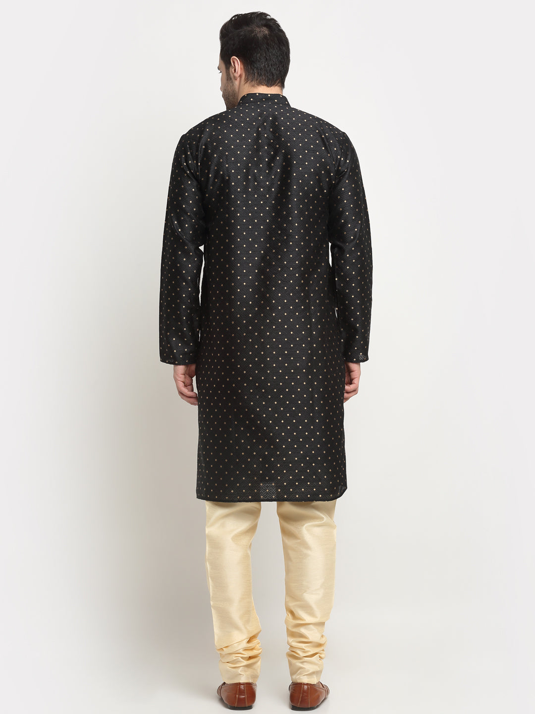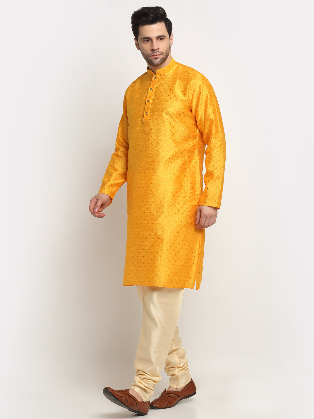 KRAFT INDIA Men's Silk Polka Dotted Jacquard Kurta & Beige Churidar Set