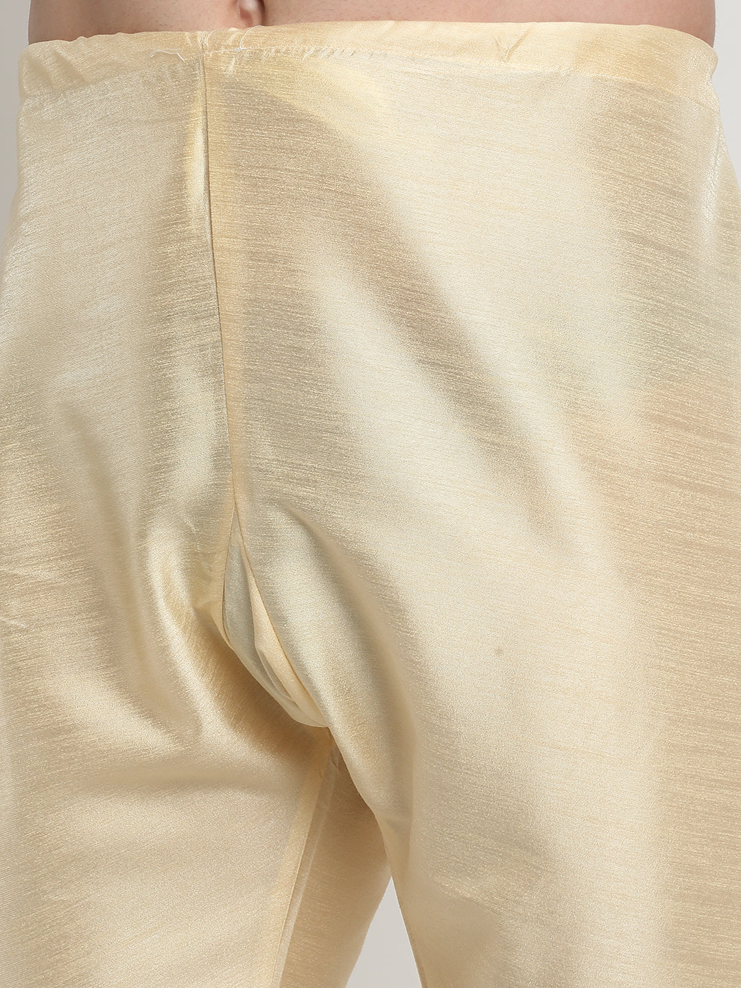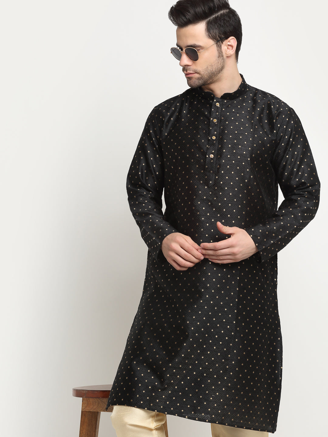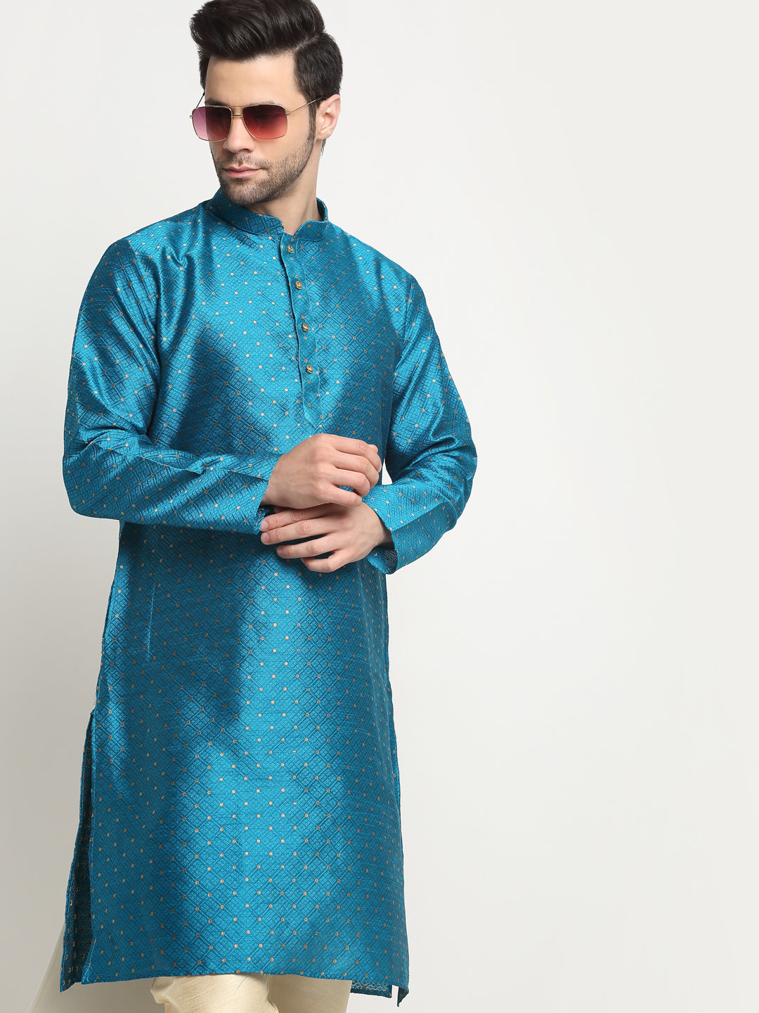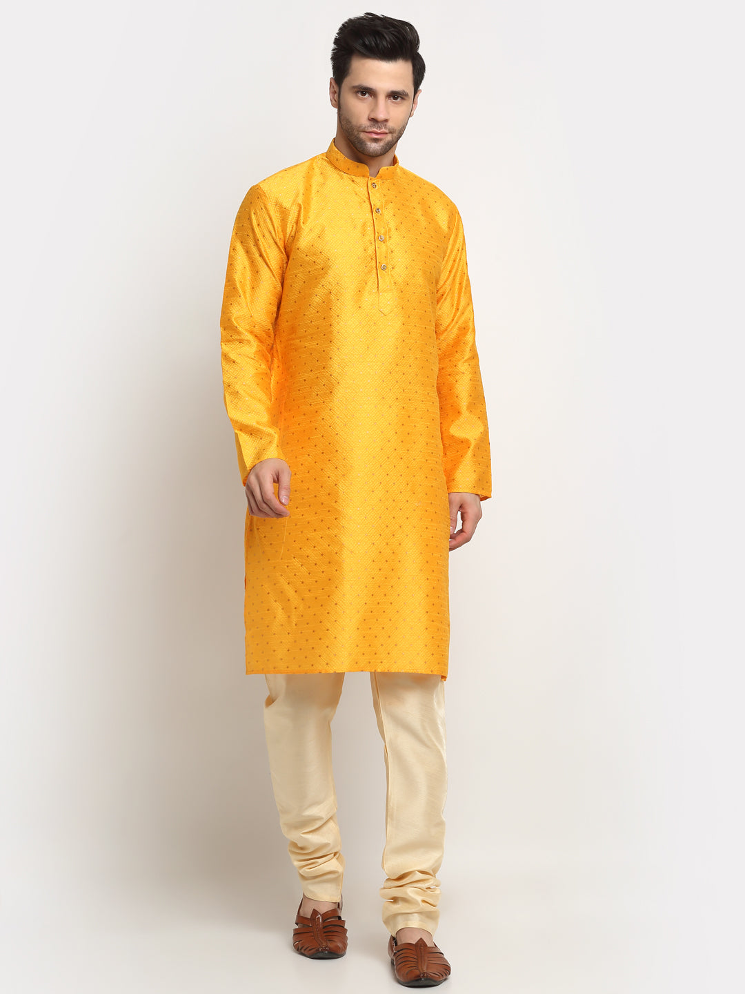 KRAFT INDIA Men's Silk Polka Dotted Jacquard Kurta & Beige Churidar Set