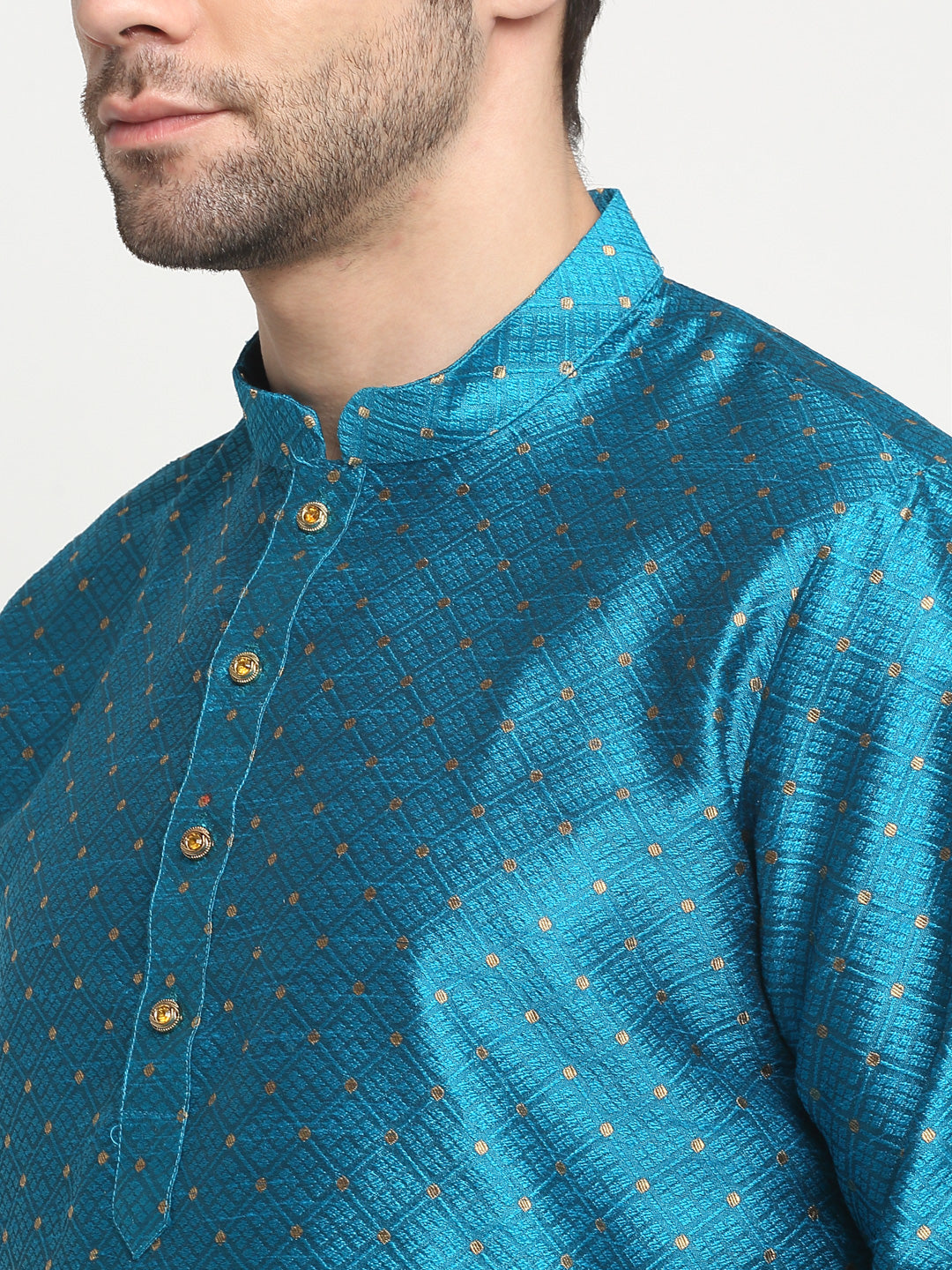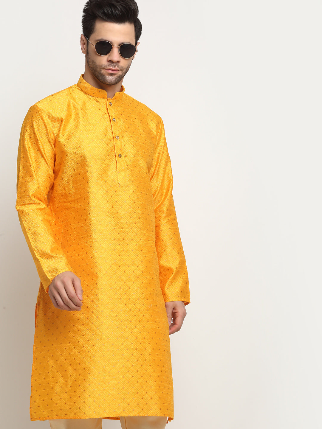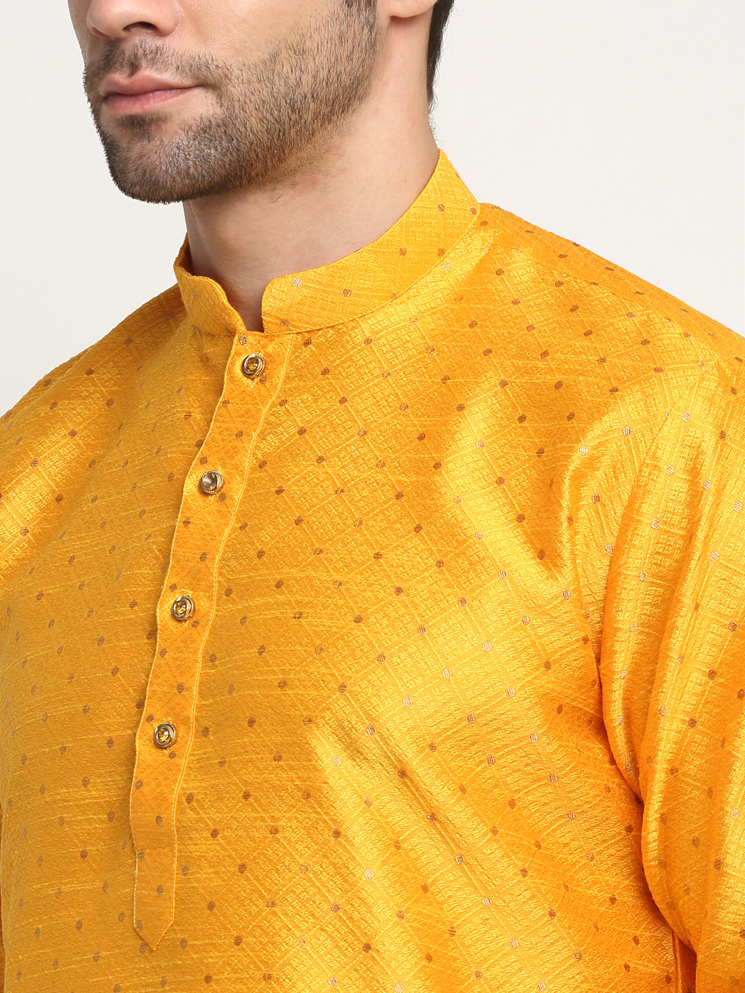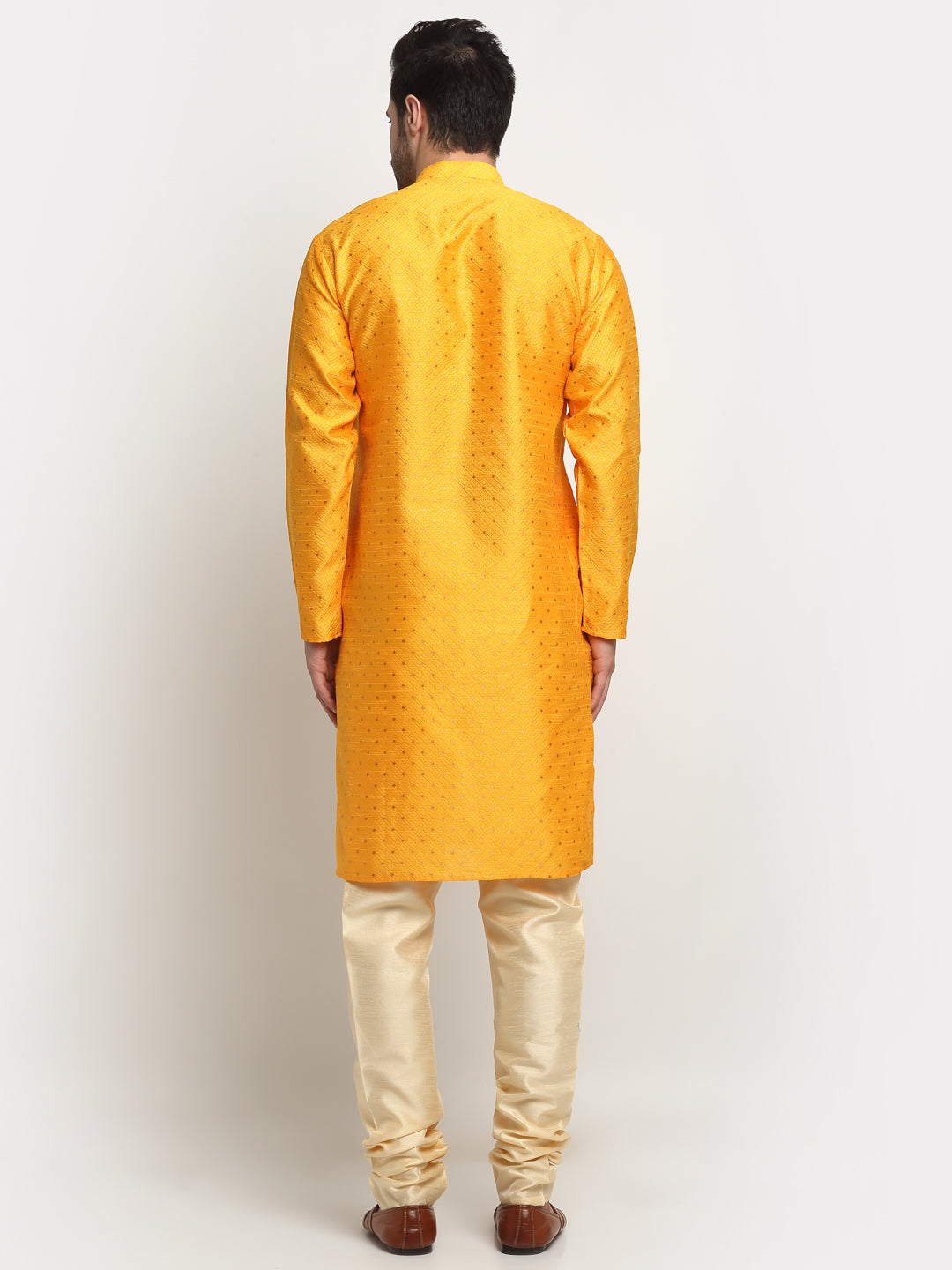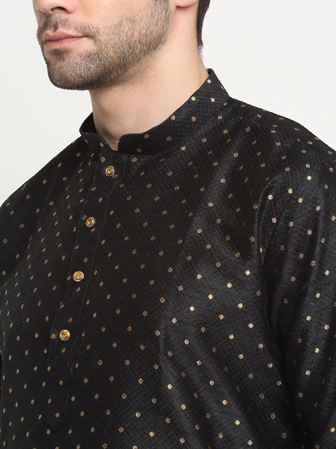 KRAFT INDIA Men's Silk Polka Dotted Jacquard Kurta & Beige Churidar Set