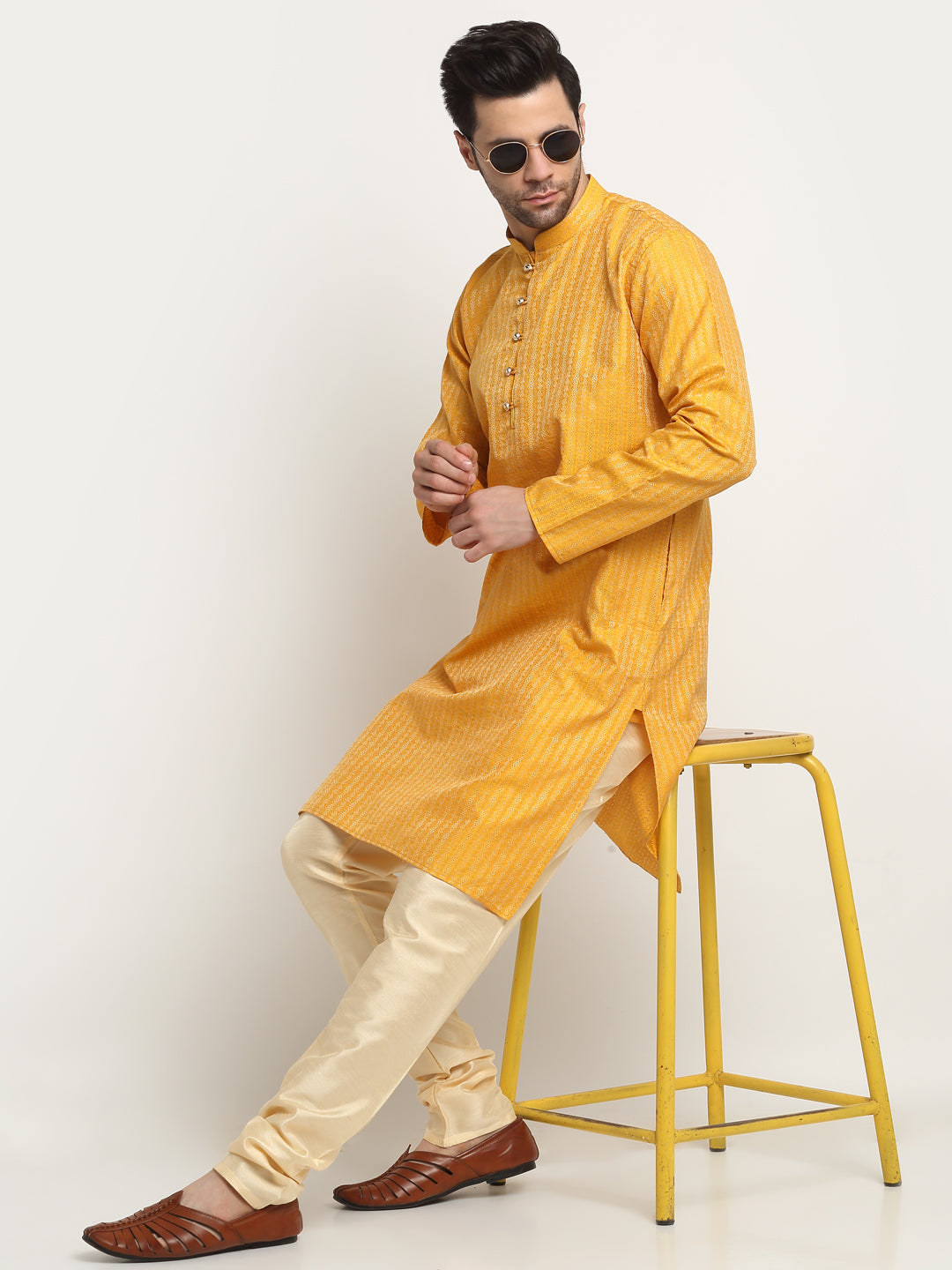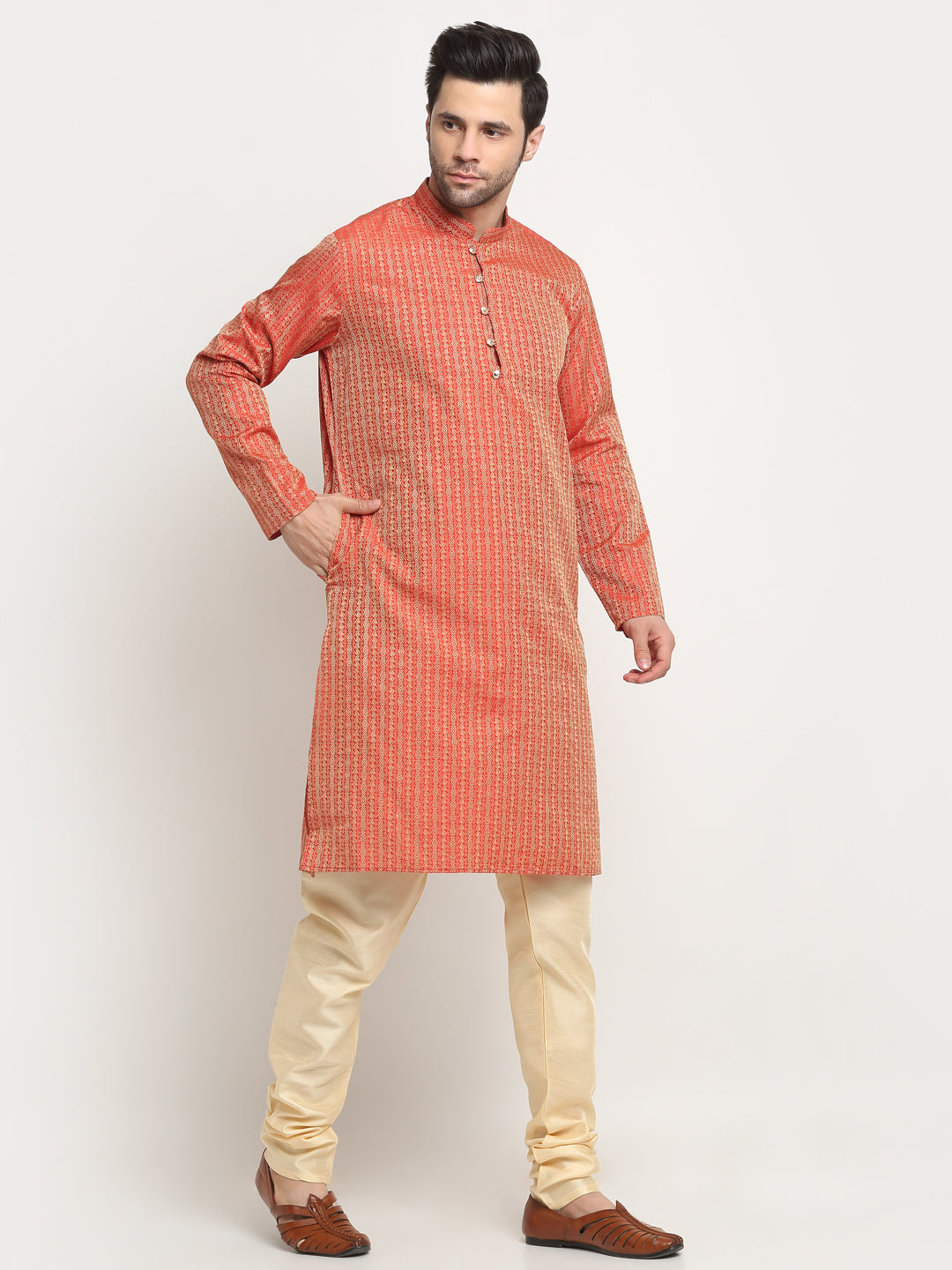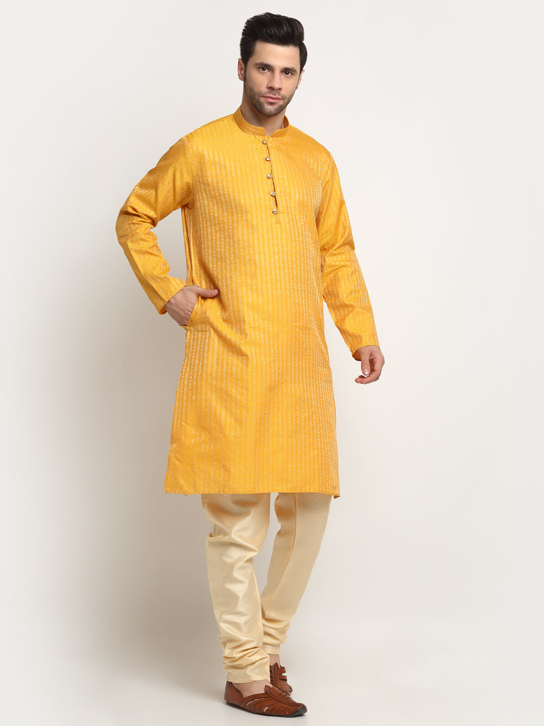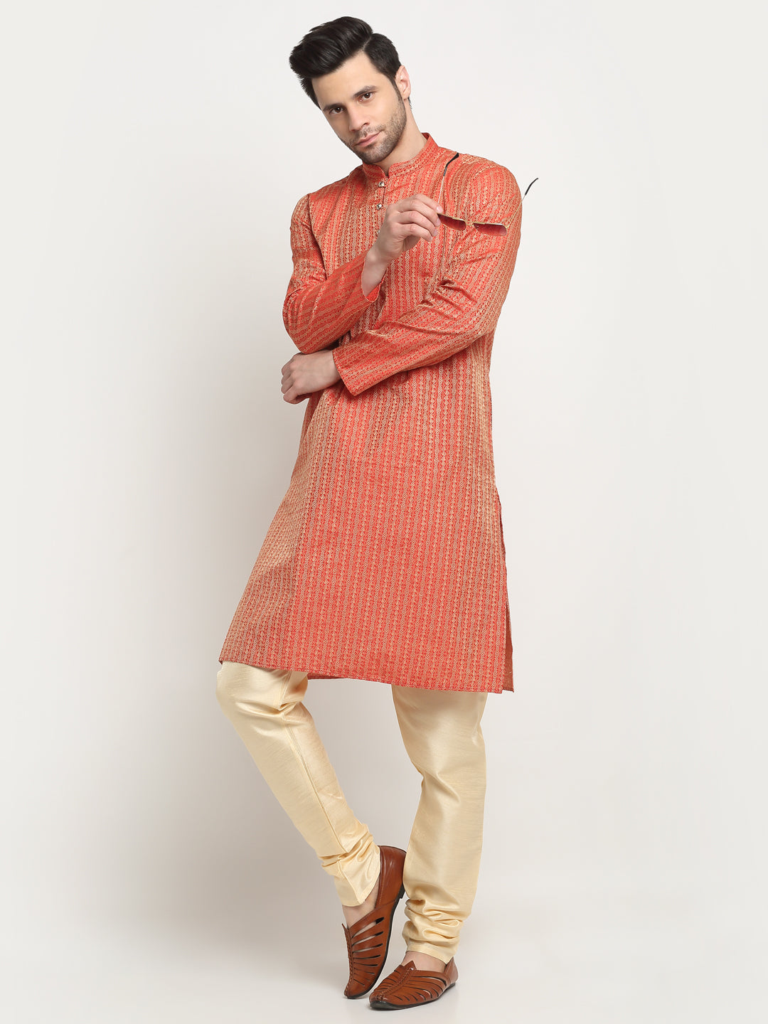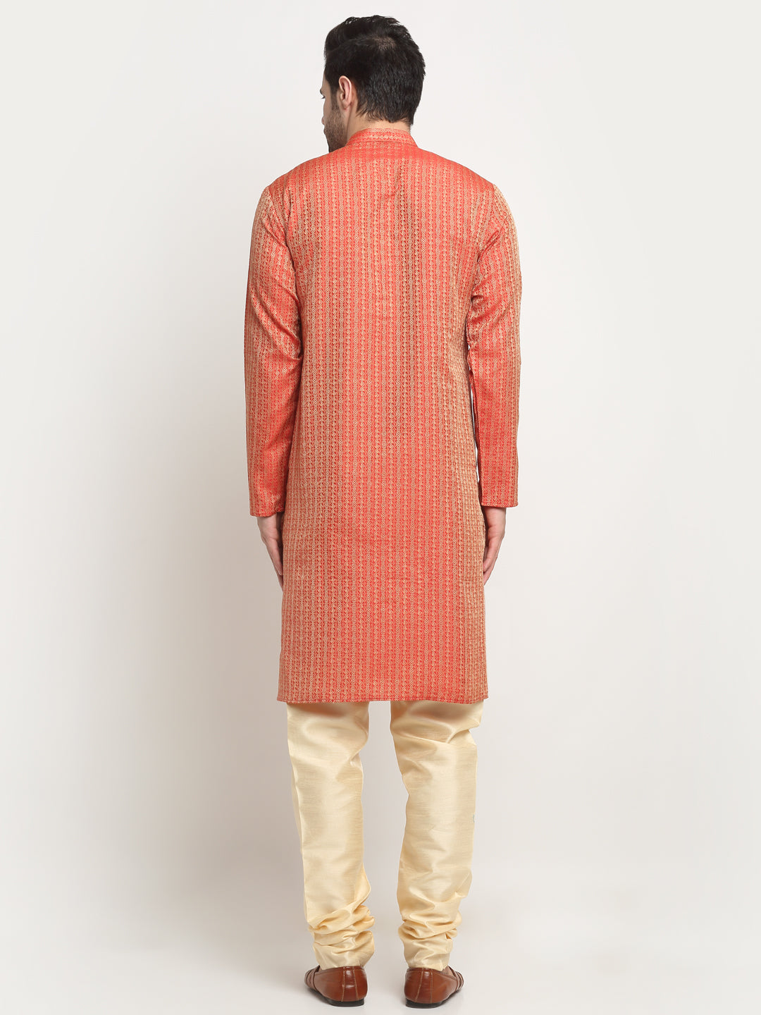 KRAFT INDIA Men's Silk Woven Design Jacquard Kurta & Beige Churidar Set