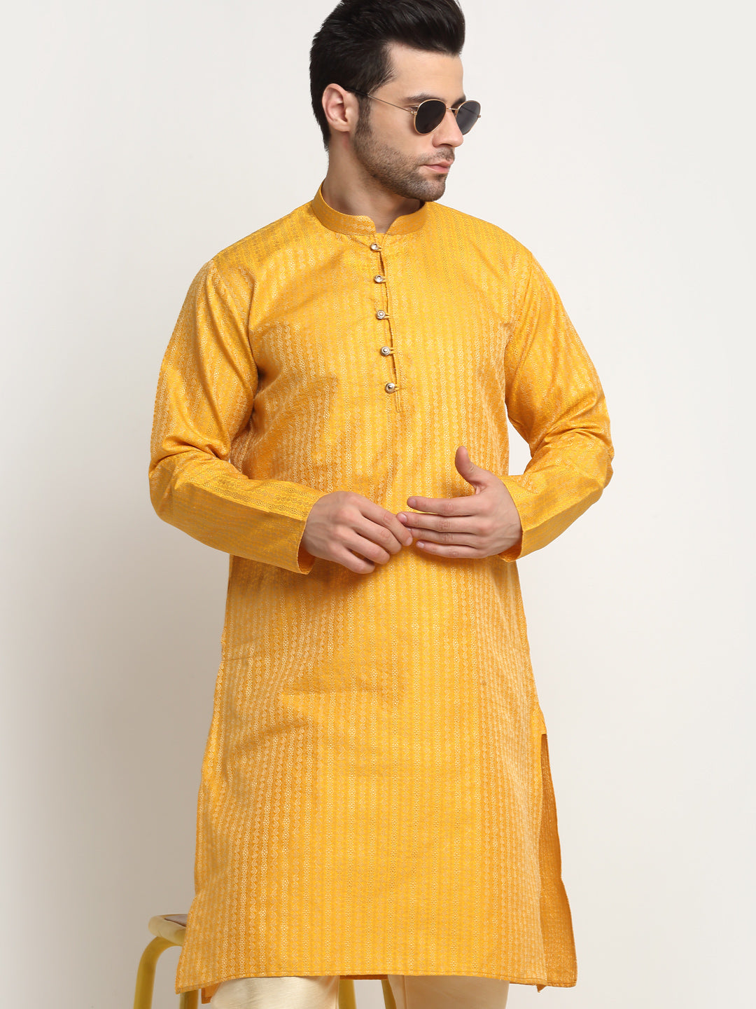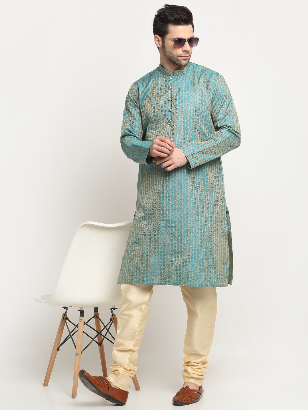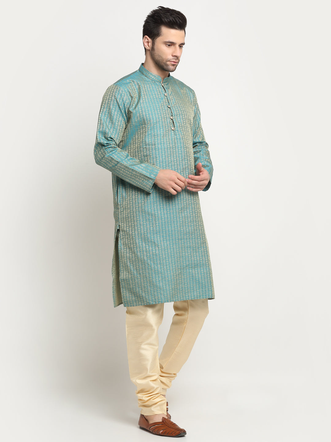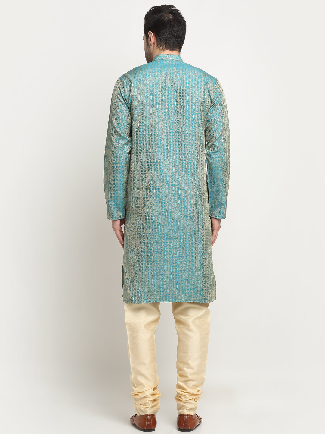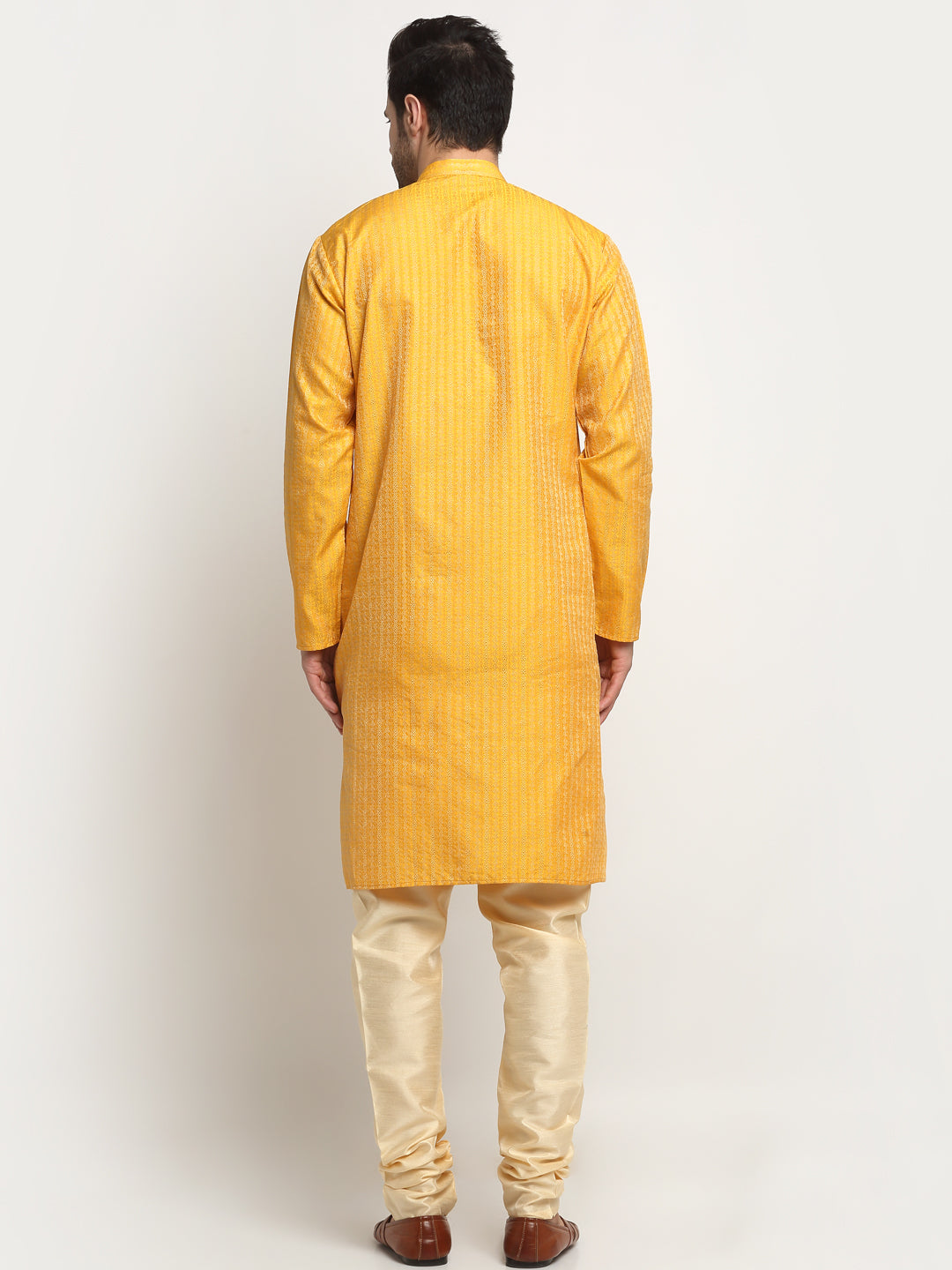 KRAFT INDIA Men's Silk Woven Design Jacquard Kurta & Beige Churidar Set
