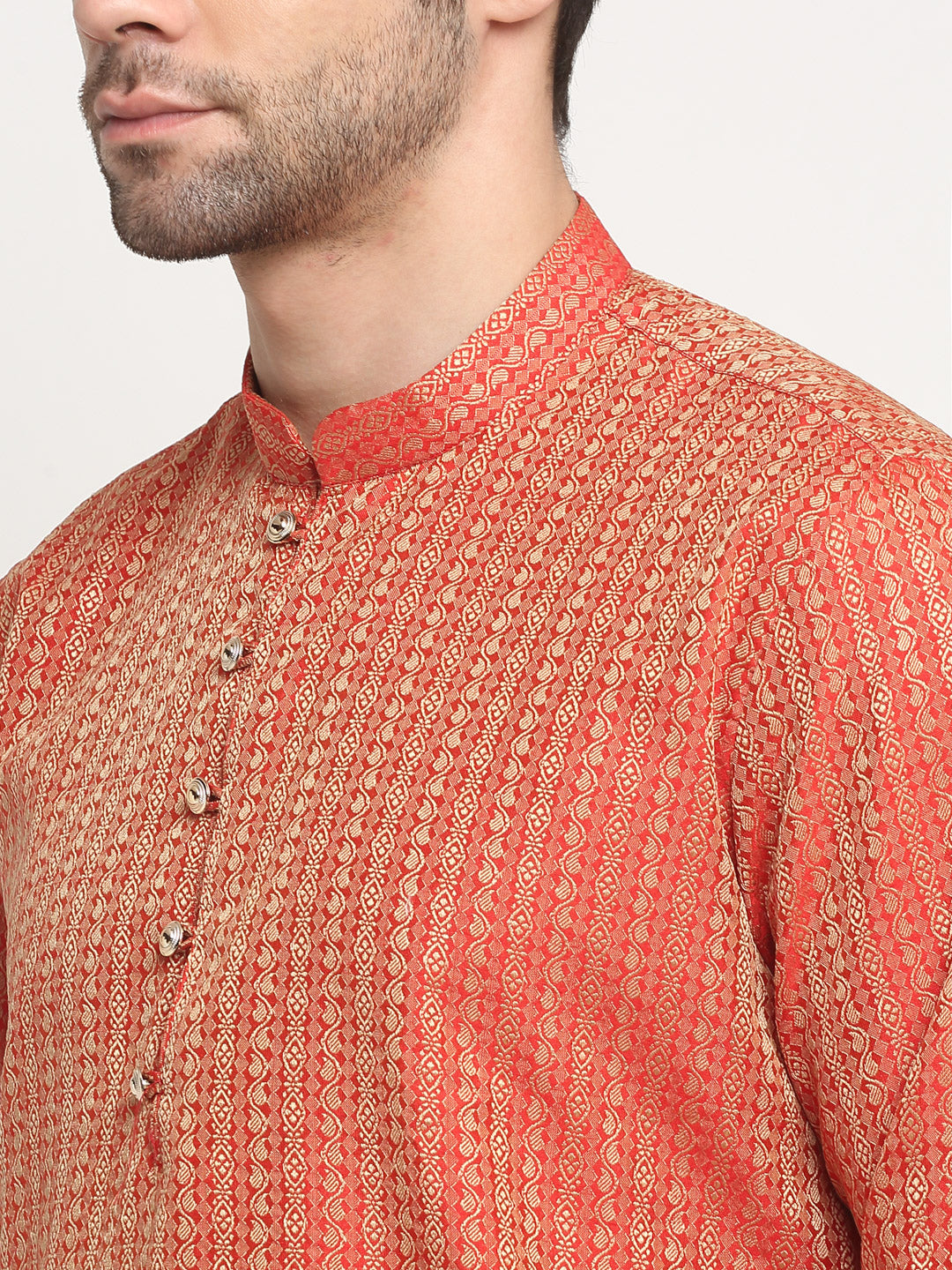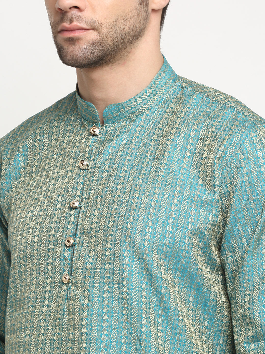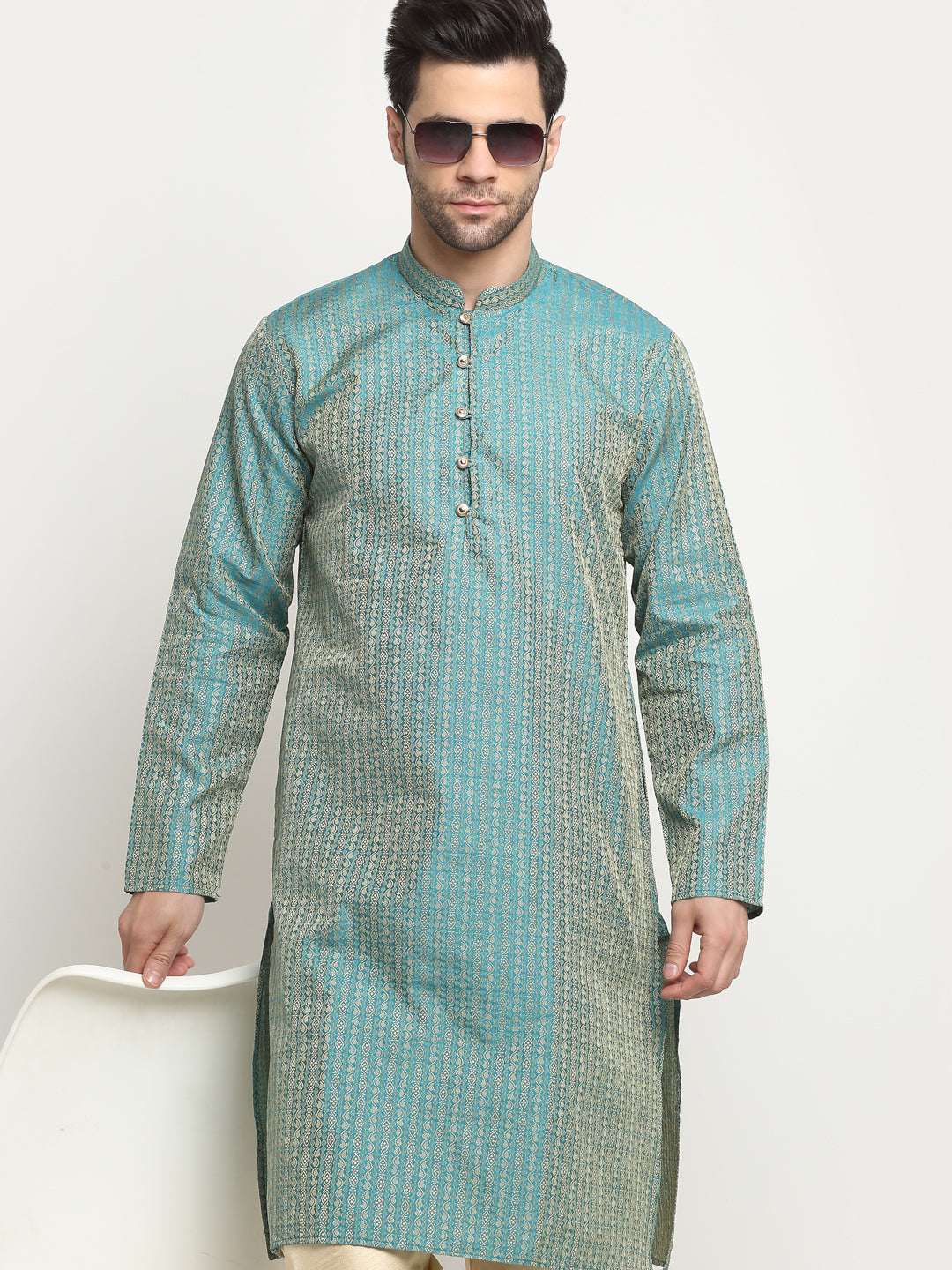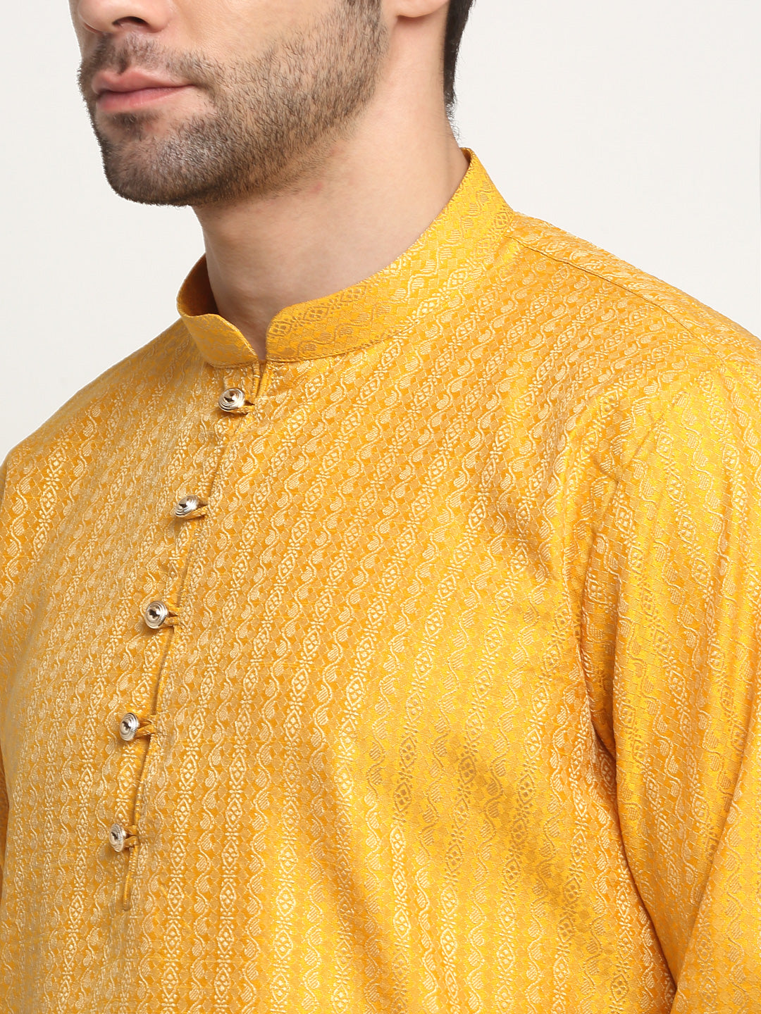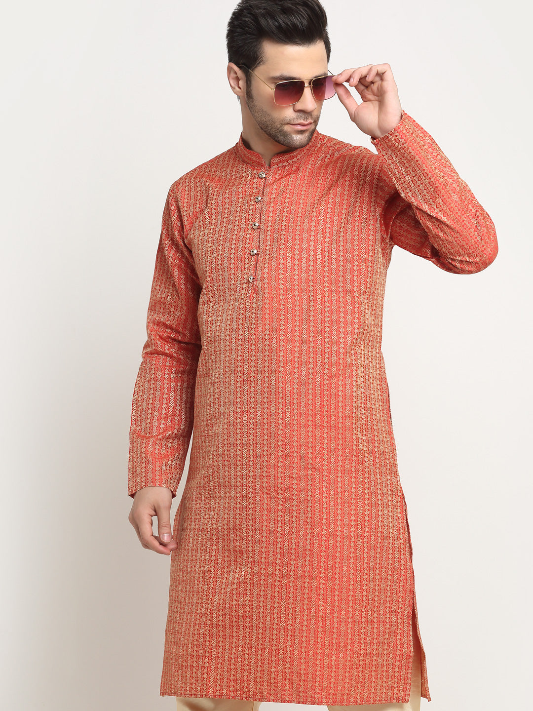 KRAFT INDIA Men's Silk Woven Design Jacquard Kurta & Beige Churidar Set