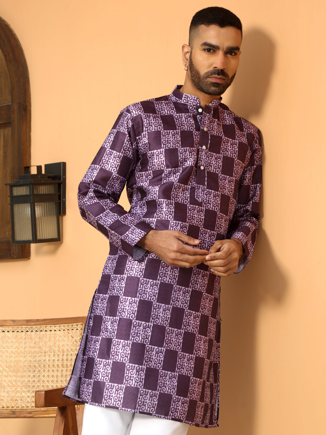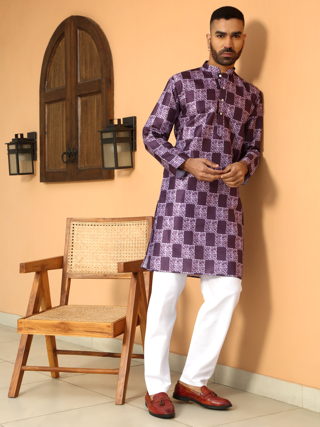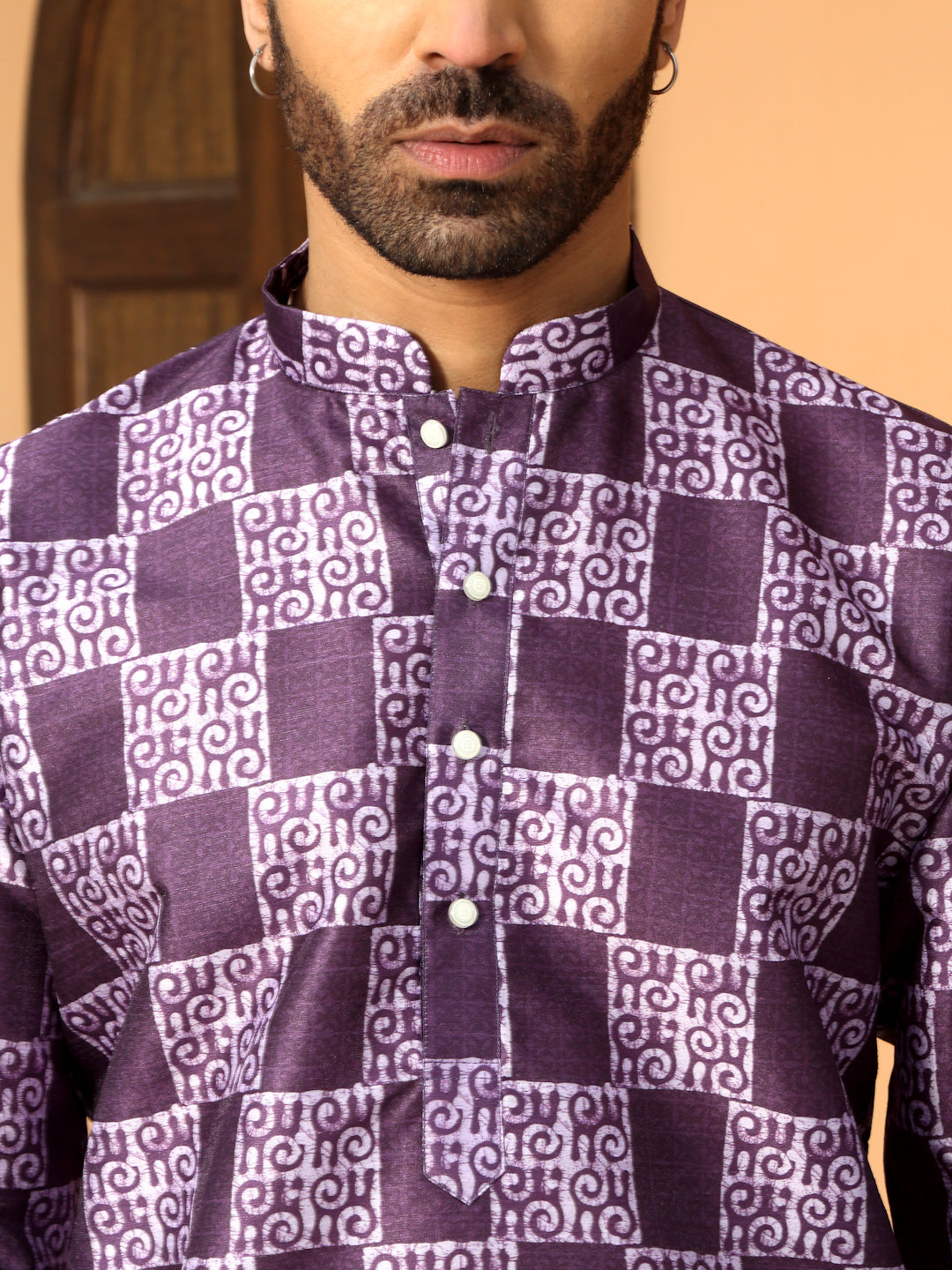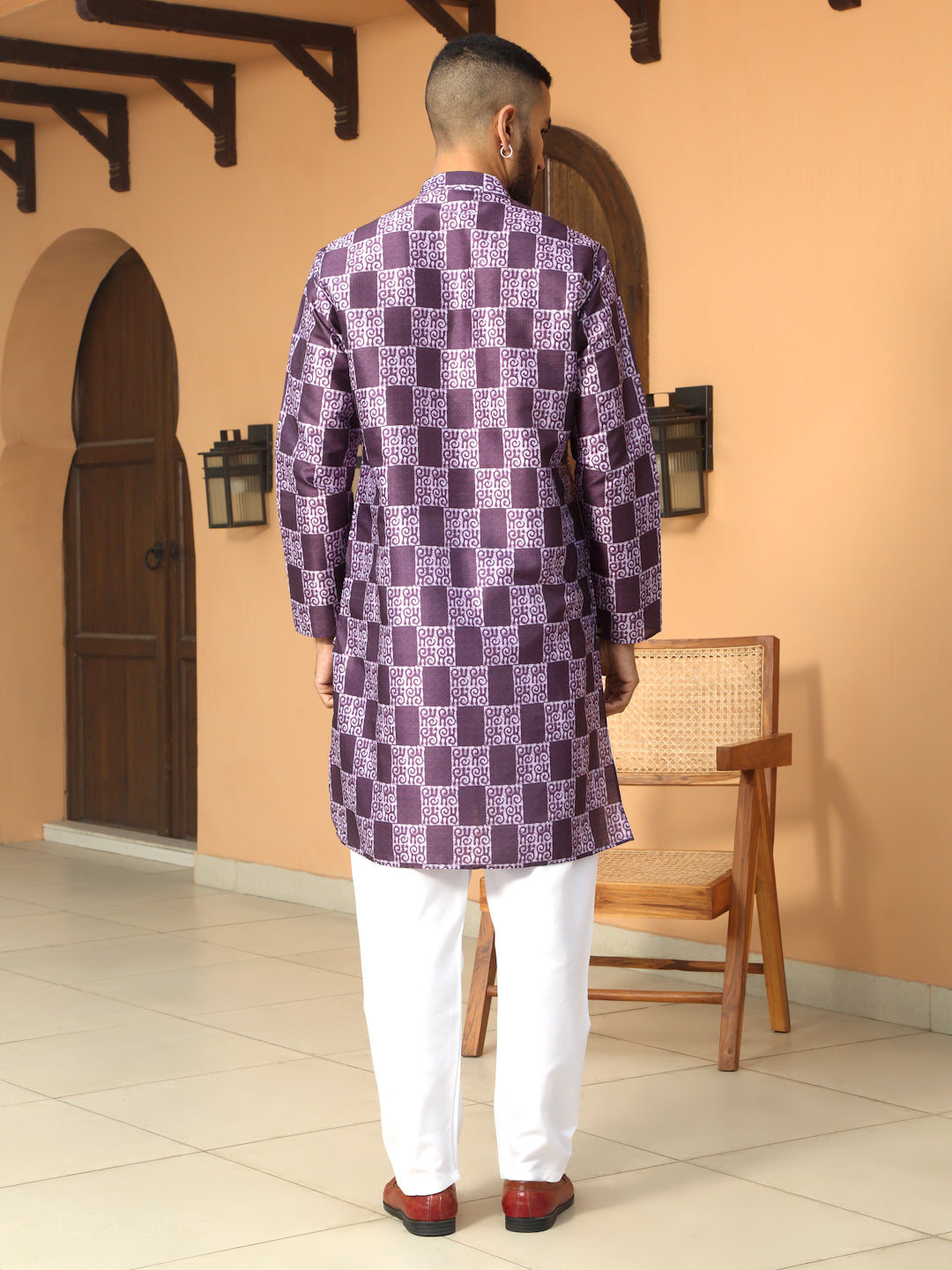 Silk Blend Batik Printed Kurta with white Elastic waistband Pyjama set