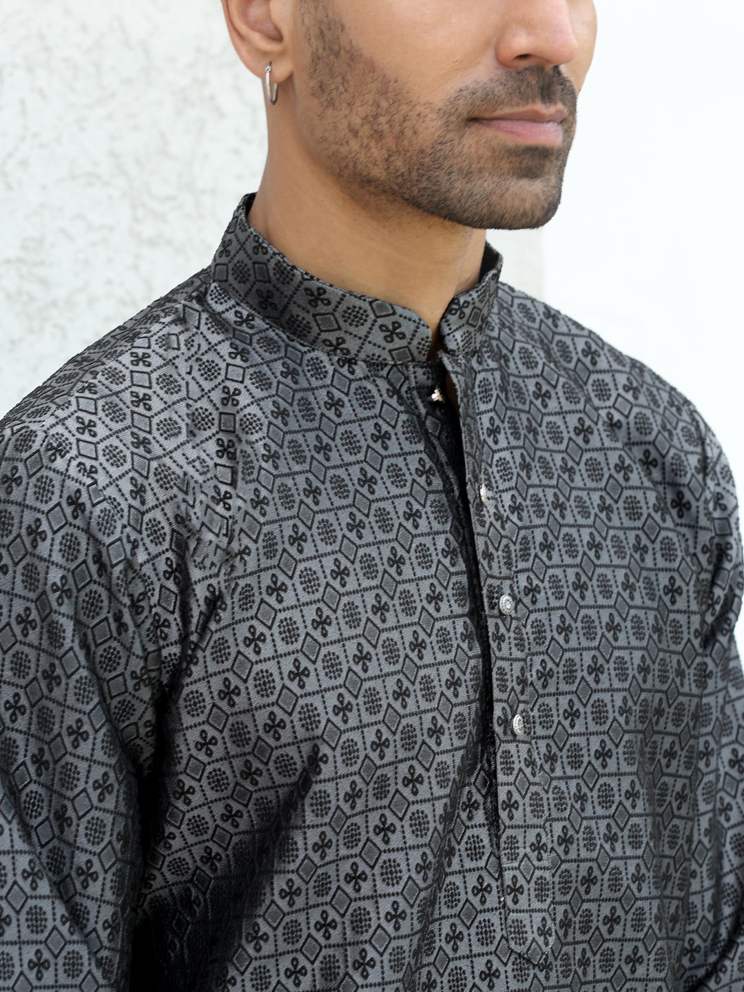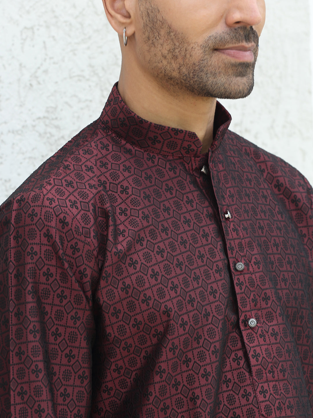 Silk Jacquard Self Design Kurta with elastic Waistband Pyjama set