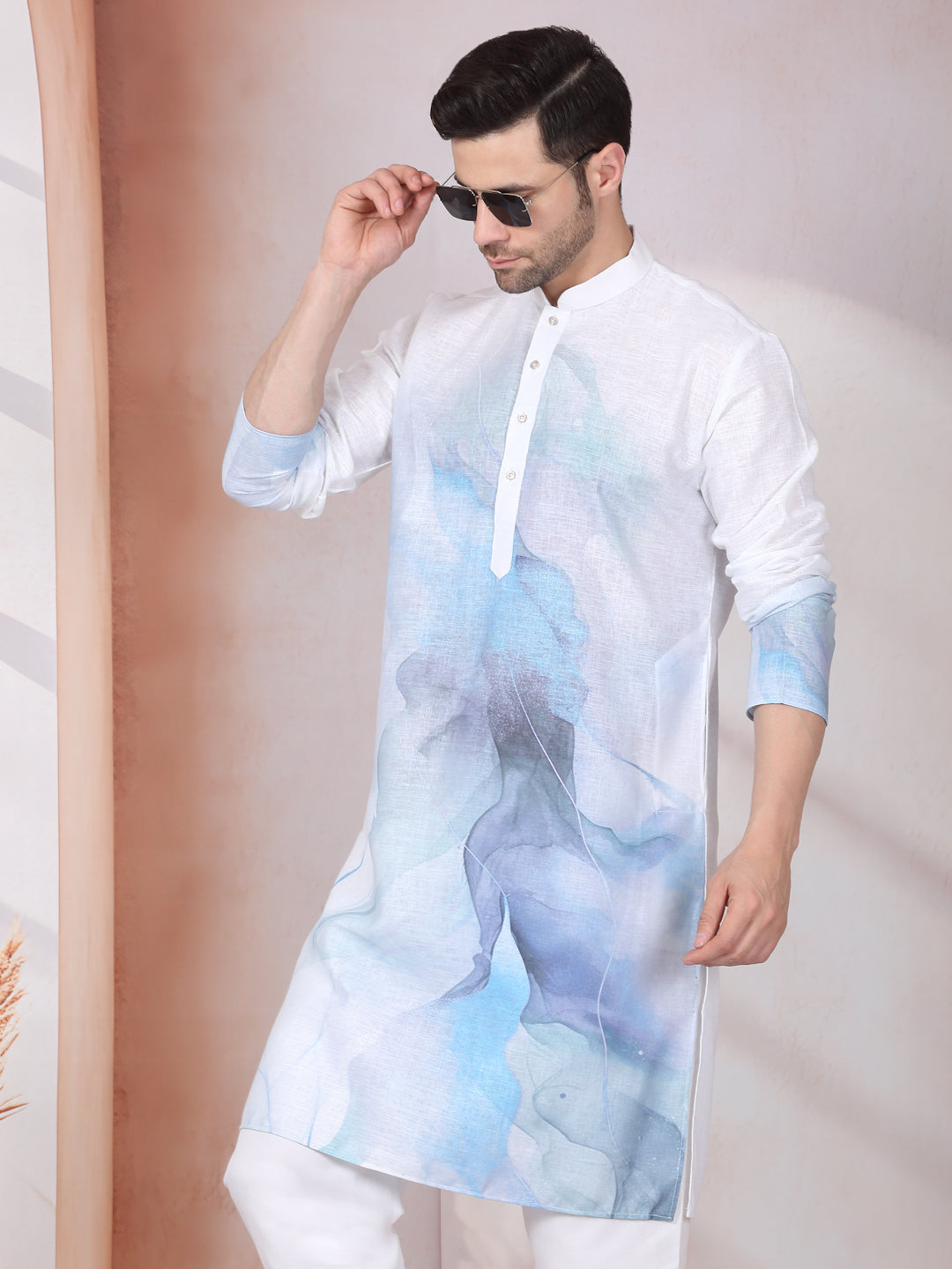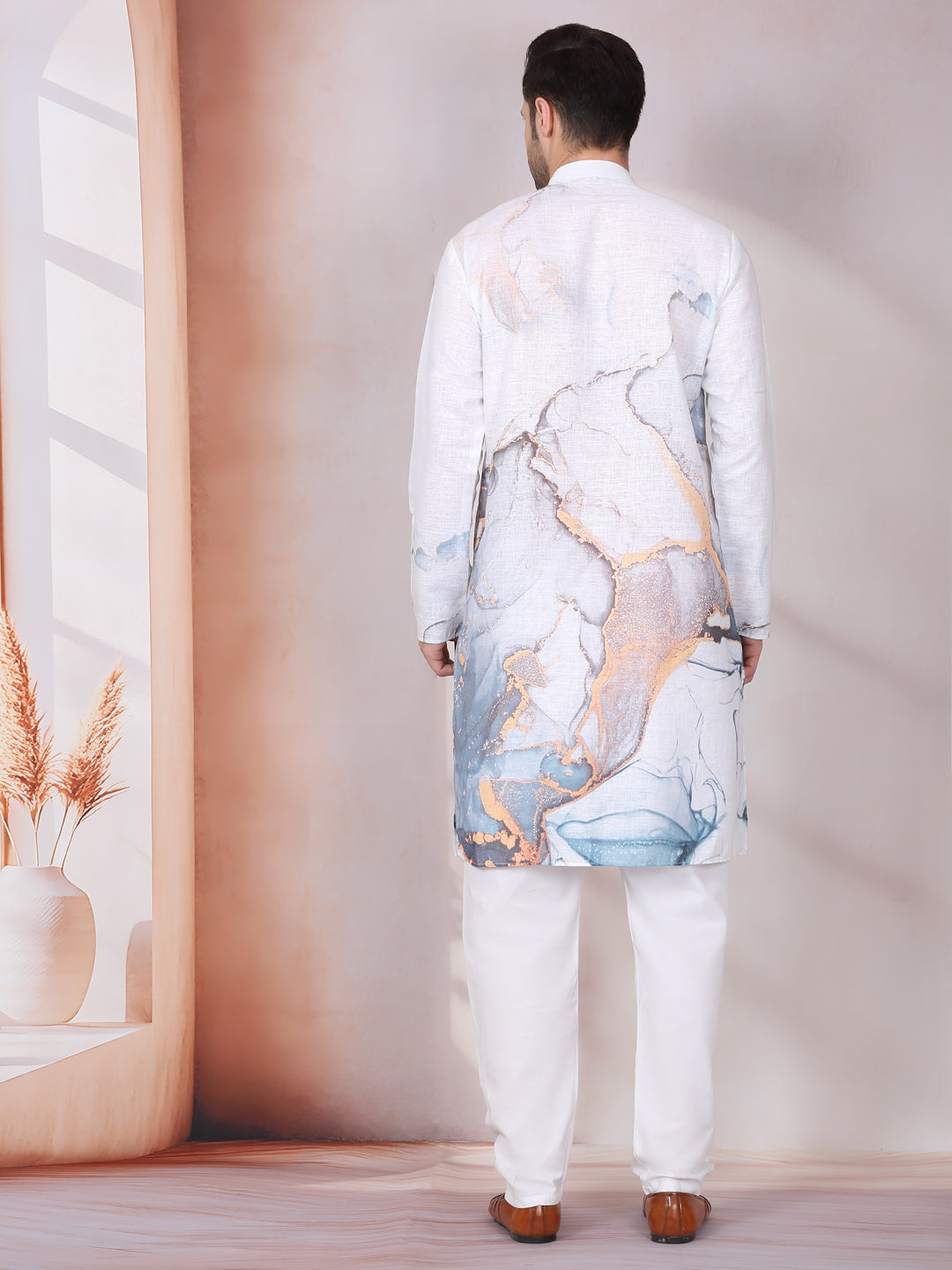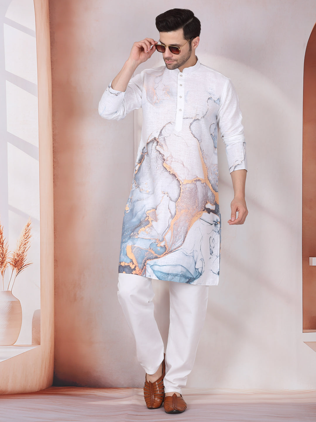 Make a statement with this Men's Cotton Marble Printed Long Kurta, a perfect blend of tradition and contemporary style. Crafted from premium cotton, this kurta ensures breathability and all-day comfort. The unique marble print adds a modern artistic touch, making it an ideal choice for festive occasions, casual gatherings, or cultural events.