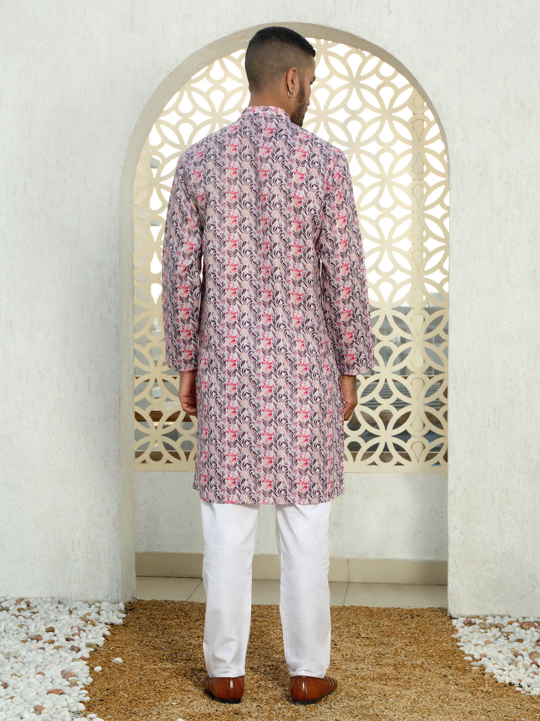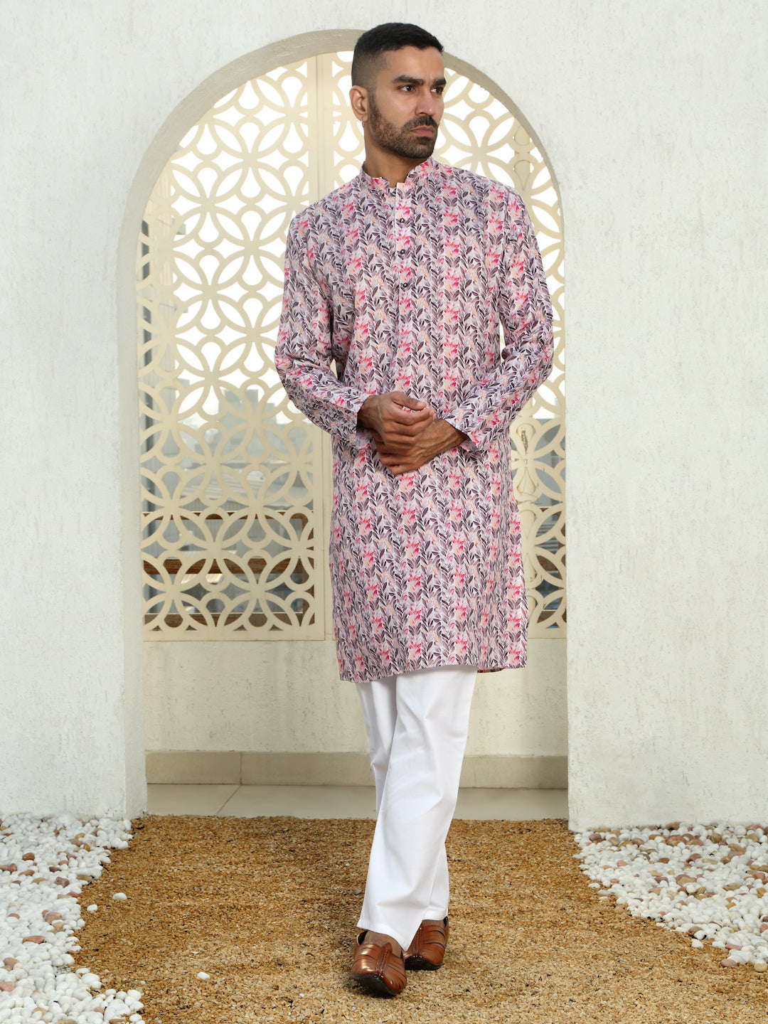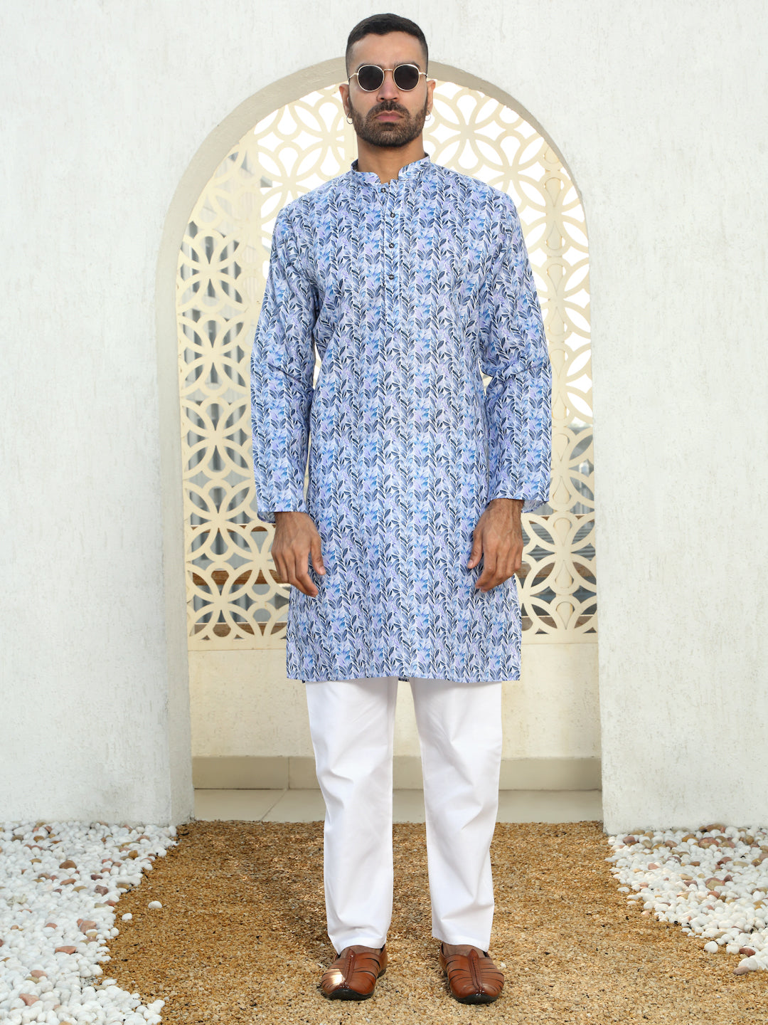 Embrace effortless style with the Men’s Cotton Leaf Printed Mandarin Collar Kurta. Crafted from soft, breathable cotton, this kurta ensures all-day comfort while offering a refined, casual look. The vibrant leaf print adds a refreshing touch of nature-inspired elegance, making it perfect for both casual outings and festive occasions. Featuring a sleek mandarin collar and long sleeves, this kurta brings together a modern silhouette with traditional design elements. Whether paired with jeans or traditional trousers, this versatile piece is a must-have for the stylish, modern man who loves blending comfort with contemporary flair.