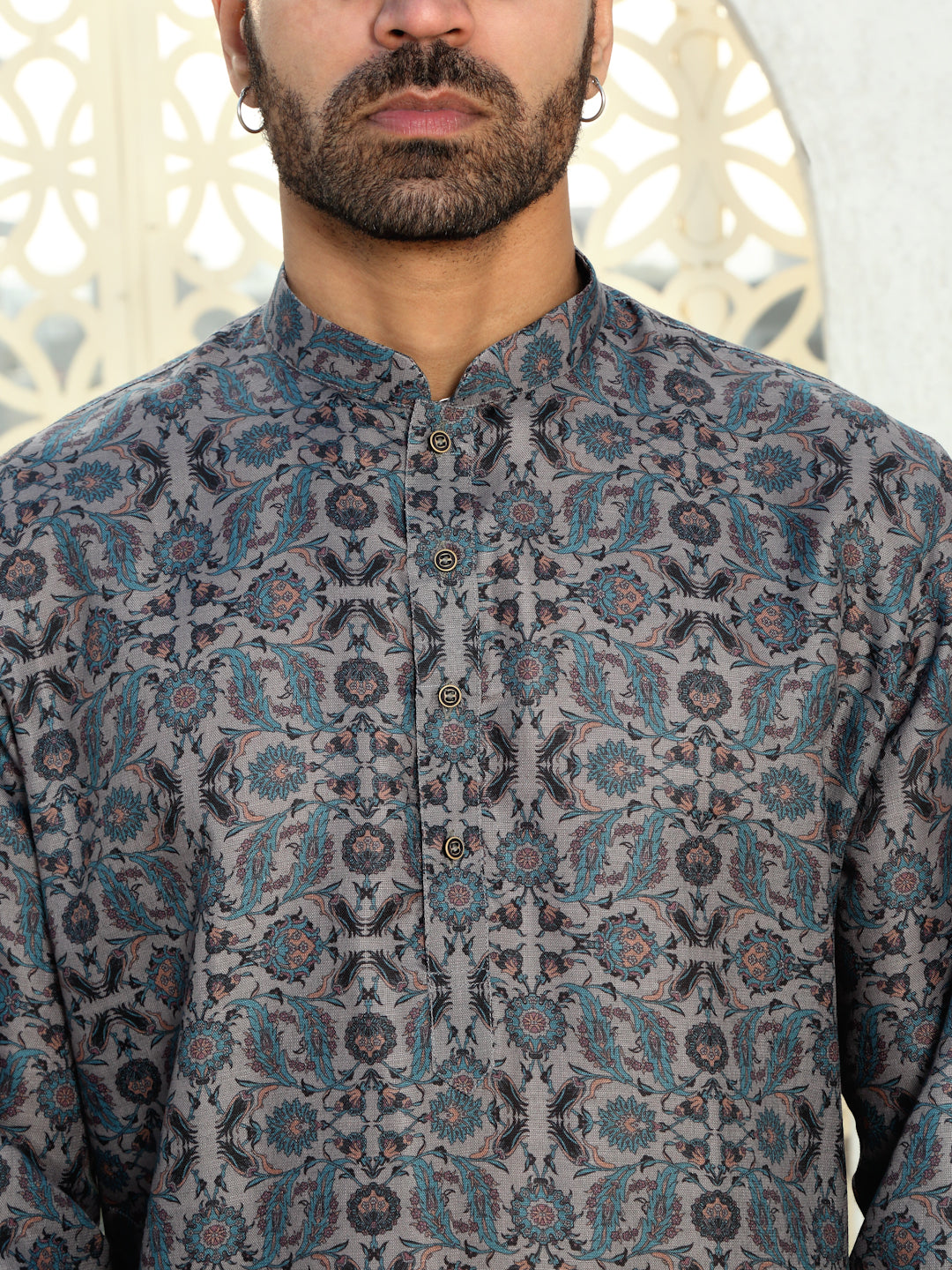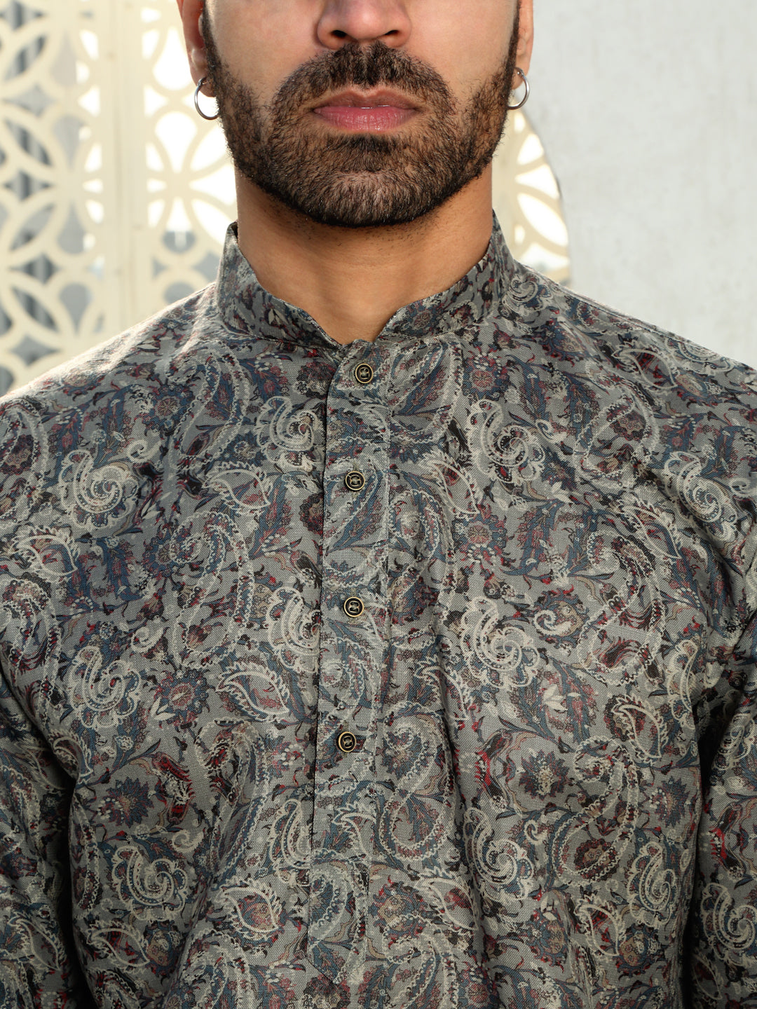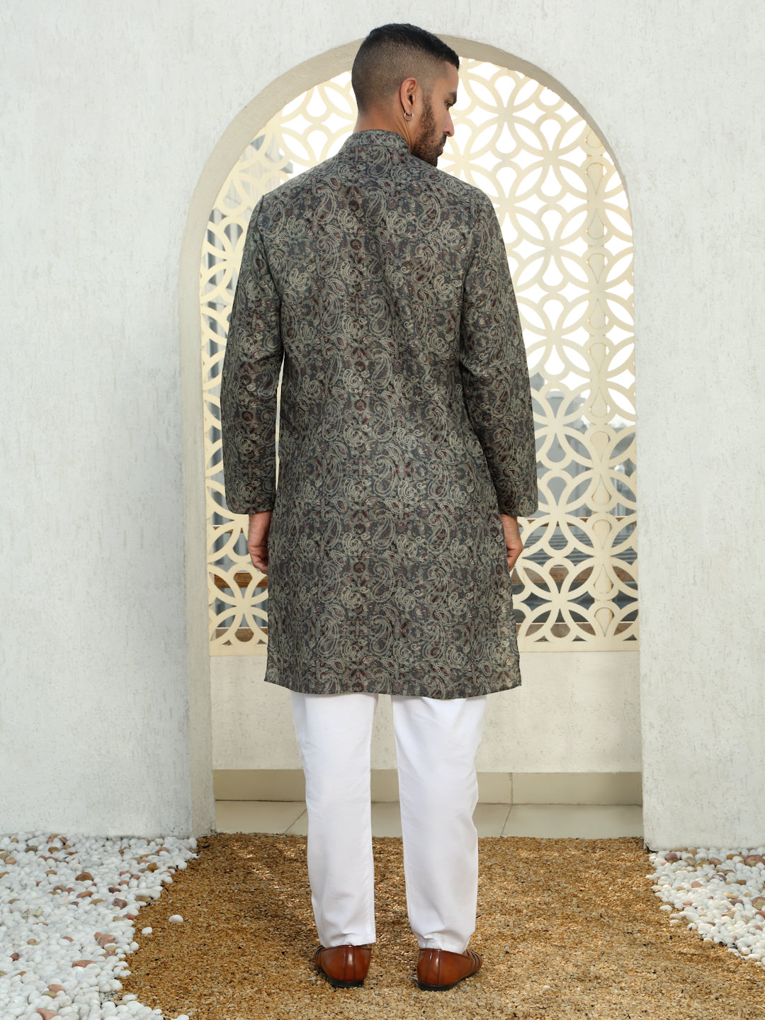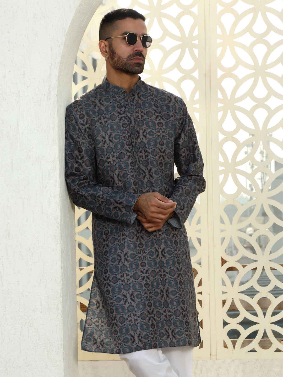 Refresh your wardrobe with the Men’s Cotton Floral Paisley Printed Kurta. Made from soft, breathable cotton, this kurta ensures comfort and style throughout the day. The beautiful floral print in calming blue tones adds a vibrant yet sophisticated touch, making it perfect for both casual and semi-formal occasions. With a relaxed fit and a classic design, this kurta combines tradition with a modern twist. Whether you're attending a family gathering, a casual outing, or a festive celebration, this kurta is the perfect choice for a stylish, effortless look.